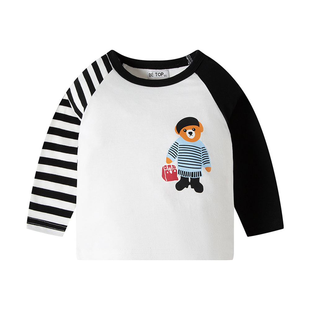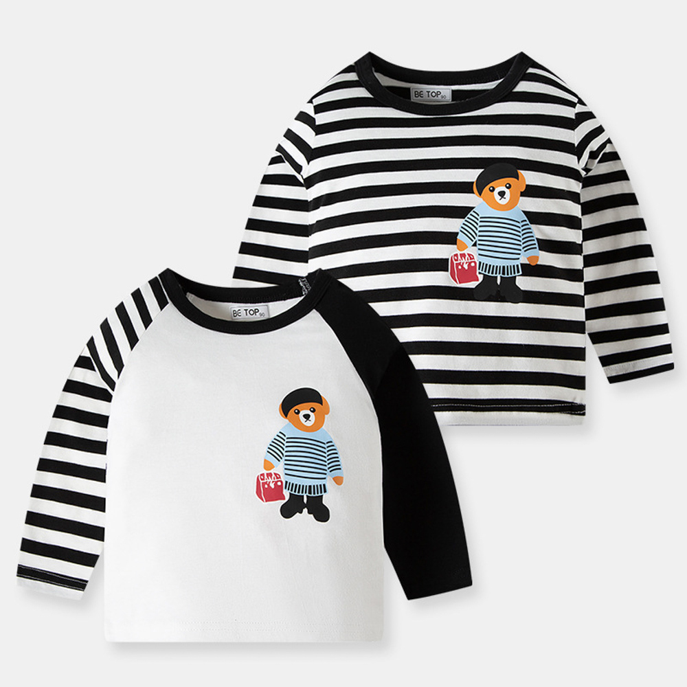 【BU044】韓版條紋提袋熊長袖上衣(2色)