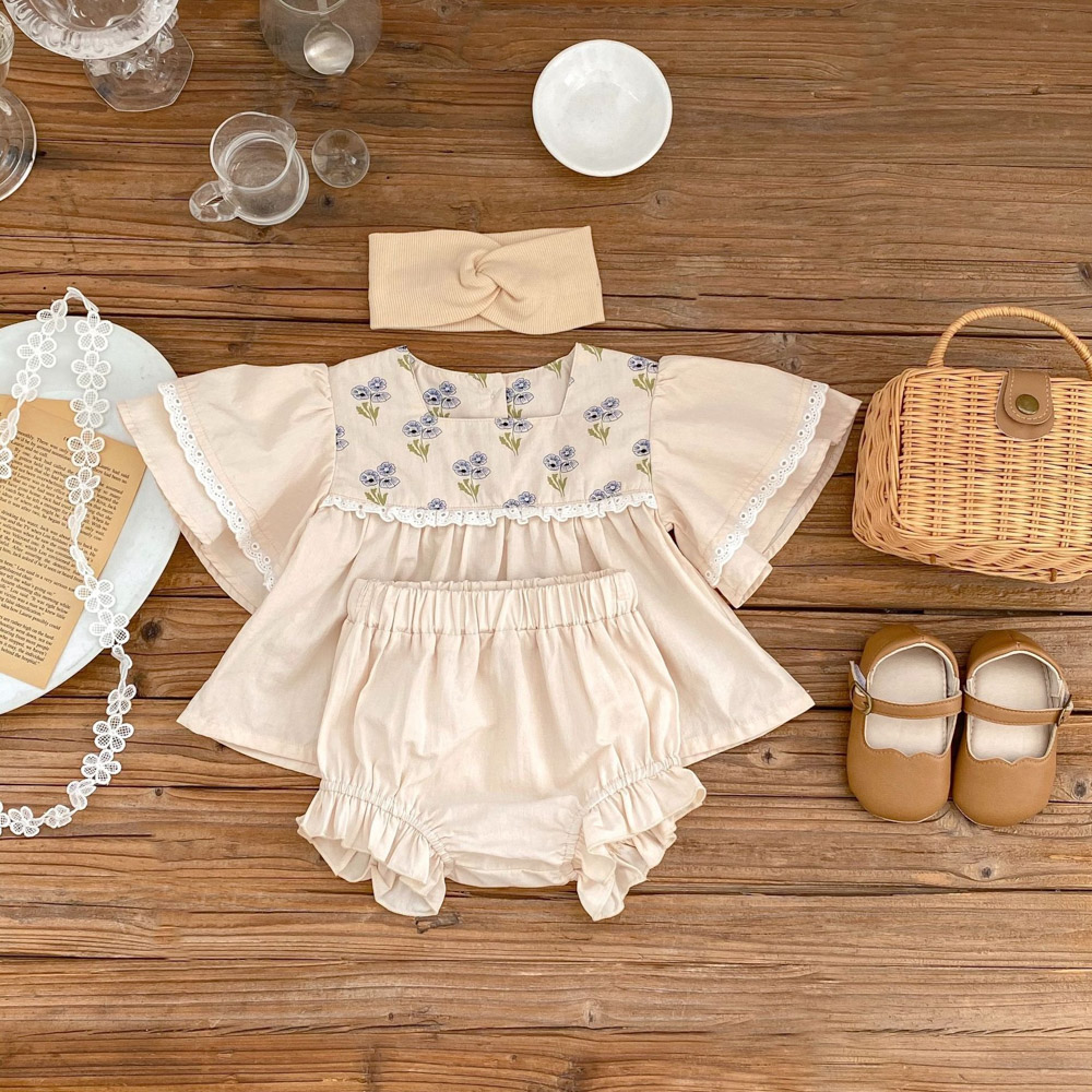 (缺貨)【BA626】日系小花大飛袖兩件式短袖短褲套裝(1色)