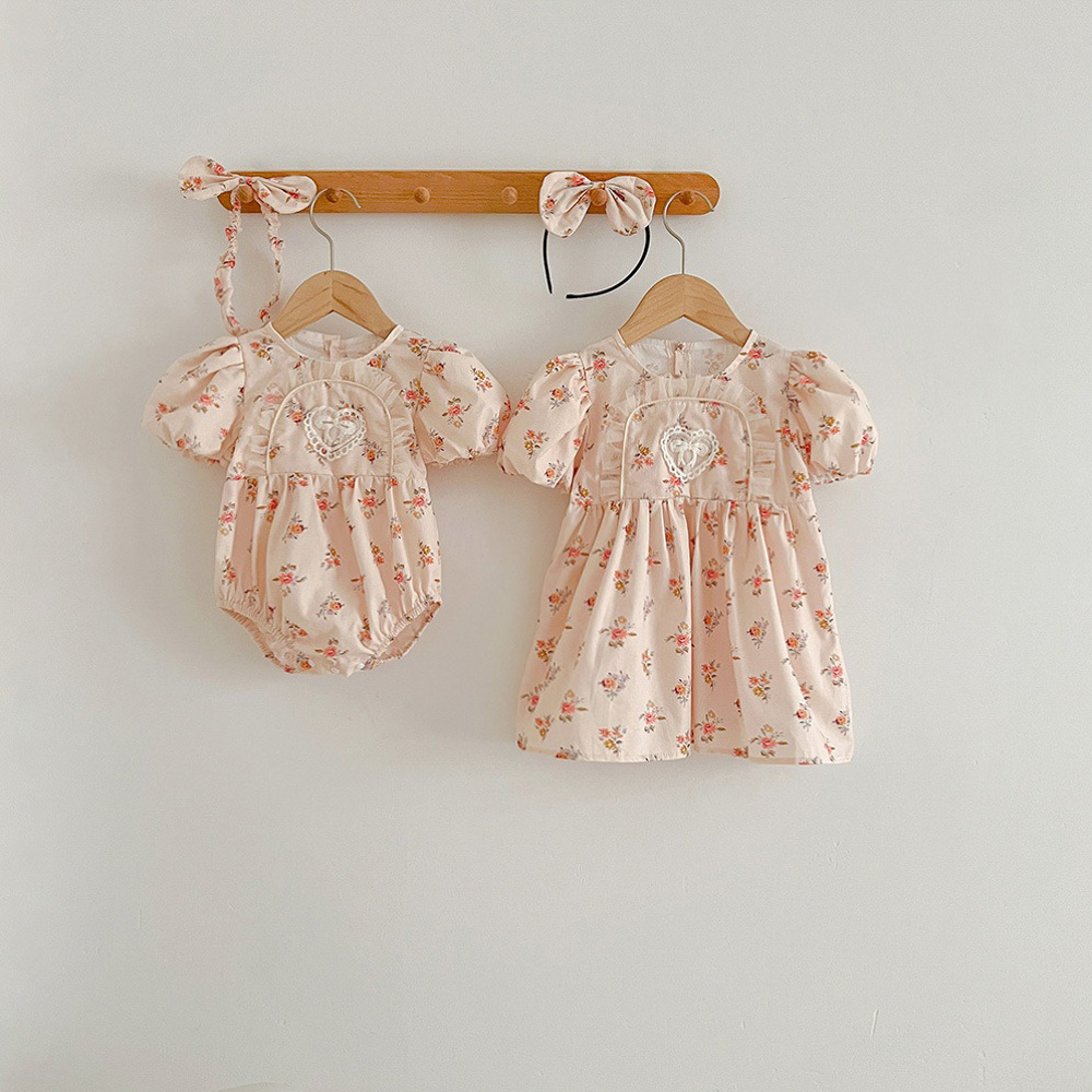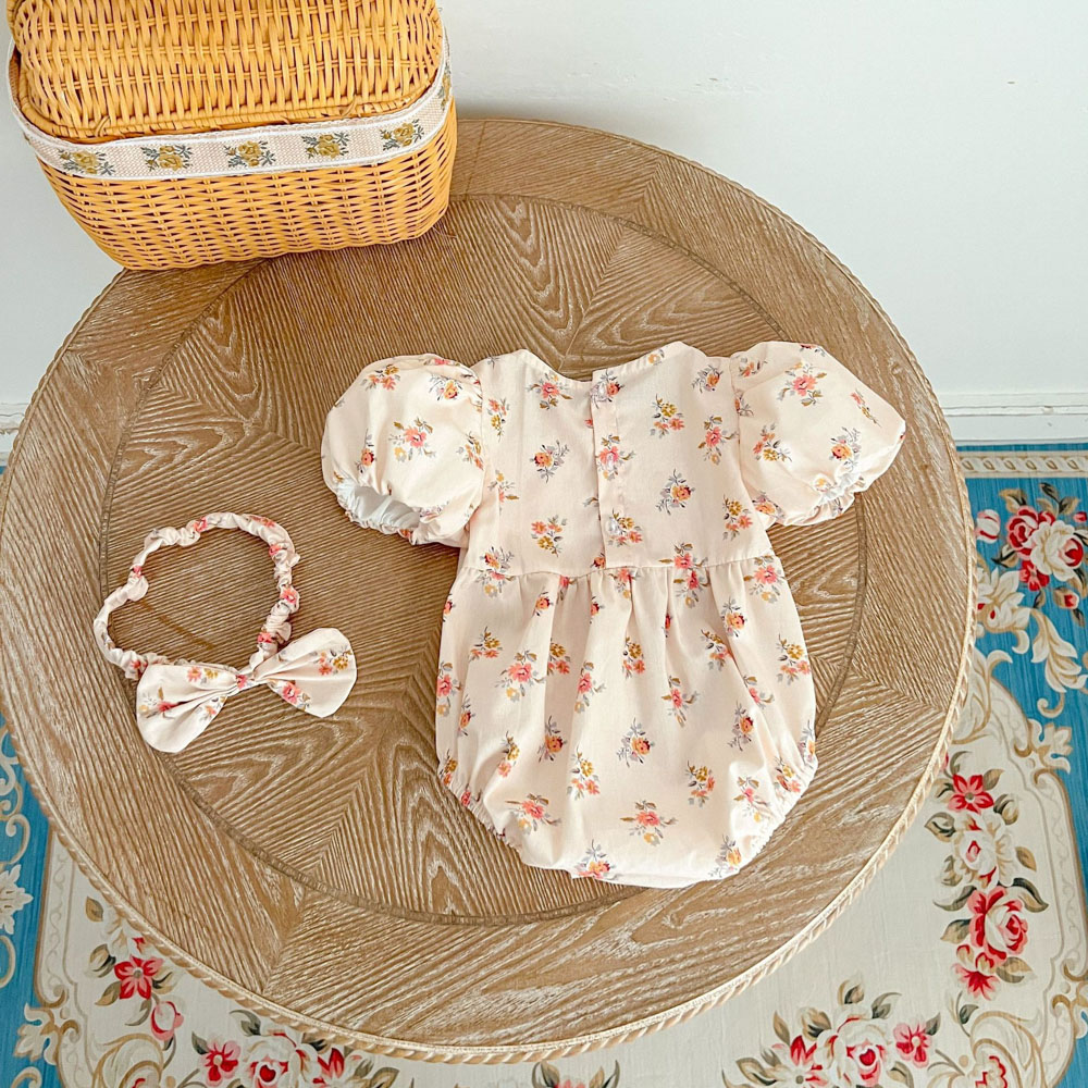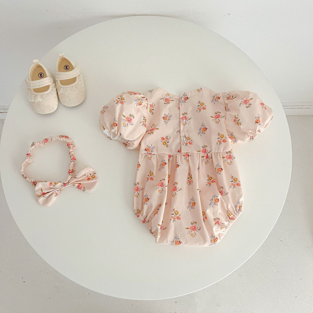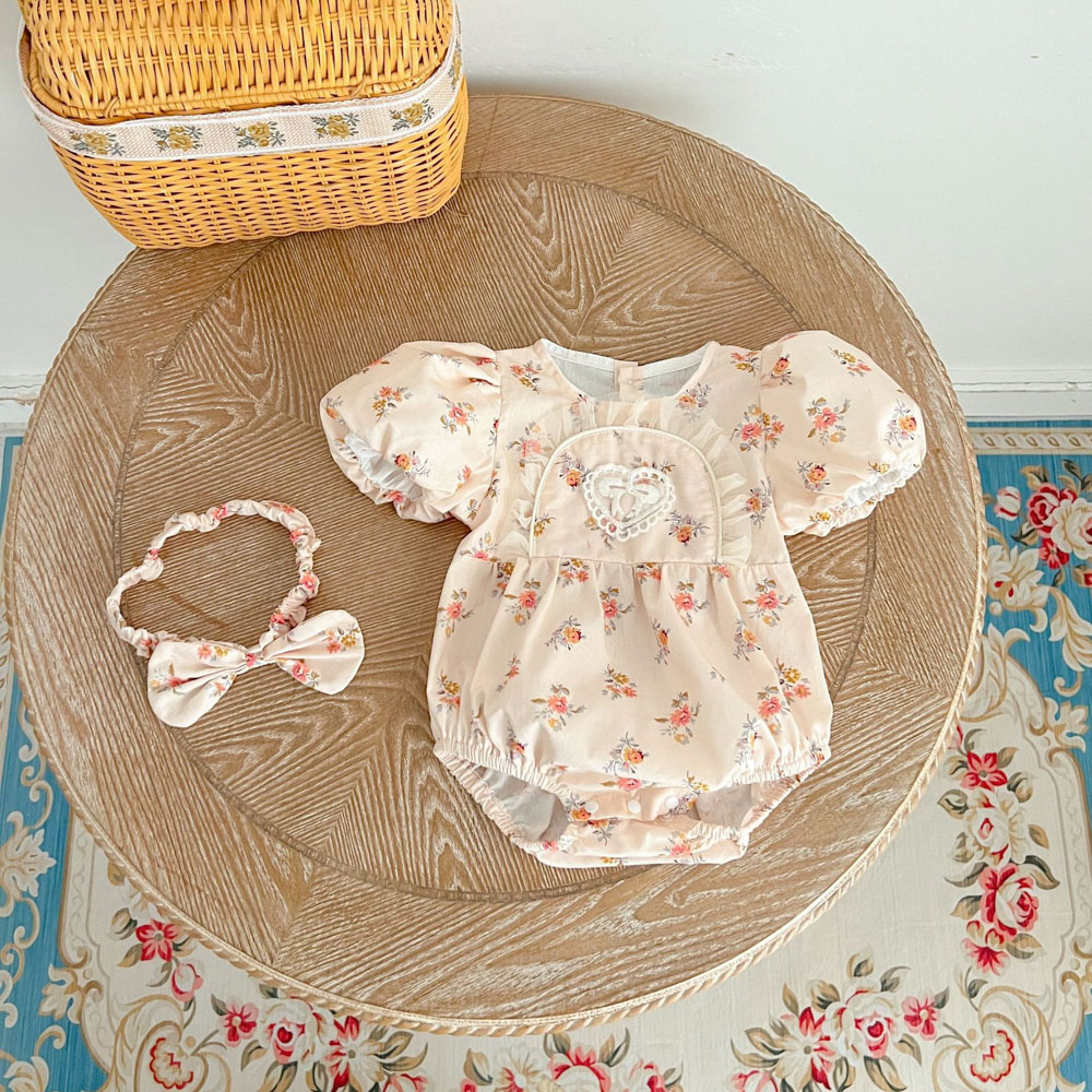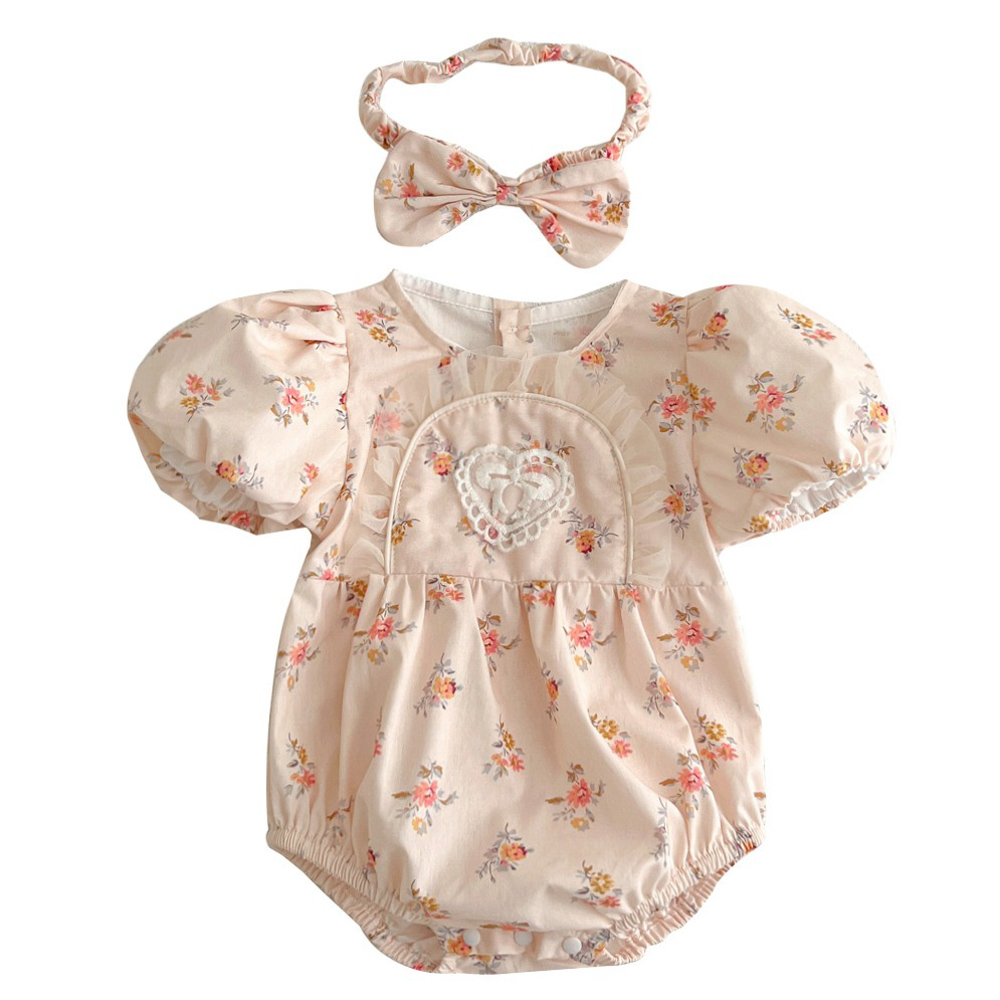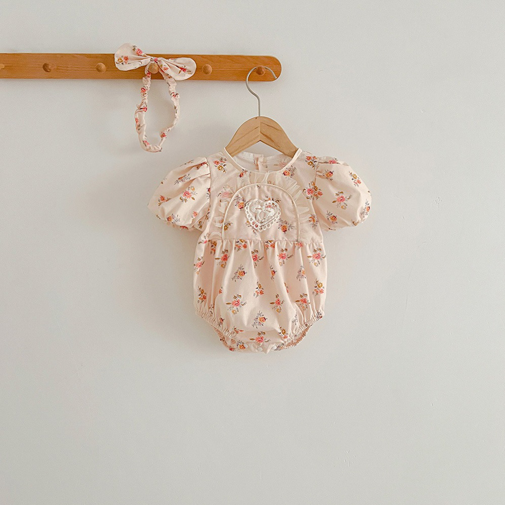 【BS097】韓版蕾絲蝴蝶結玫瑰短袖包屁衣小洋裝(送髮箍)(1色)