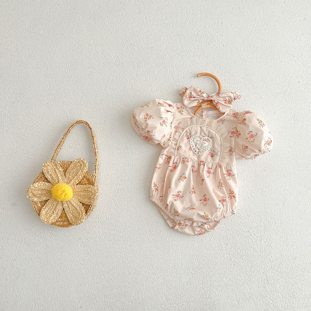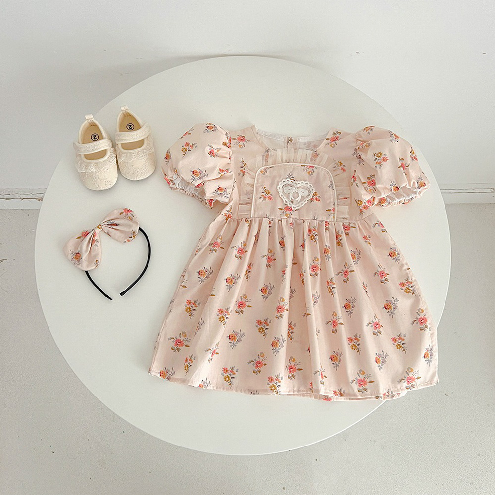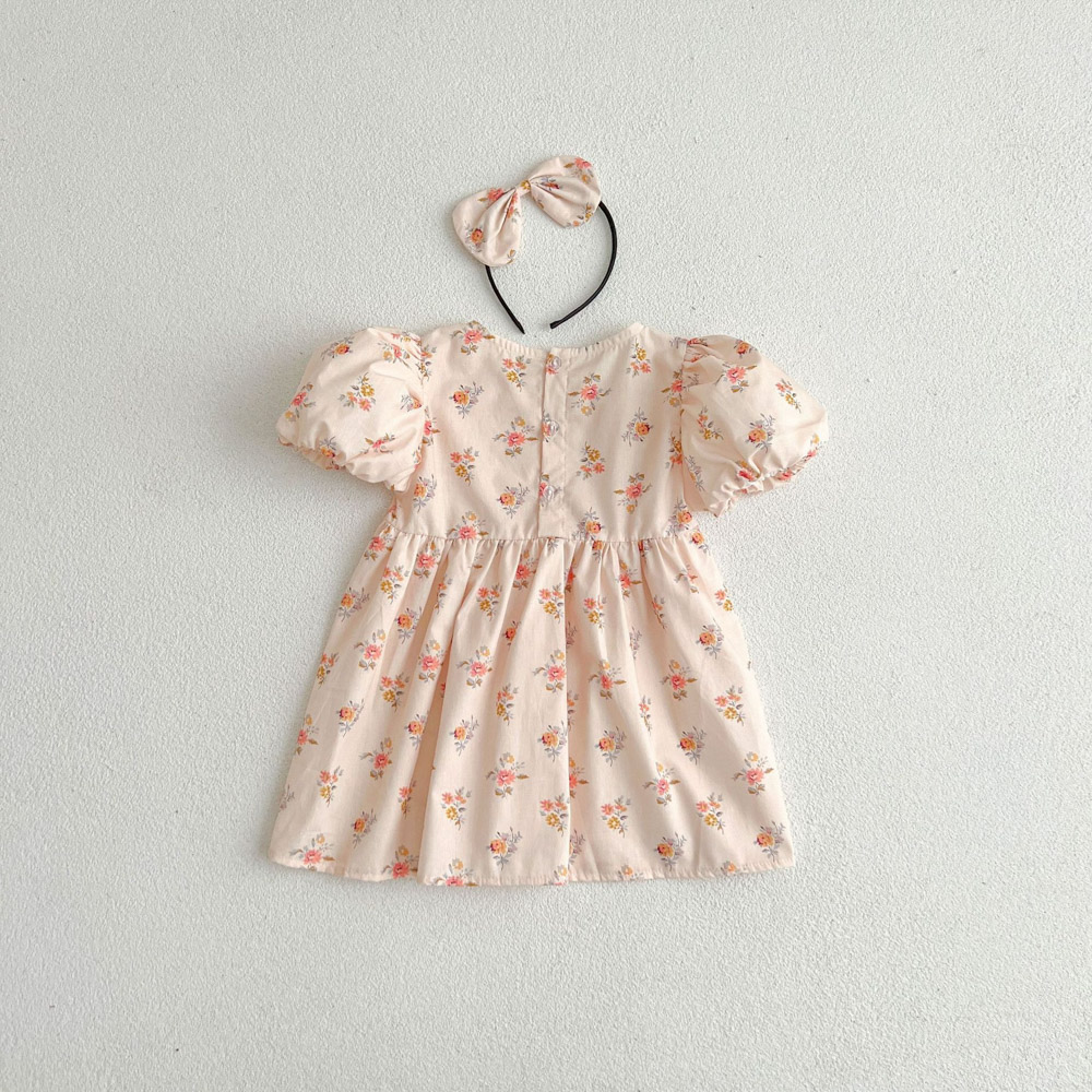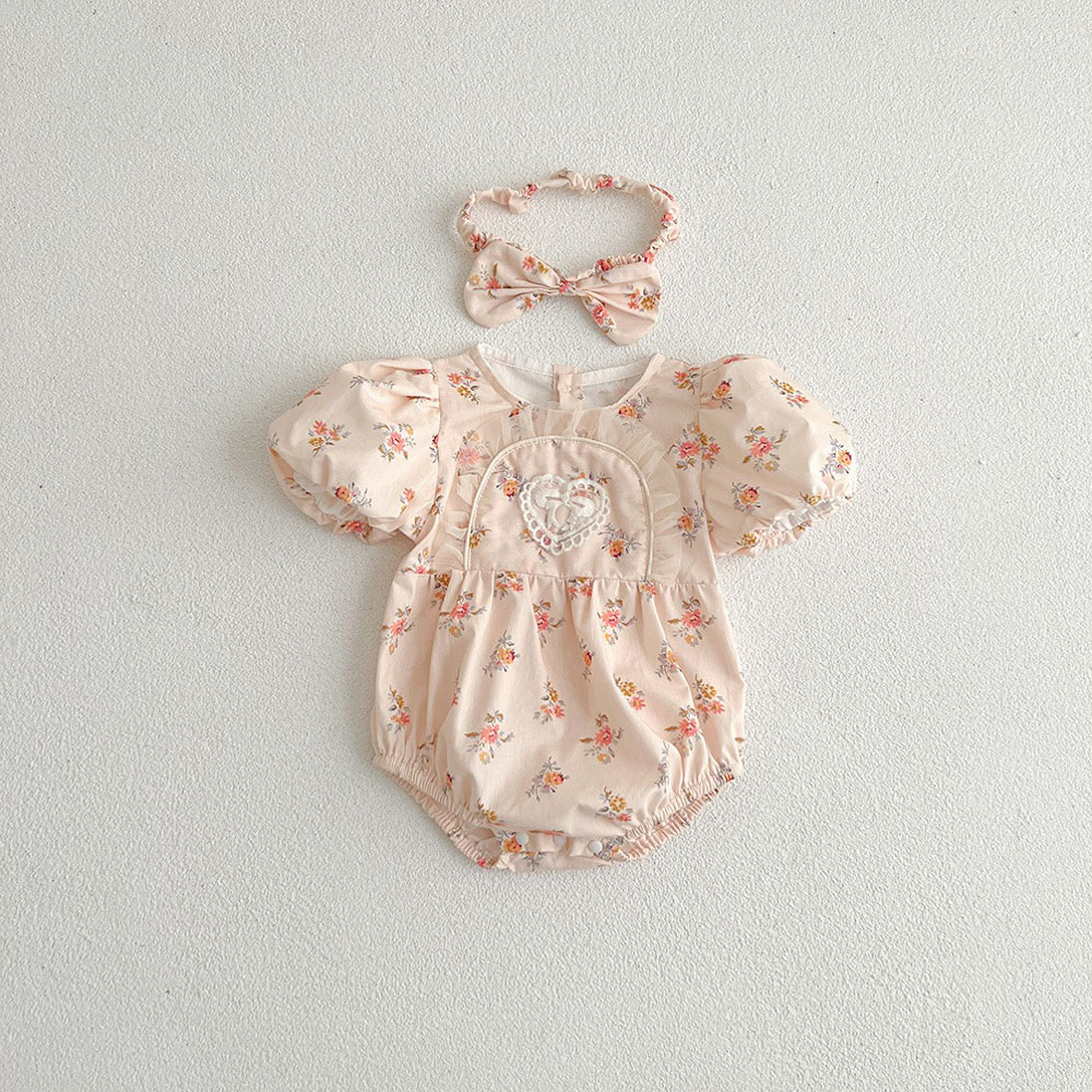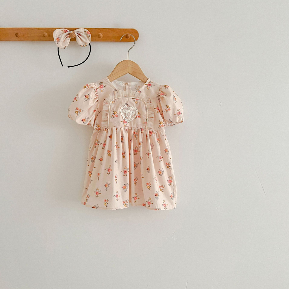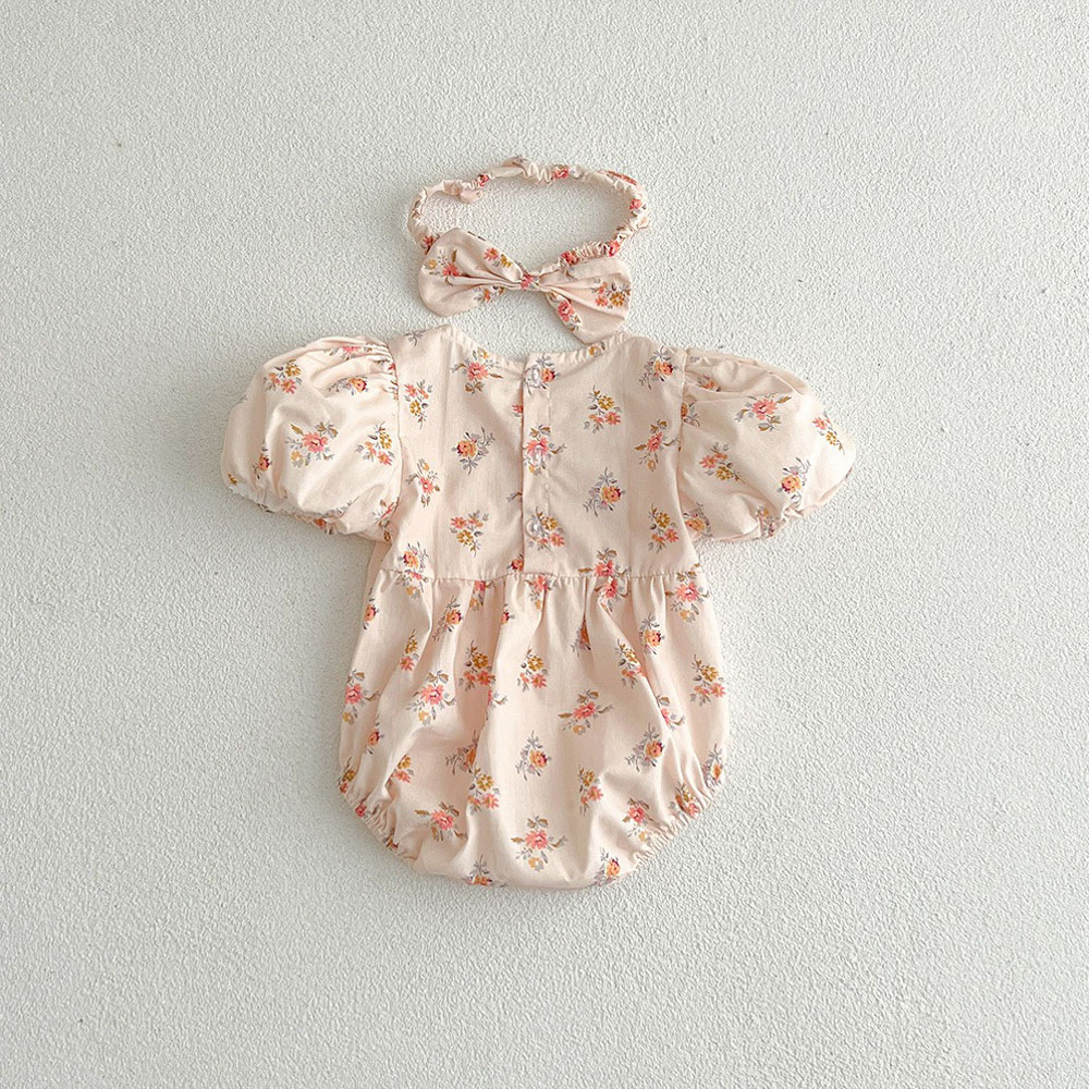 【BS097】韓版蕾絲蝴蝶結玫瑰短袖包屁衣小洋裝(送髮箍)(1色)