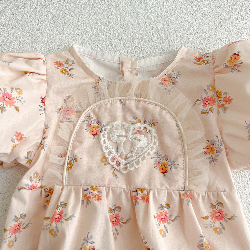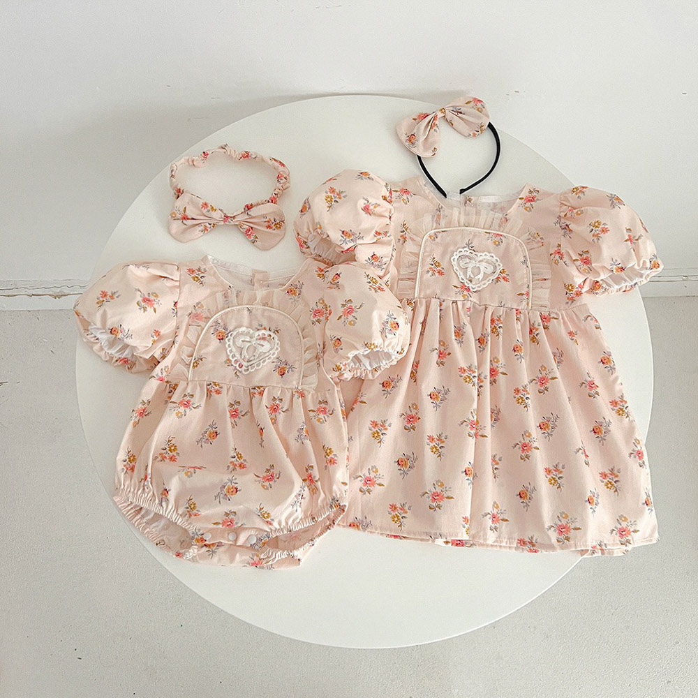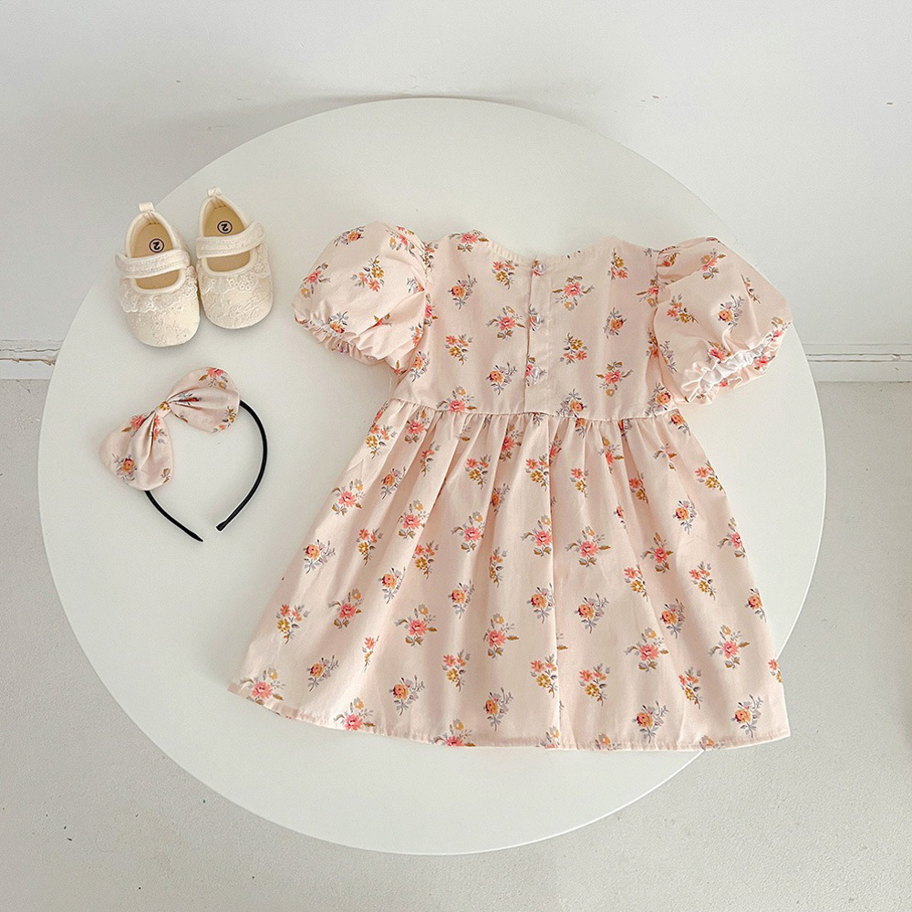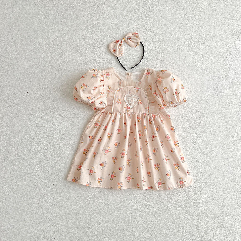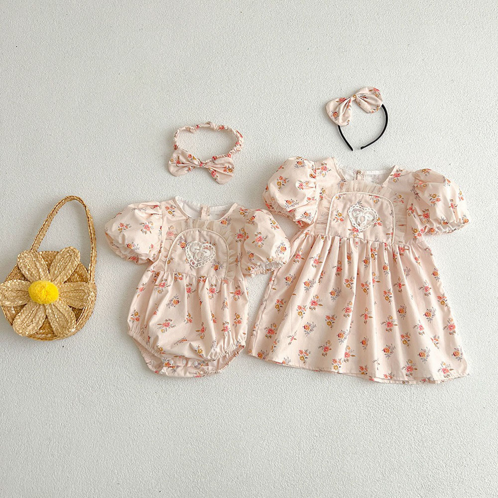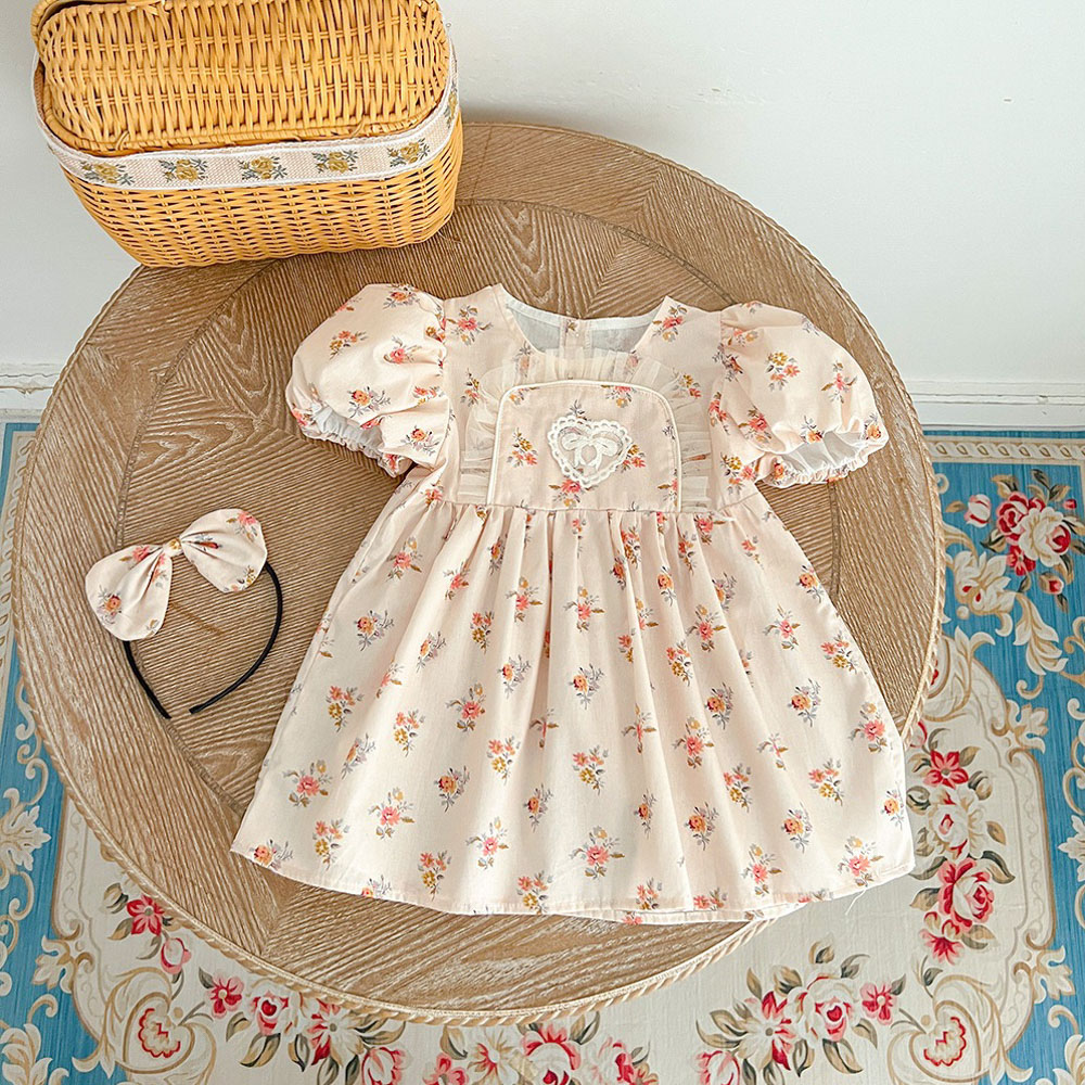 【BS097】韓版蕾絲蝴蝶結玫瑰短袖包屁衣小洋裝(送髮箍)(1色)