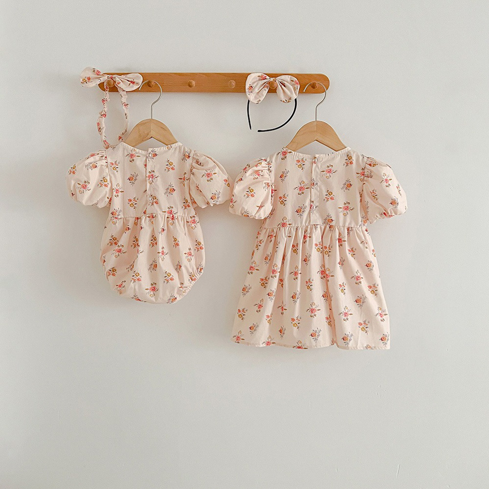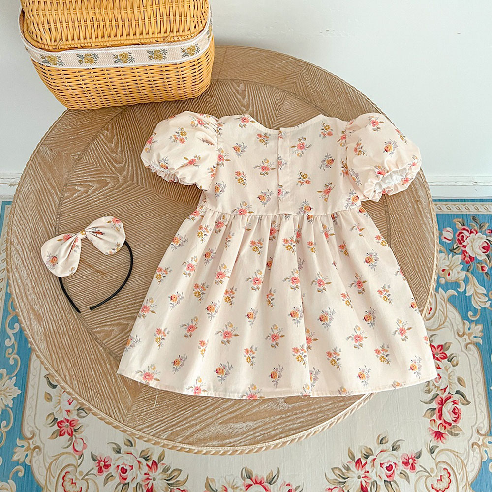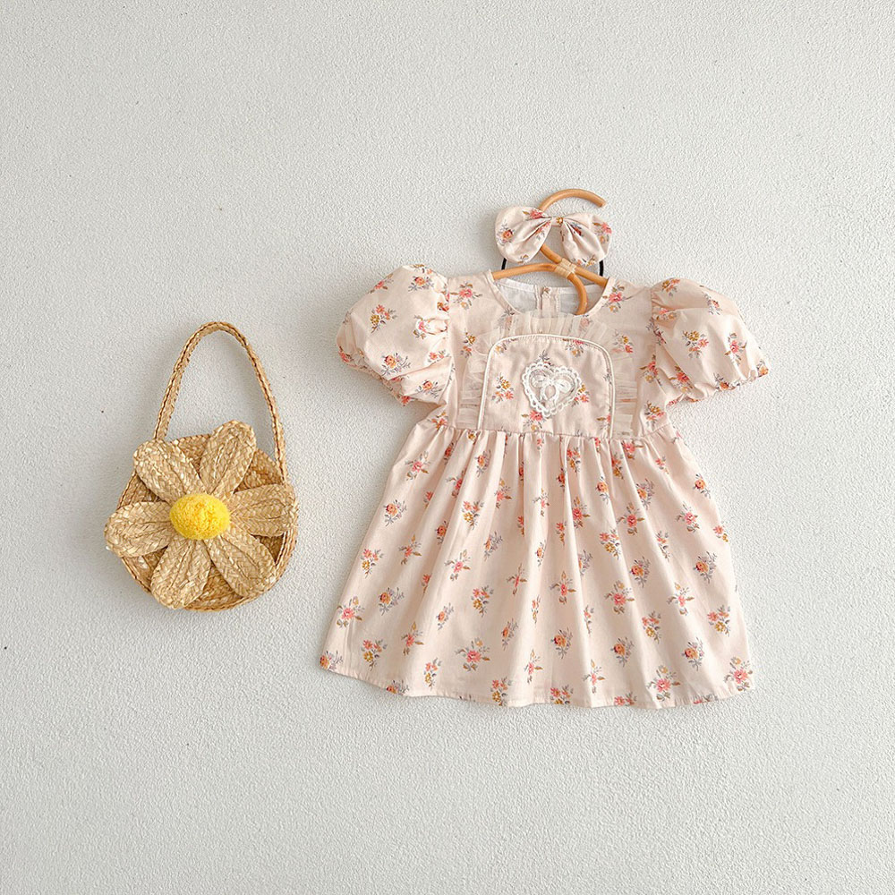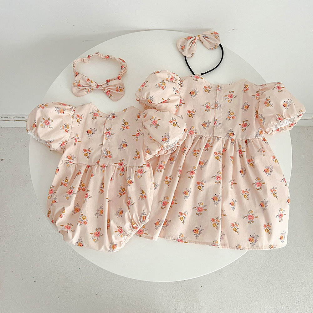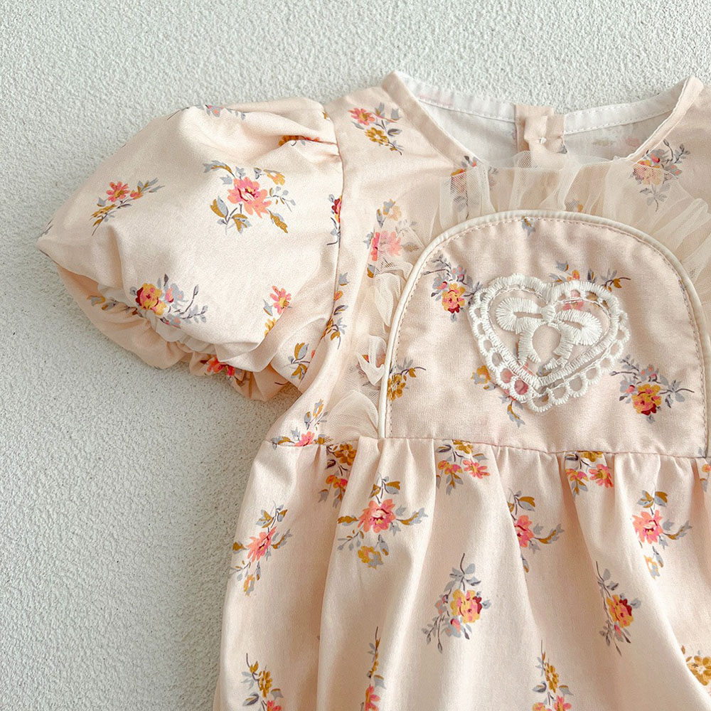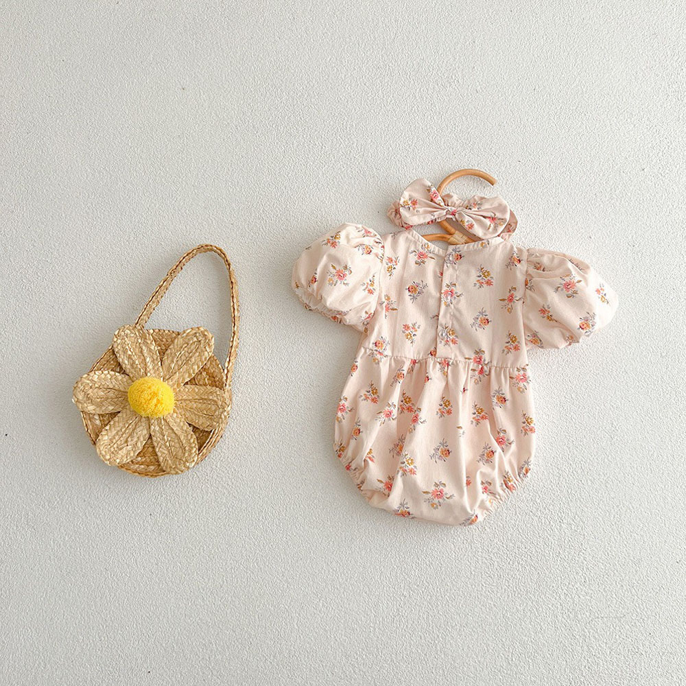 【BS097】韓版蕾絲蝴蝶結玫瑰短袖包屁衣小洋裝(送髮箍)(1色)