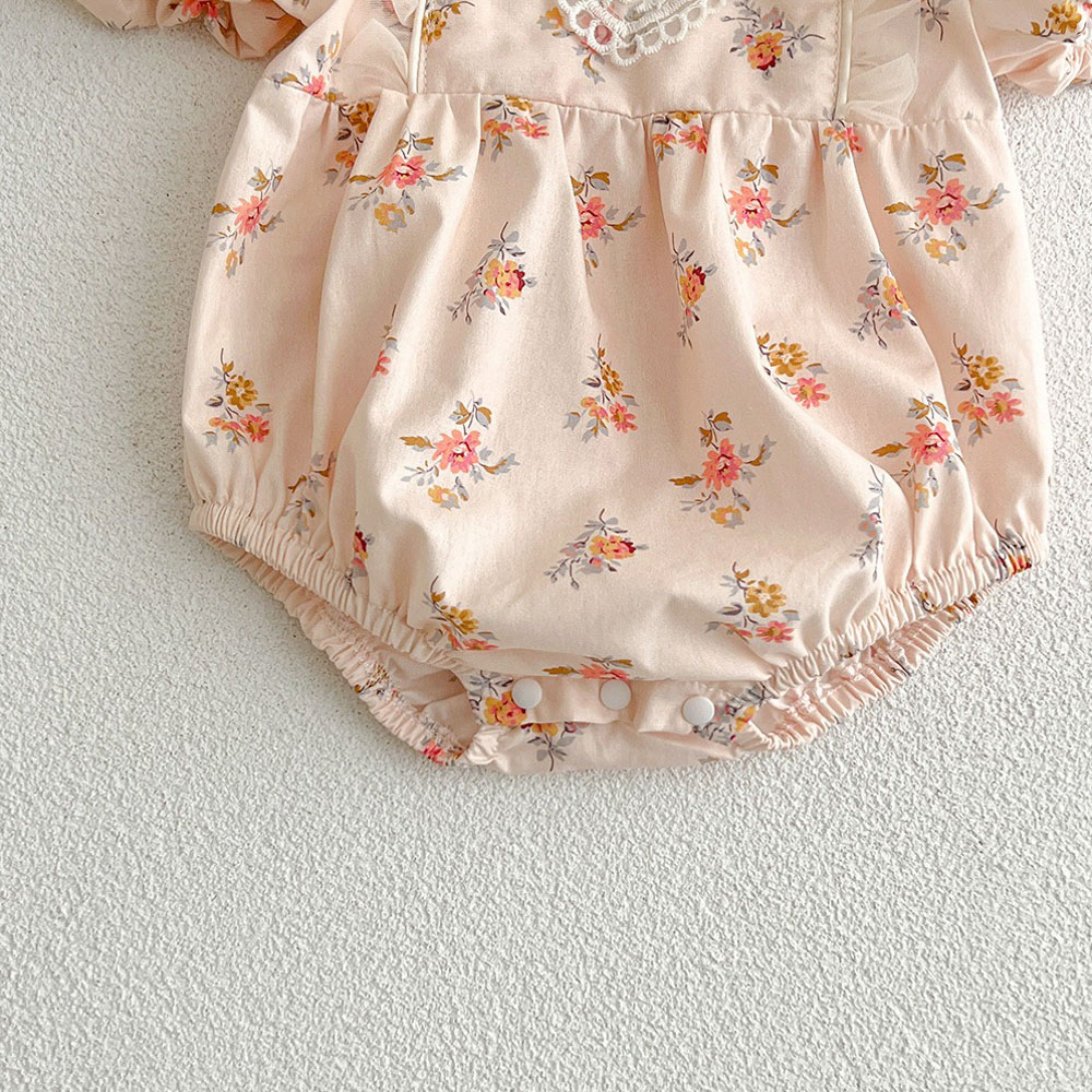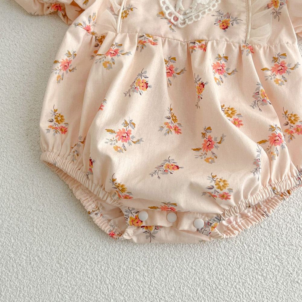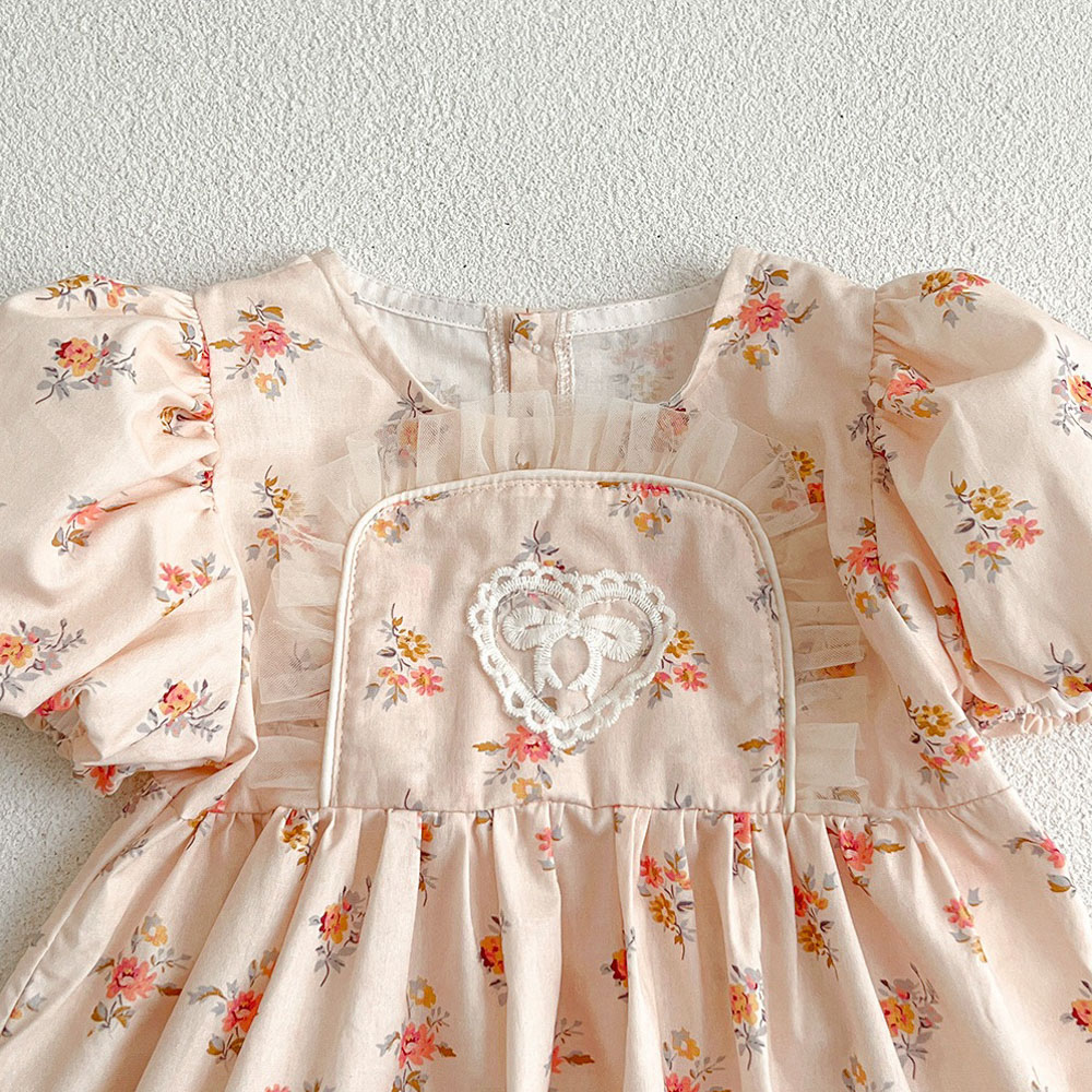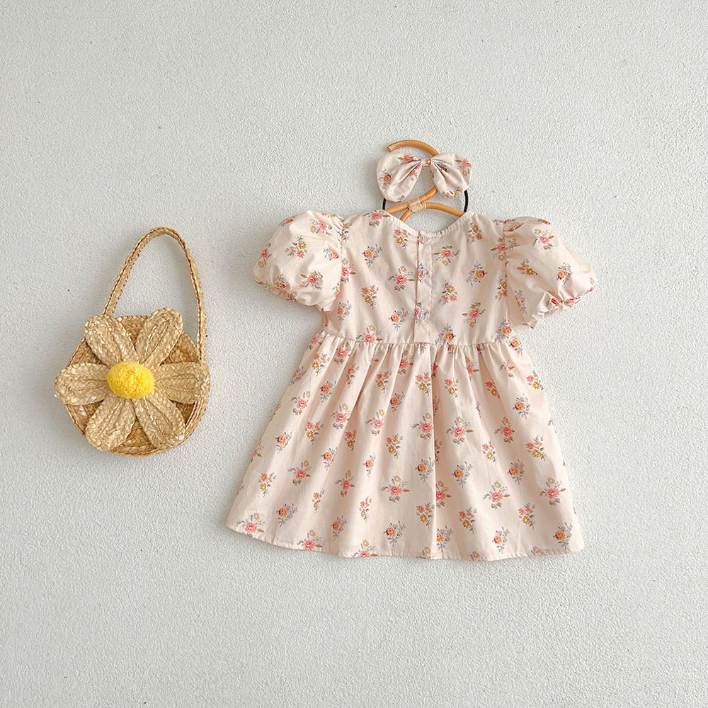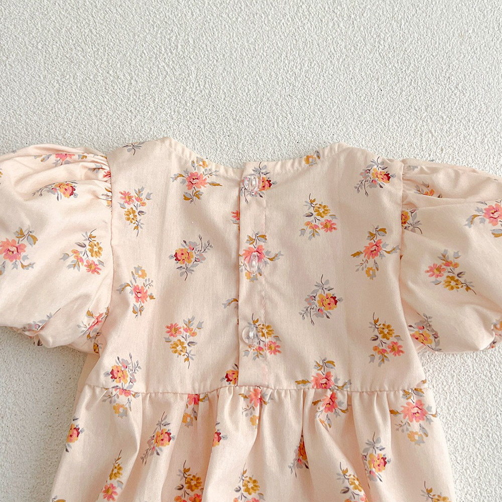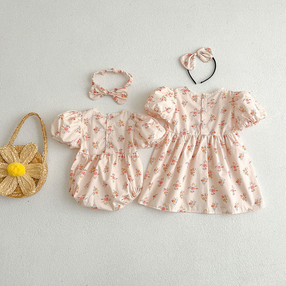 【BS097】韓版蕾絲蝴蝶結玫瑰短袖包屁衣小洋裝(送髮箍)(1色)