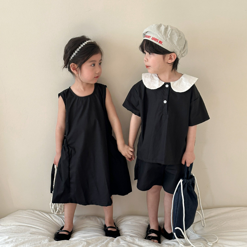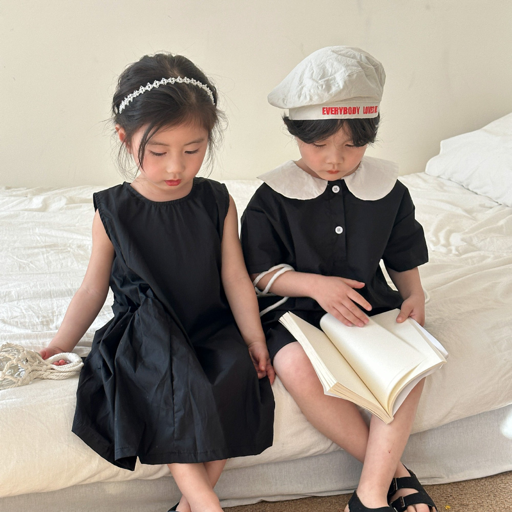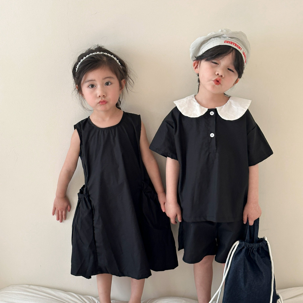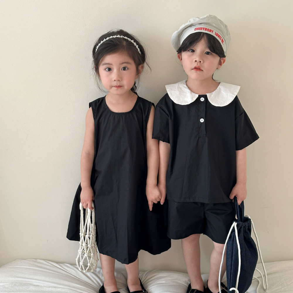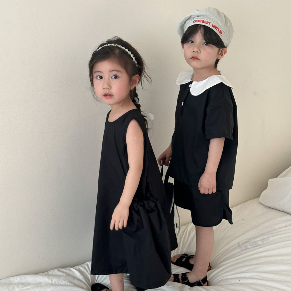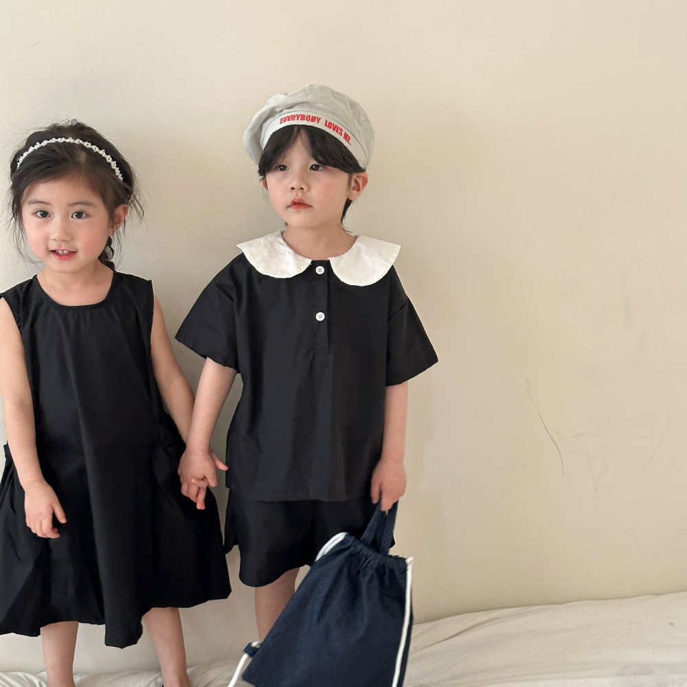 【BS113】韓版黑白圓領兄妹短袖洋裝套裝(1色)