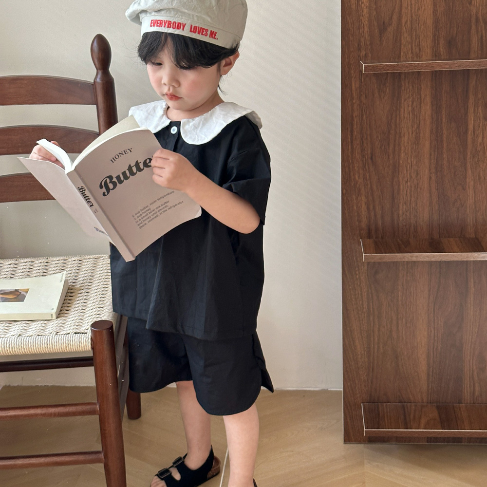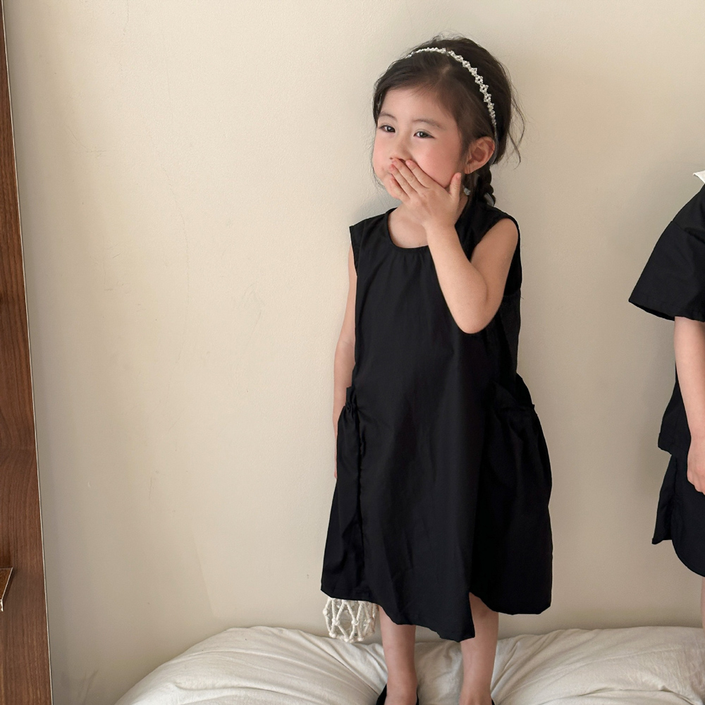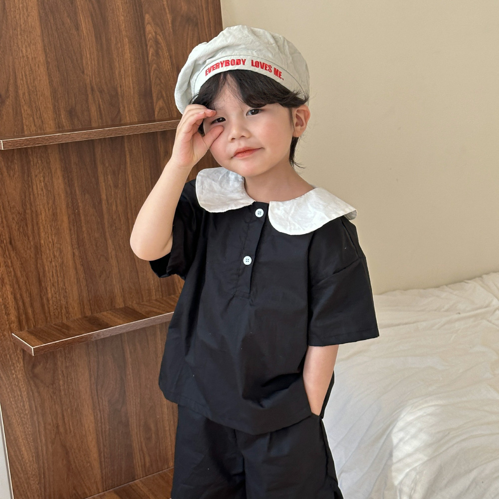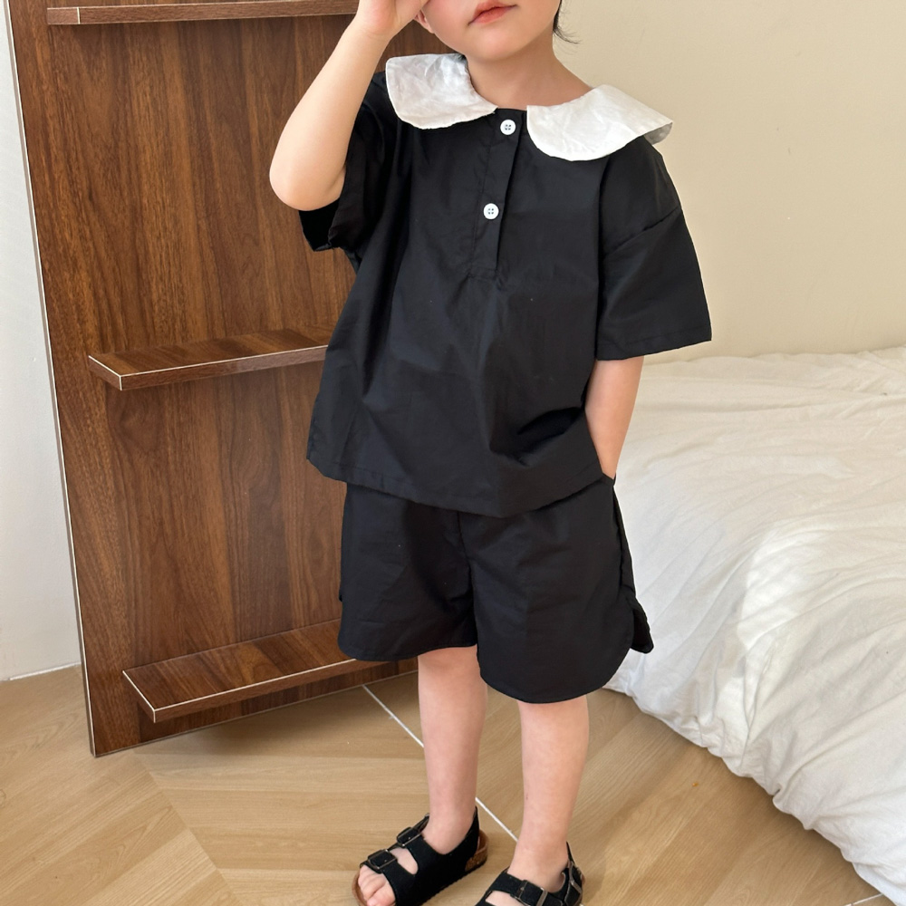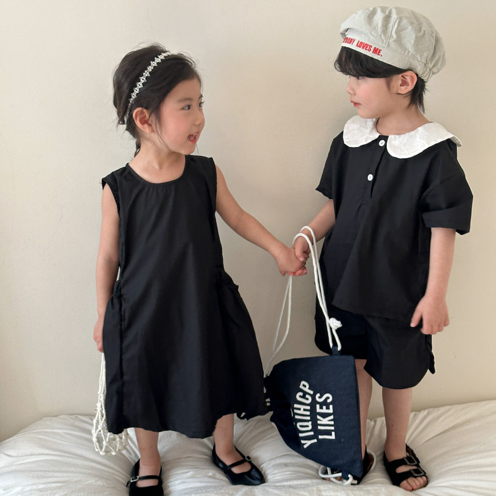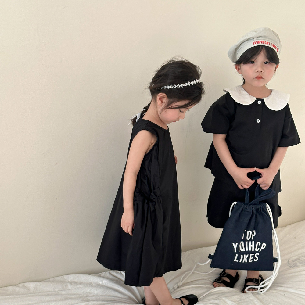 【BS113】韓版黑白圓領兄妹短袖洋裝套裝(1色)