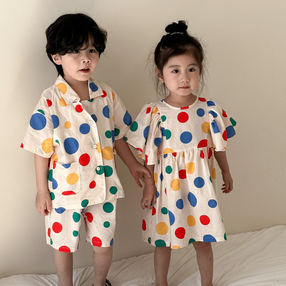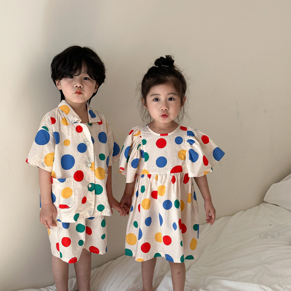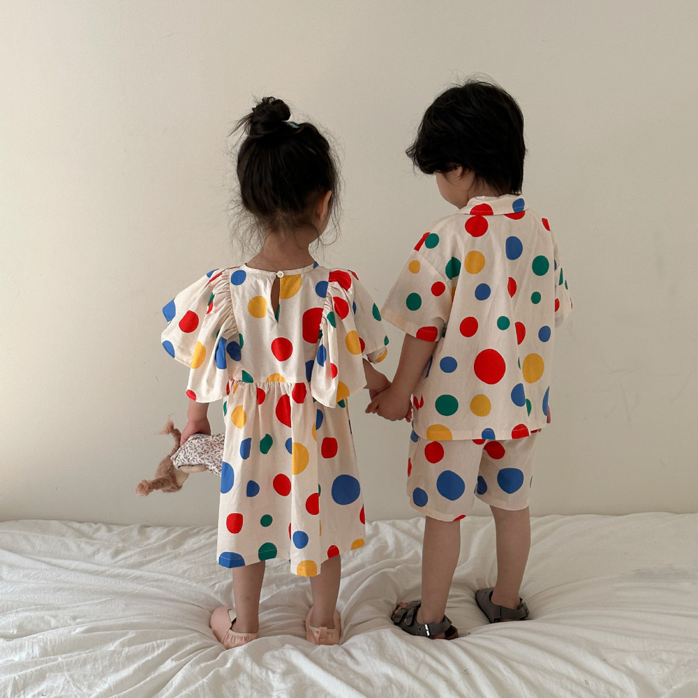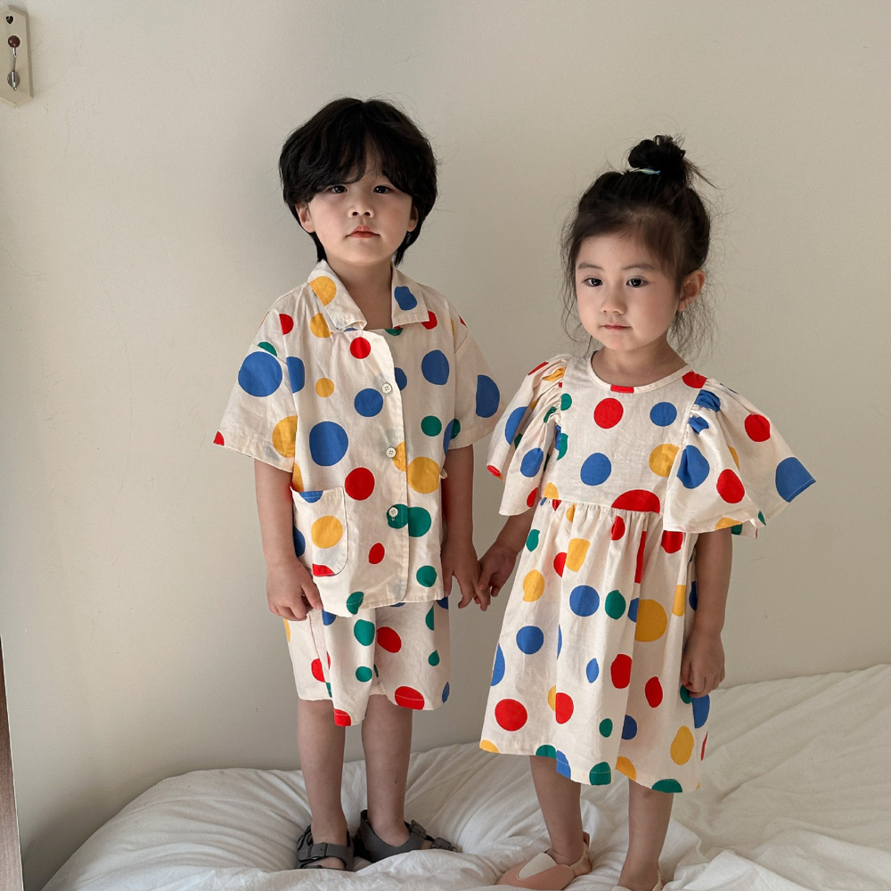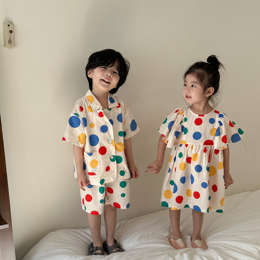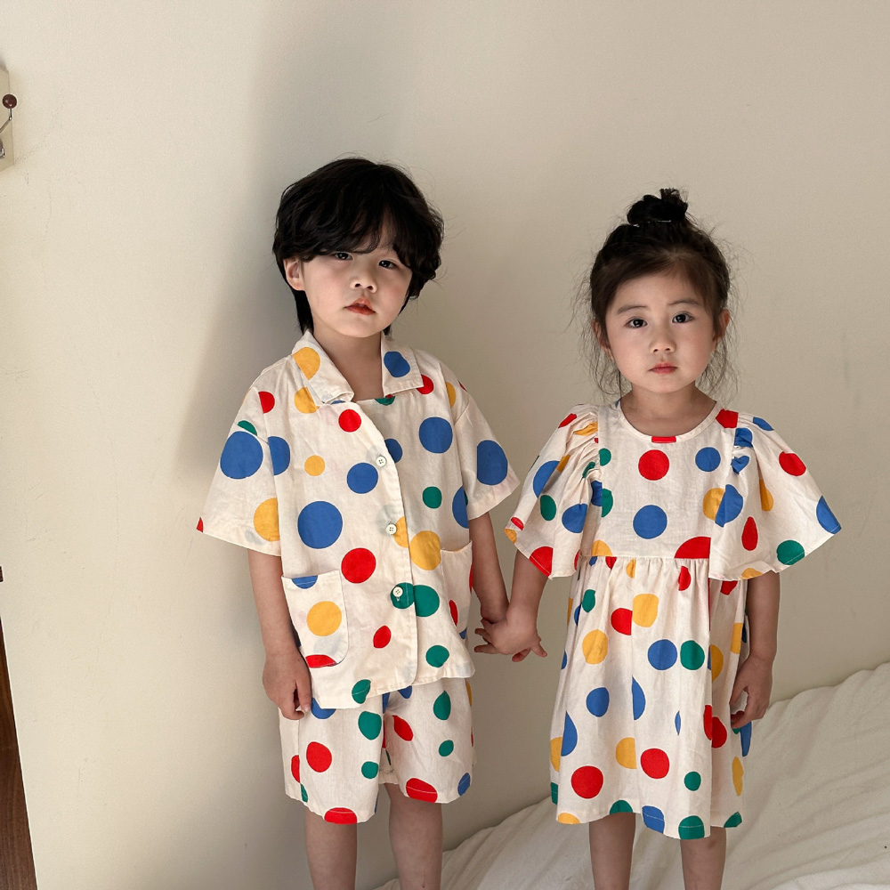 【BS115】韓版彩色點點兄妹短袖洋裝套裝(1色)