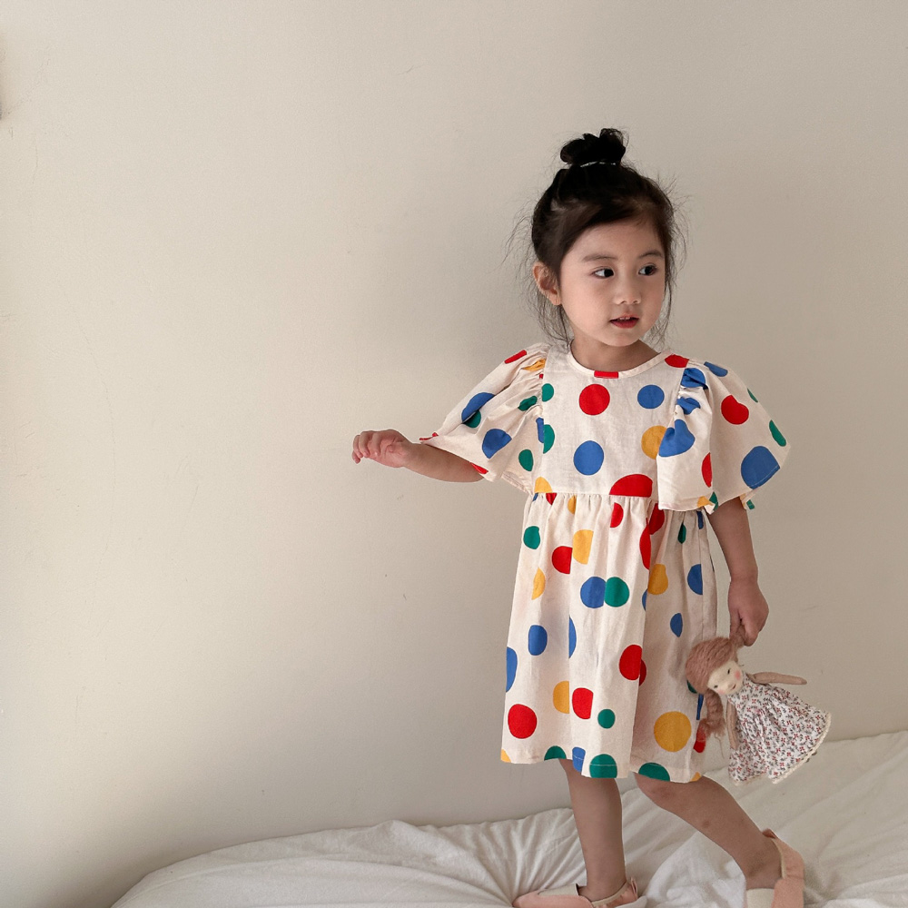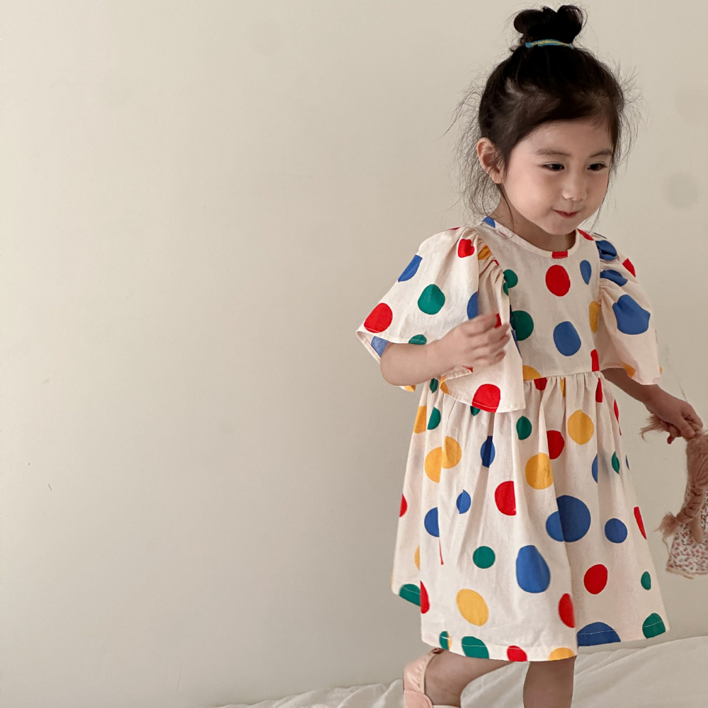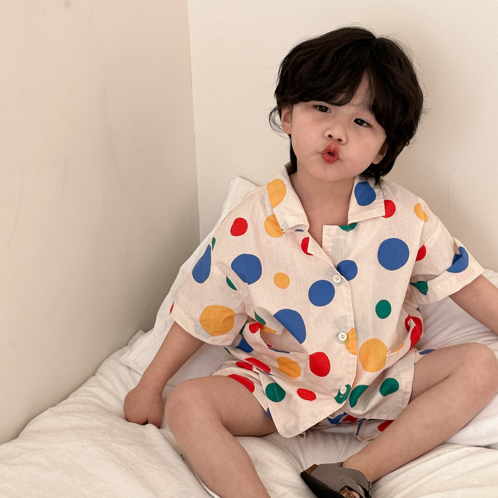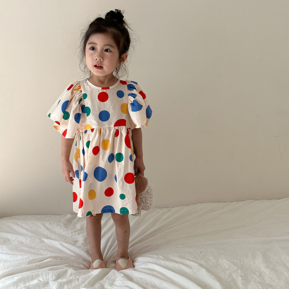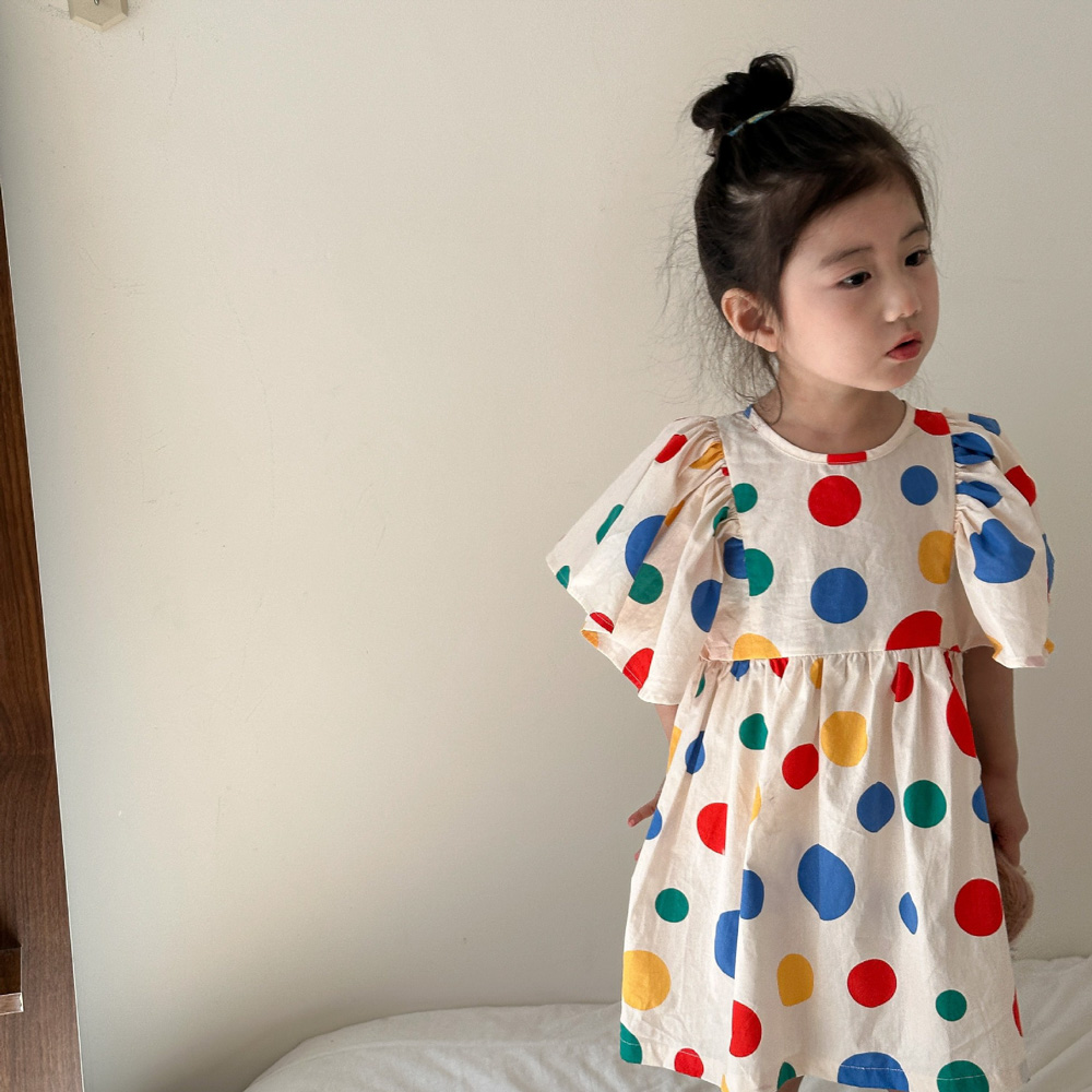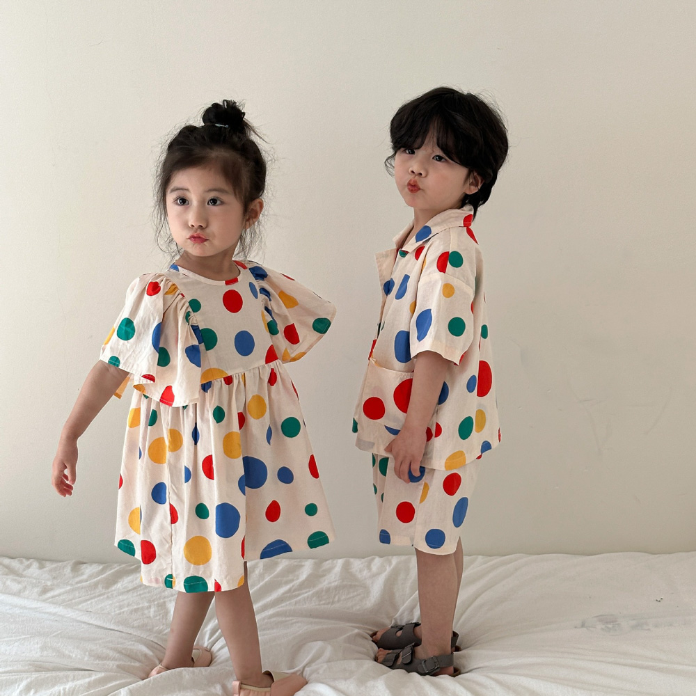 【BS115】韓版彩色點點兄妹短袖洋裝套裝(1色)