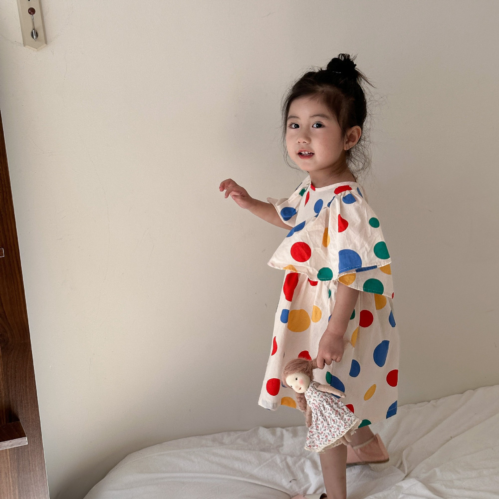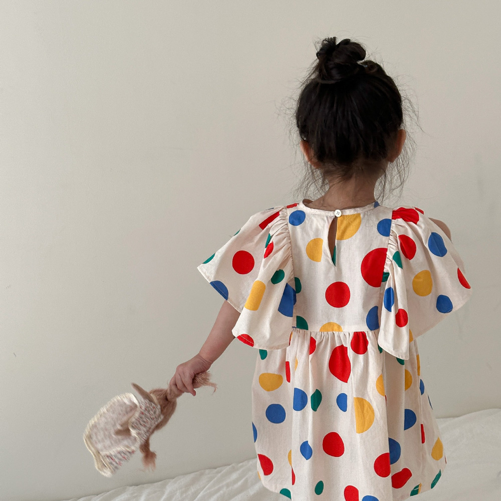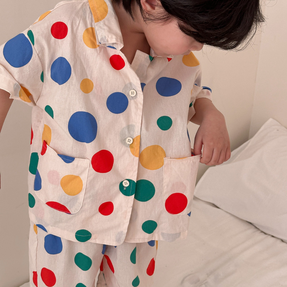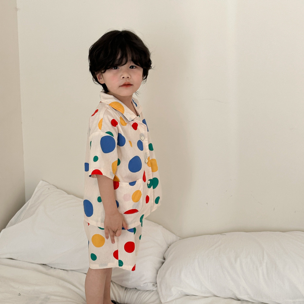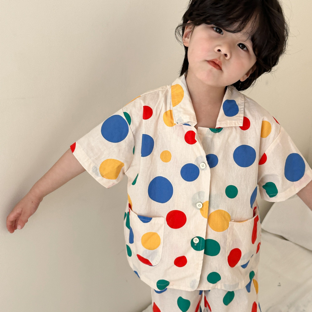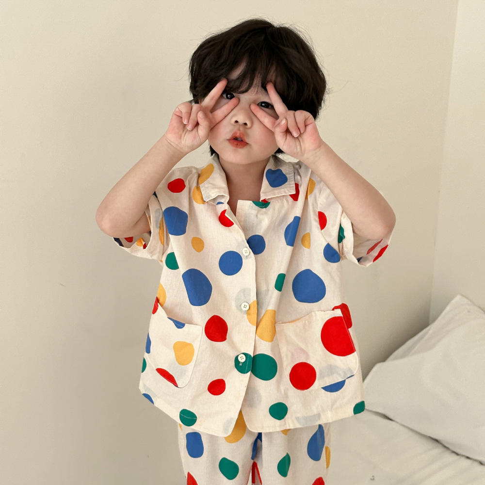 【BS115】韓版彩色點點兄妹短袖洋裝套裝(1色)