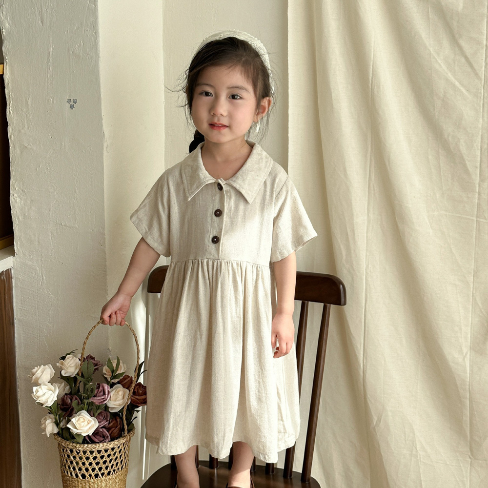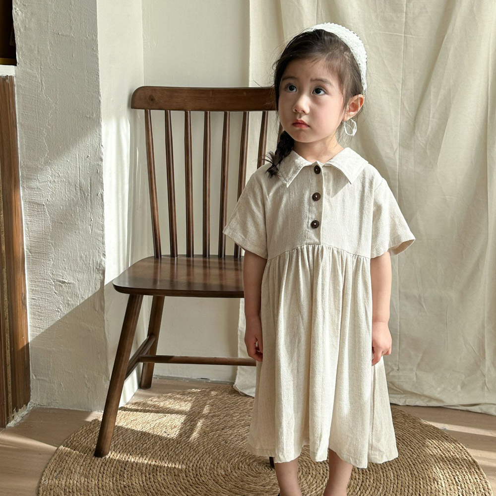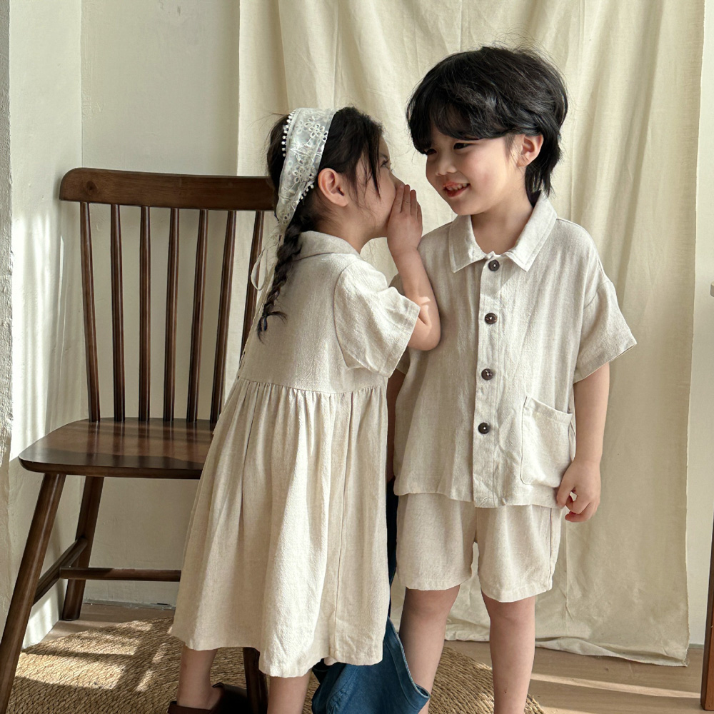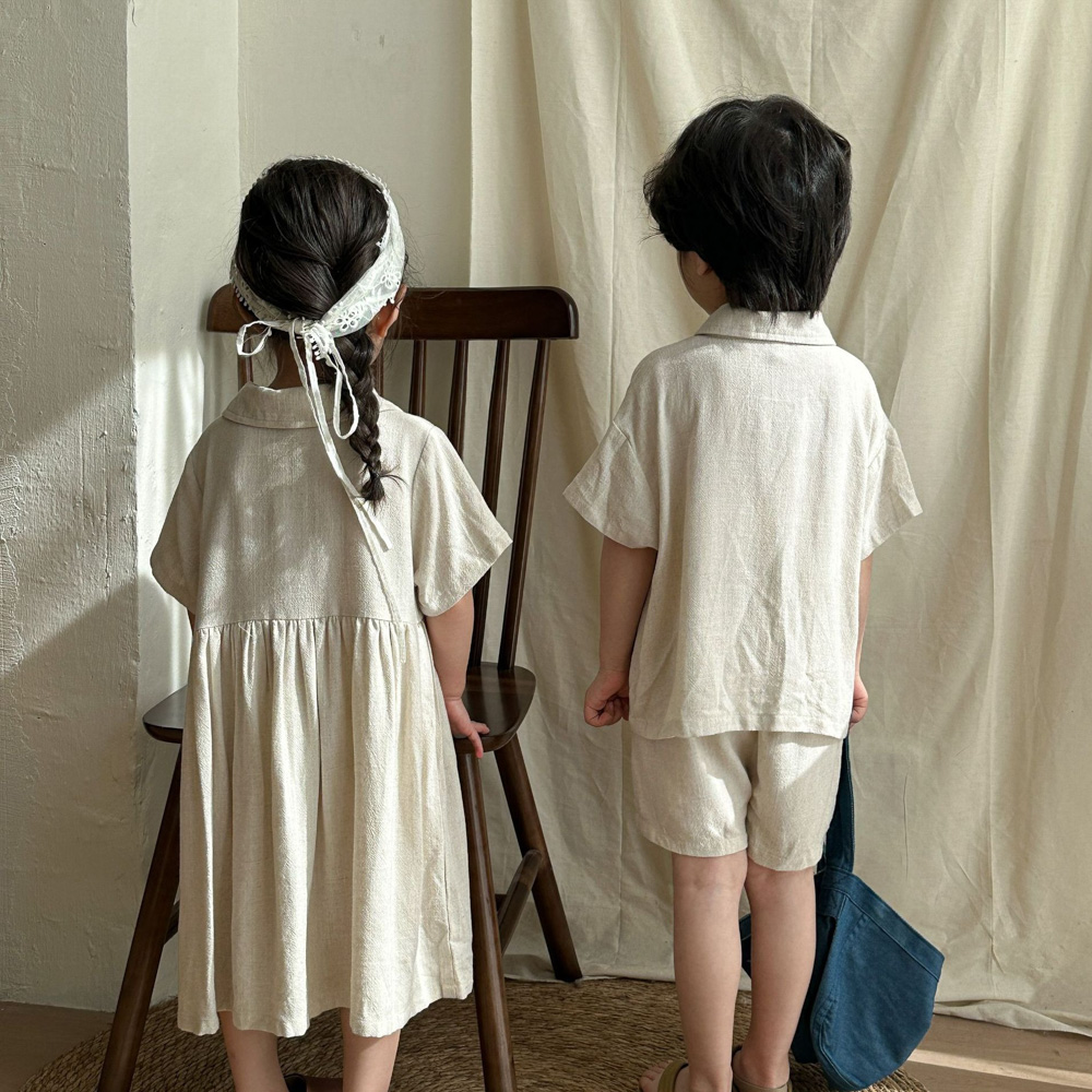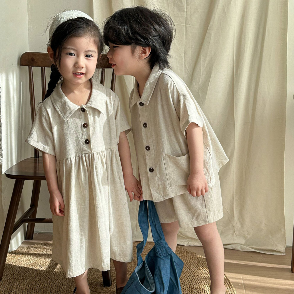 【BS117】韓版純色小鈕扣兄妹短袖洋裝套裝(1色)