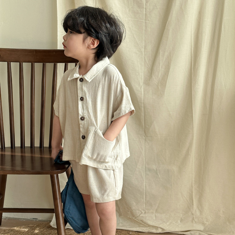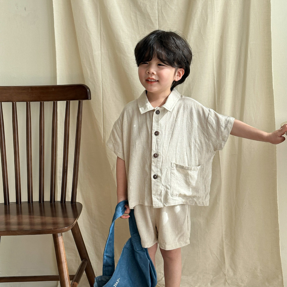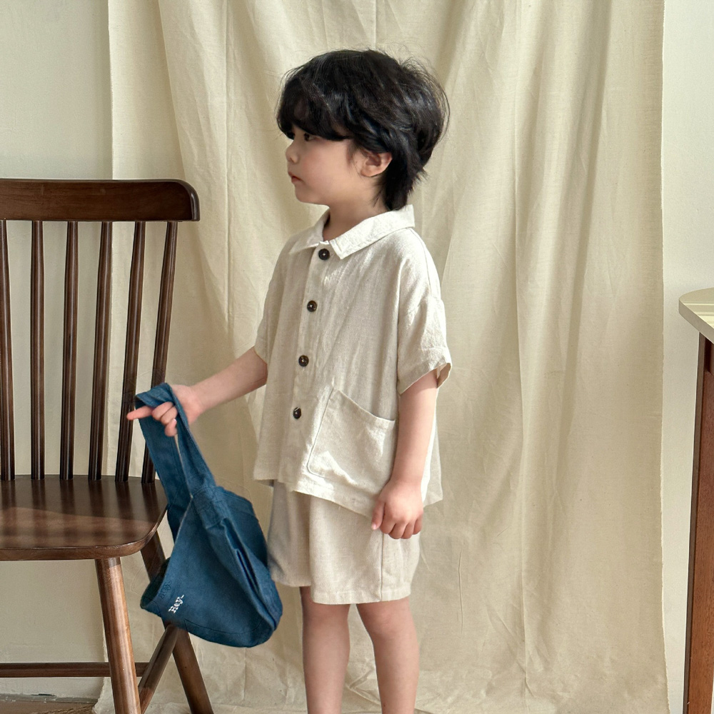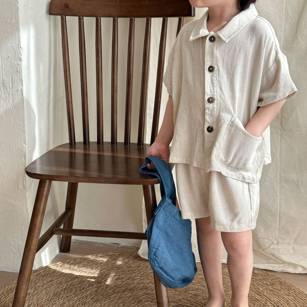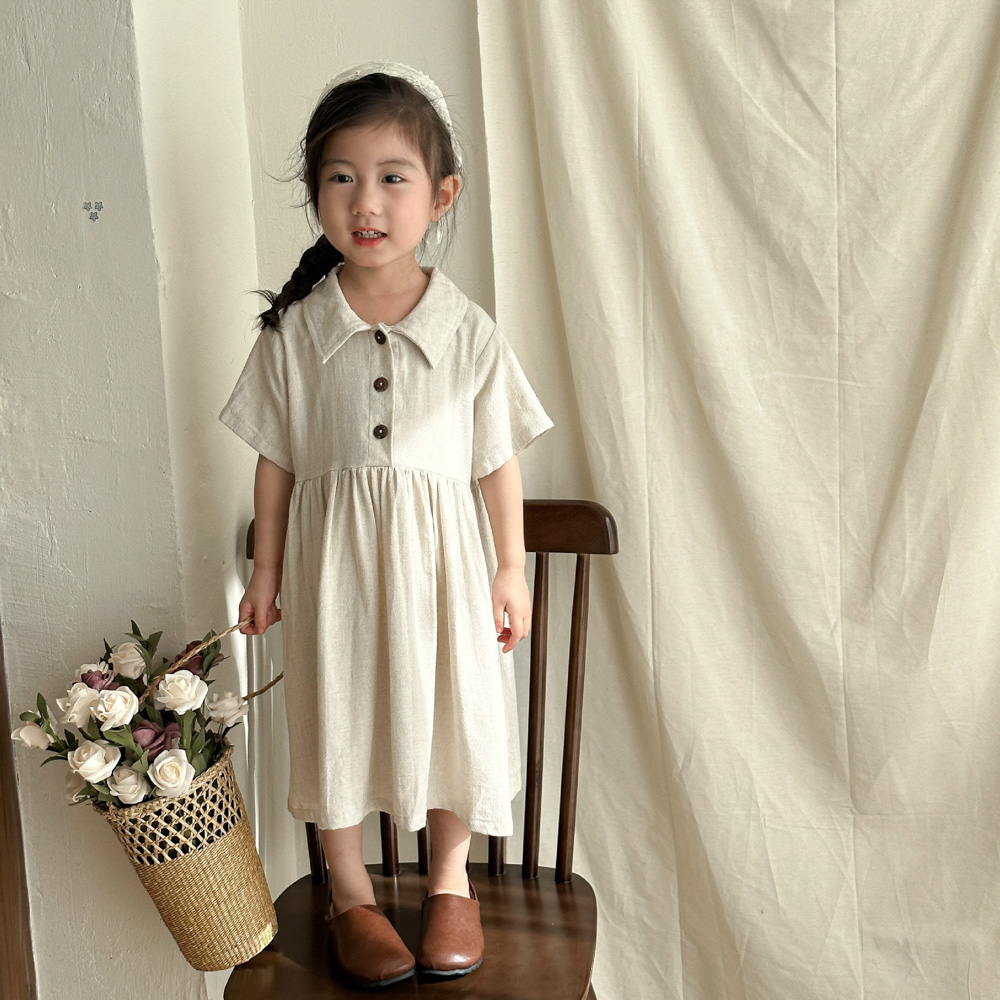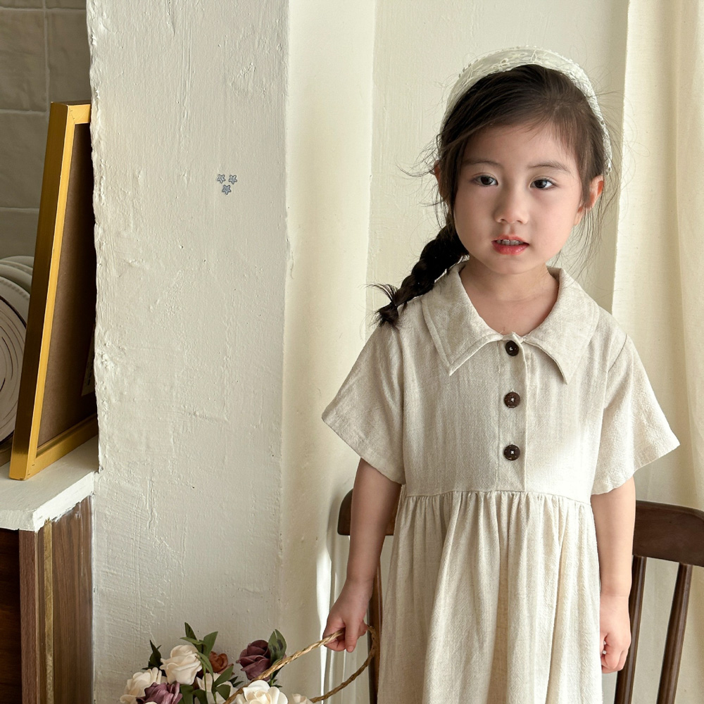 【BS117】韓版純色小鈕扣兄妹短袖洋裝套裝(1色)