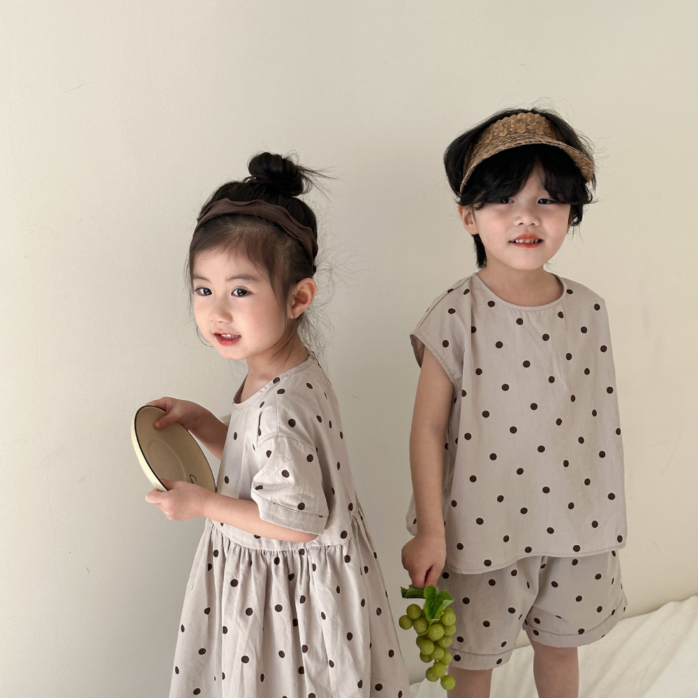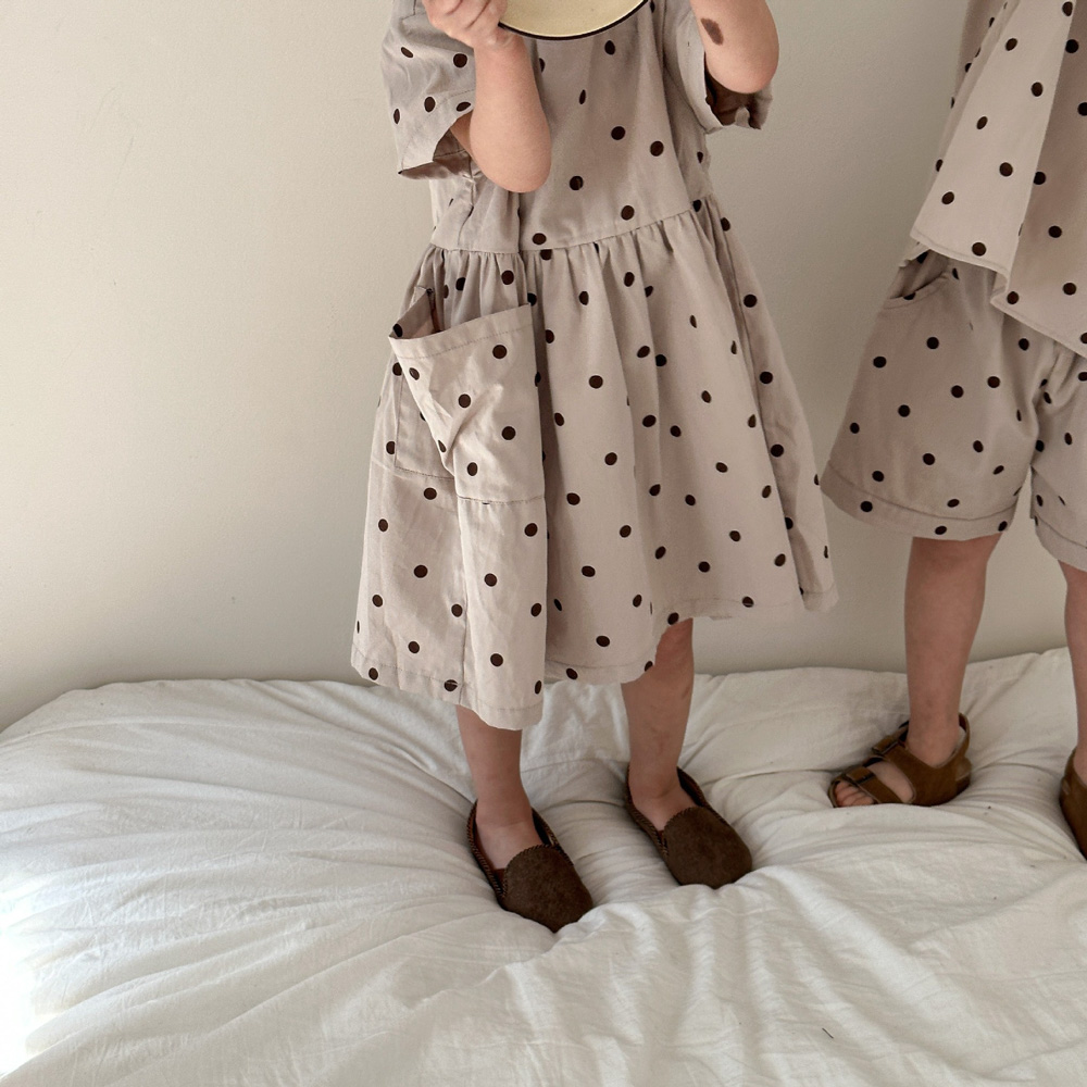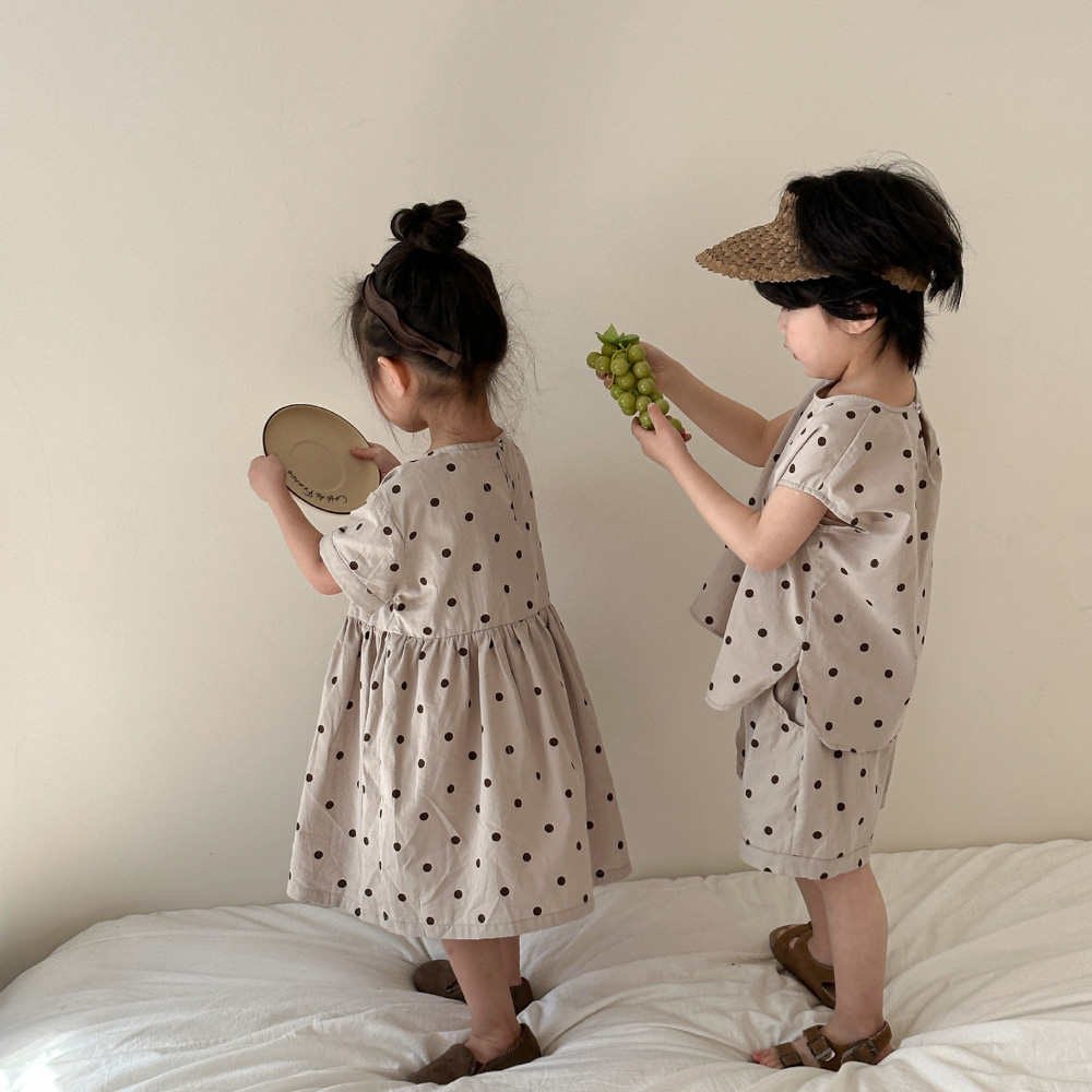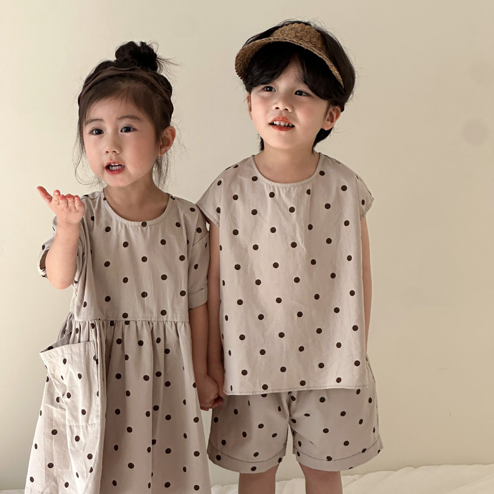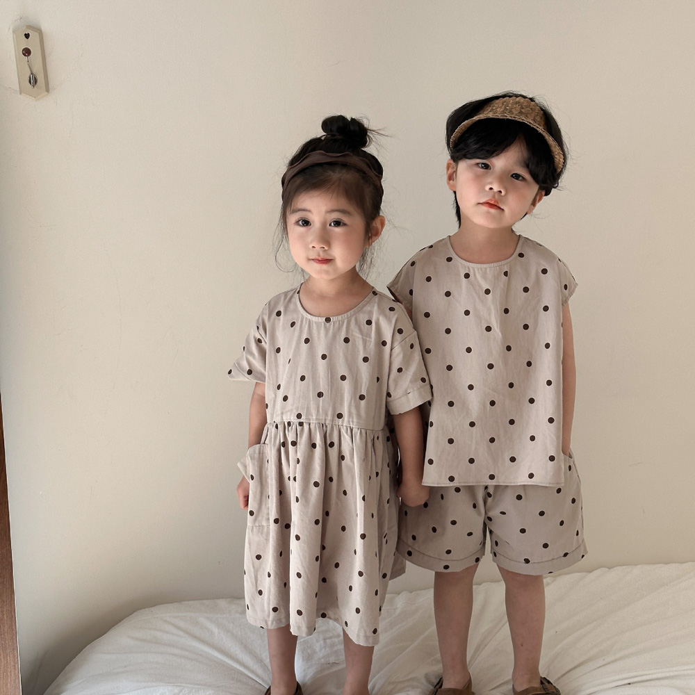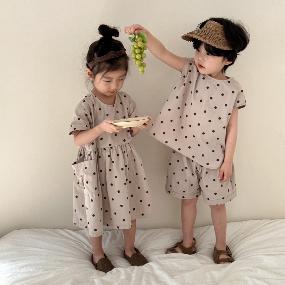 【BS118】韓版小點點兄妹短袖洋裝套裝(1色)