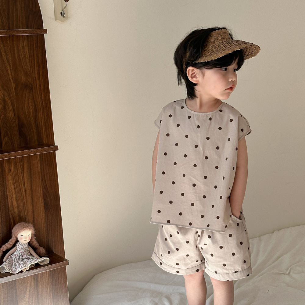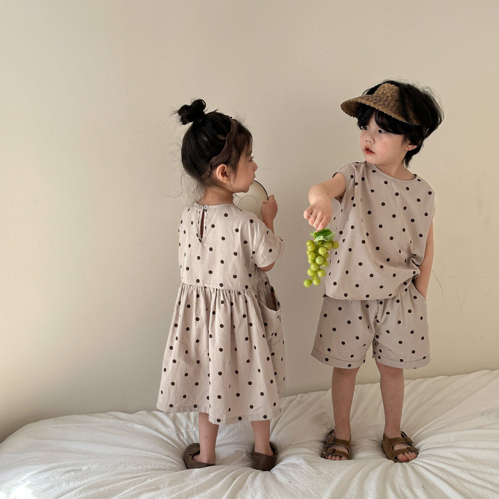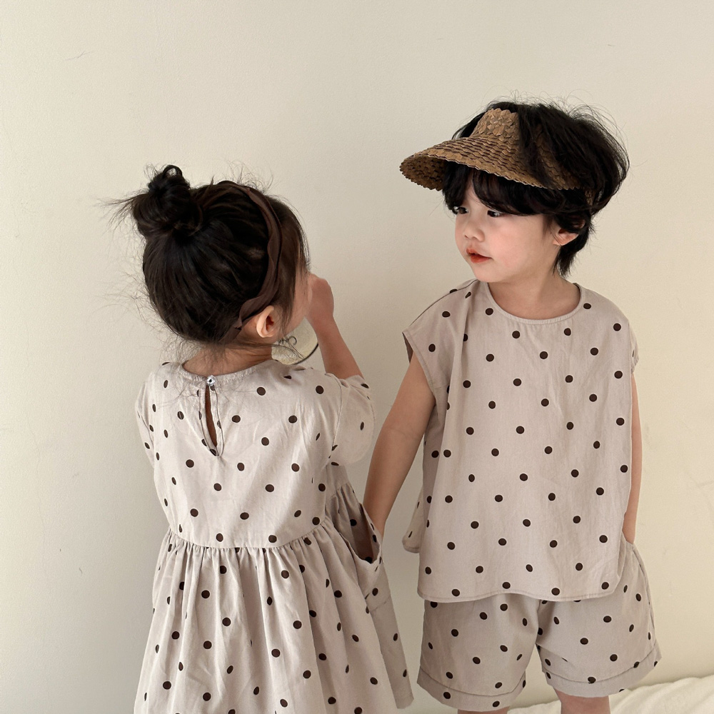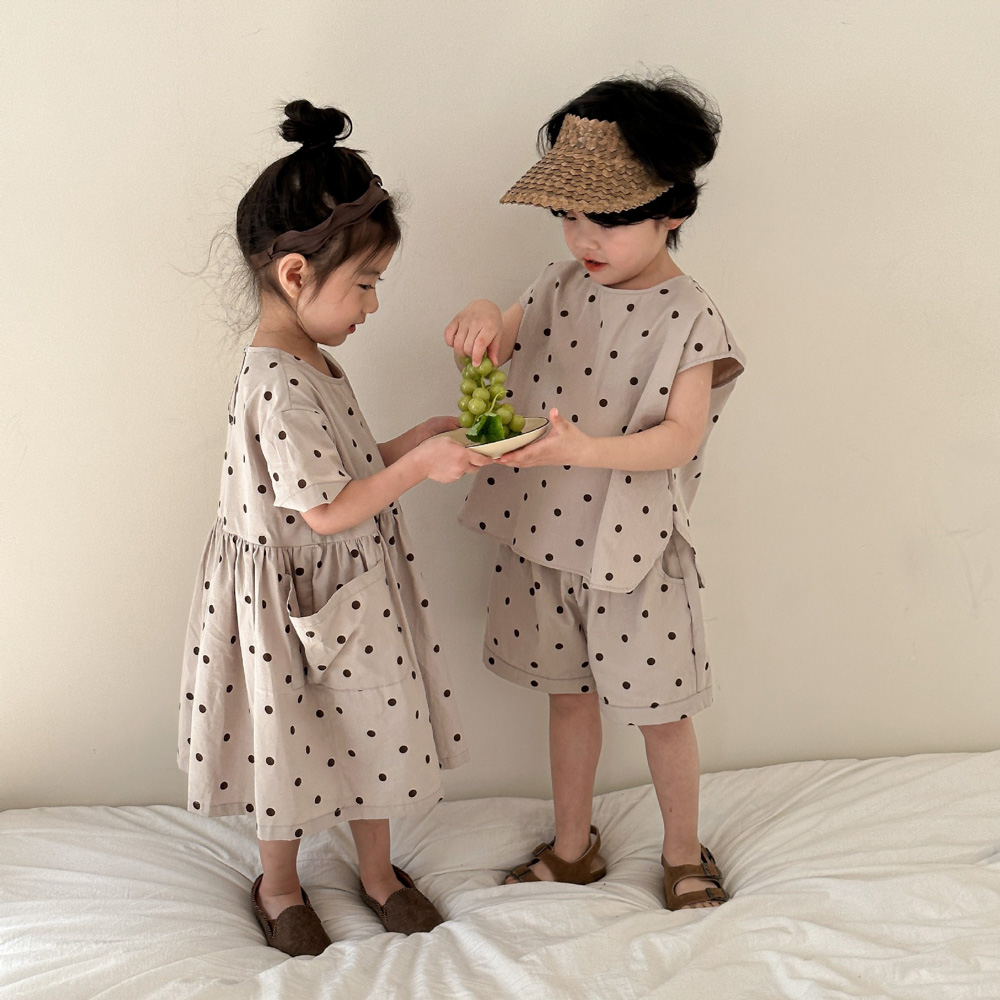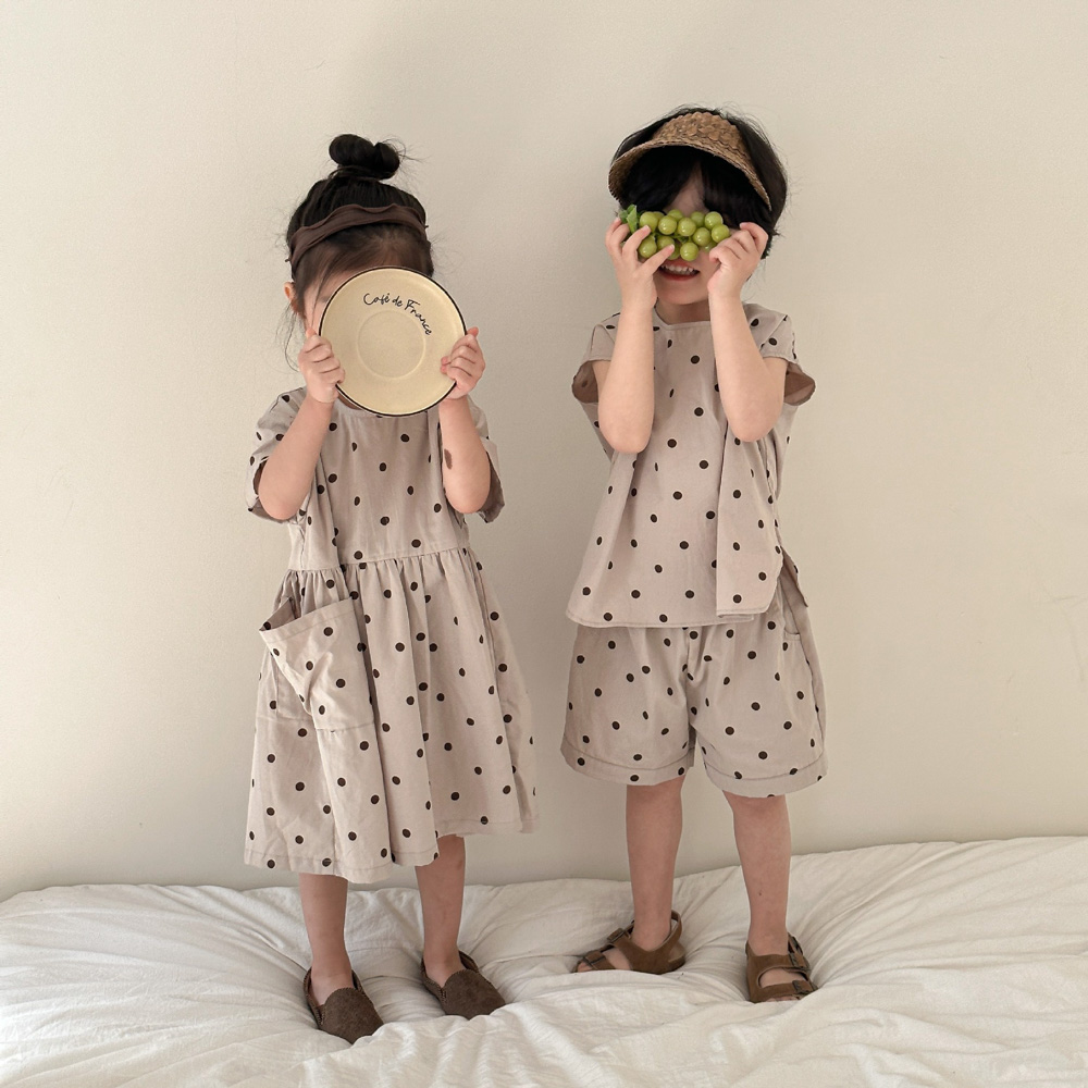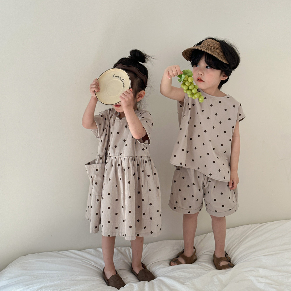 【BS118】韓版小點點兄妹短袖洋裝套裝(1色)