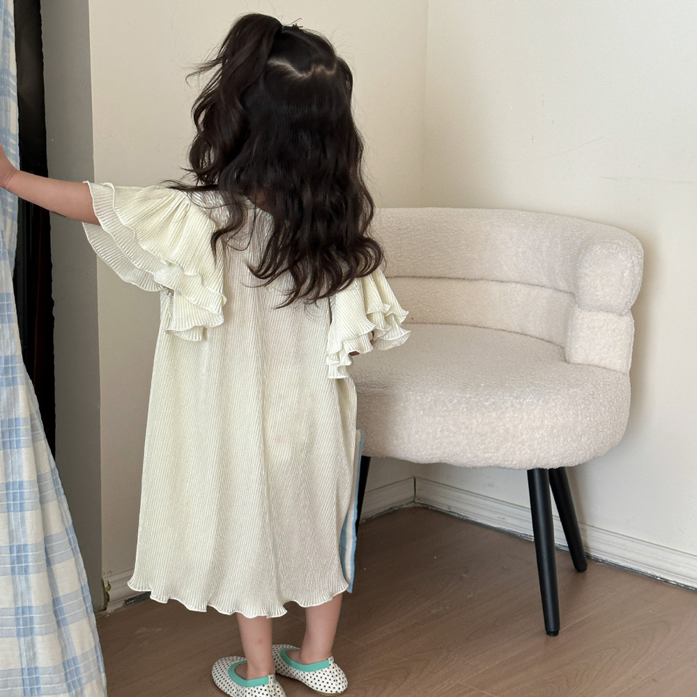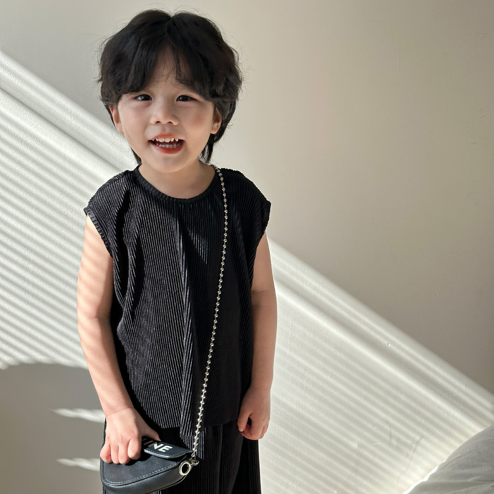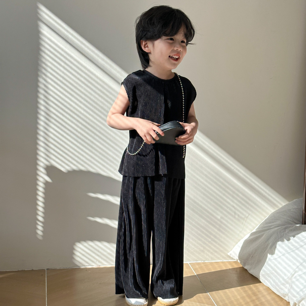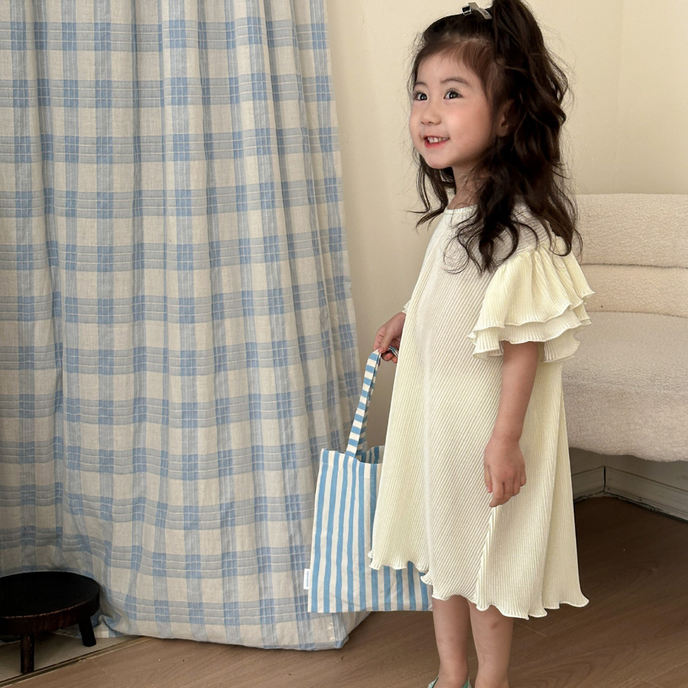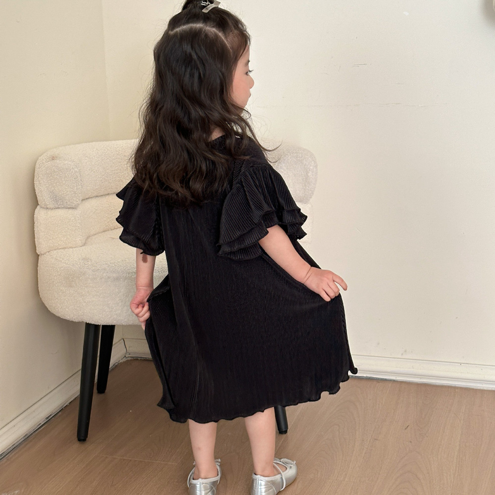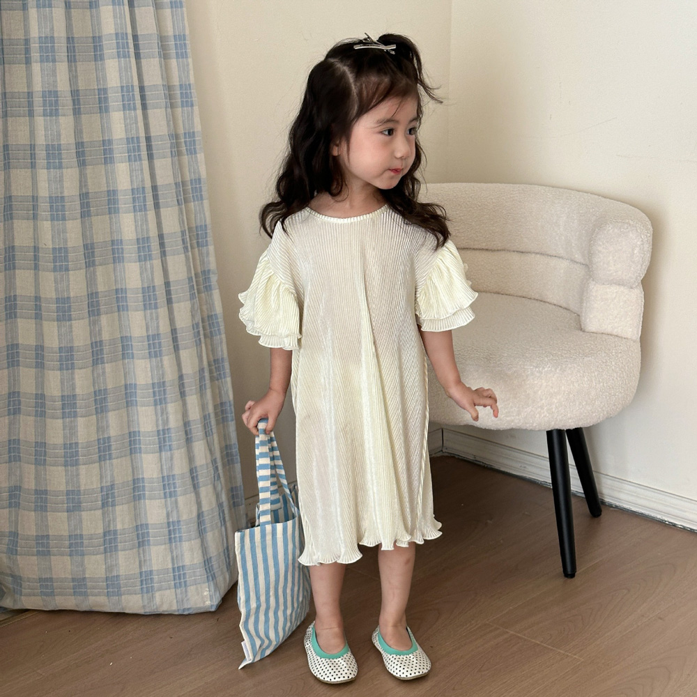 【BS124】韓版純色百褶兄妹短袖洋裝套裝(2色)