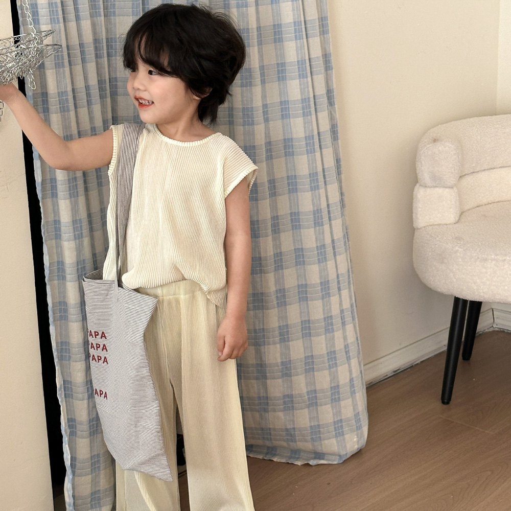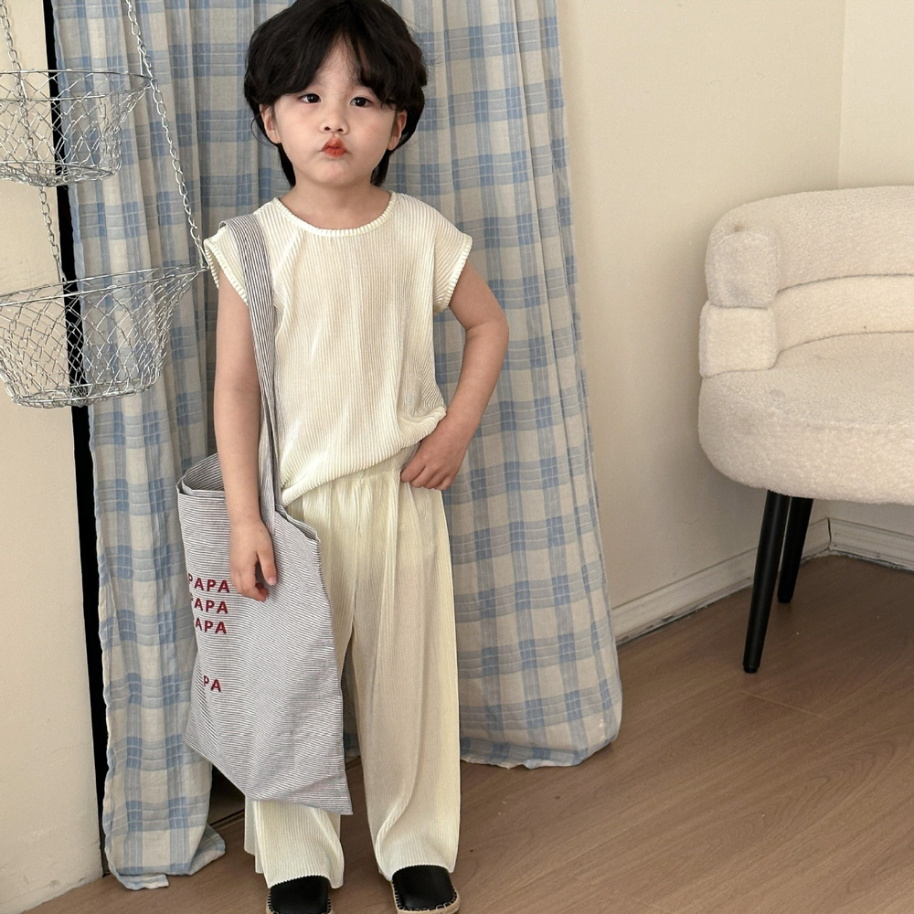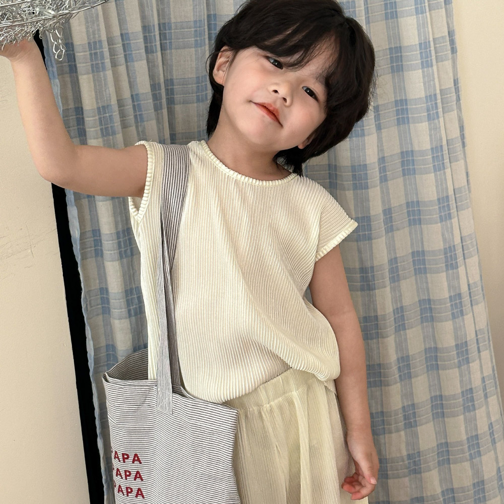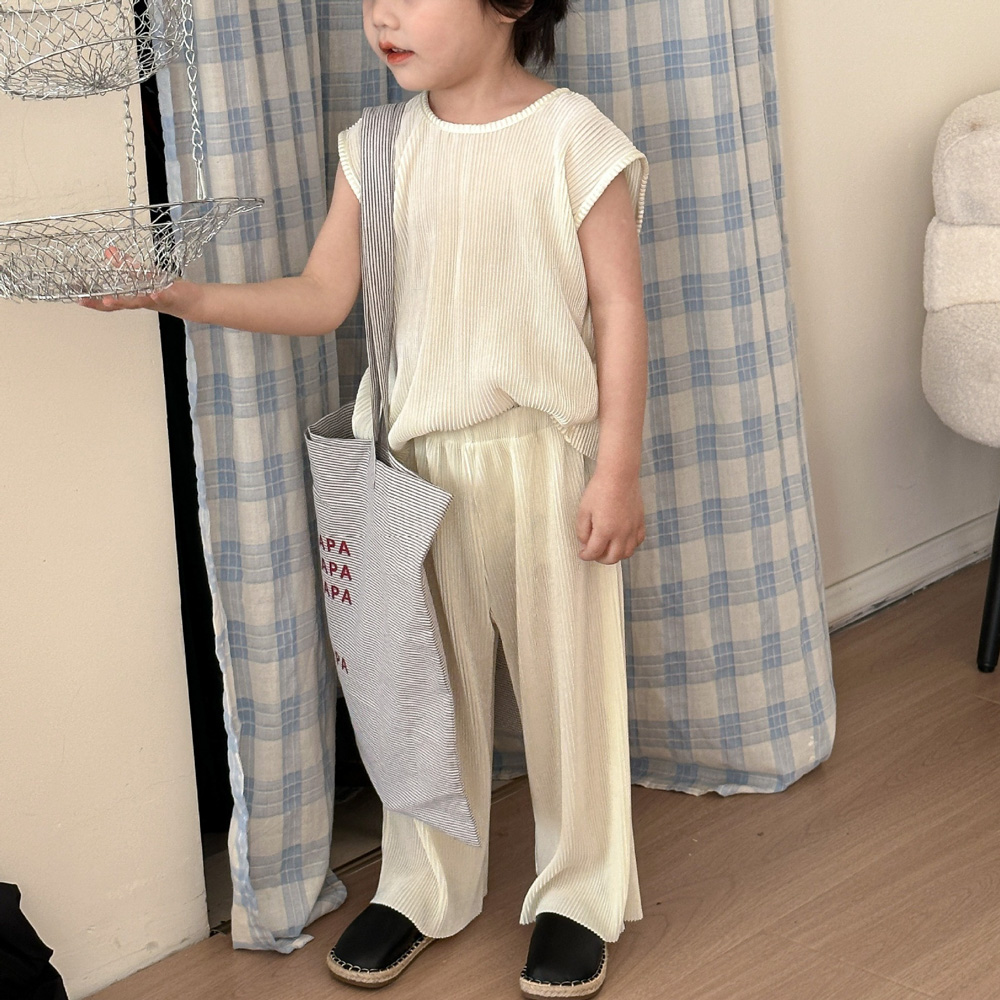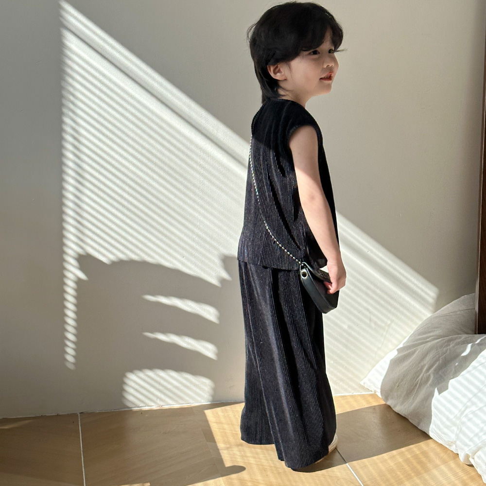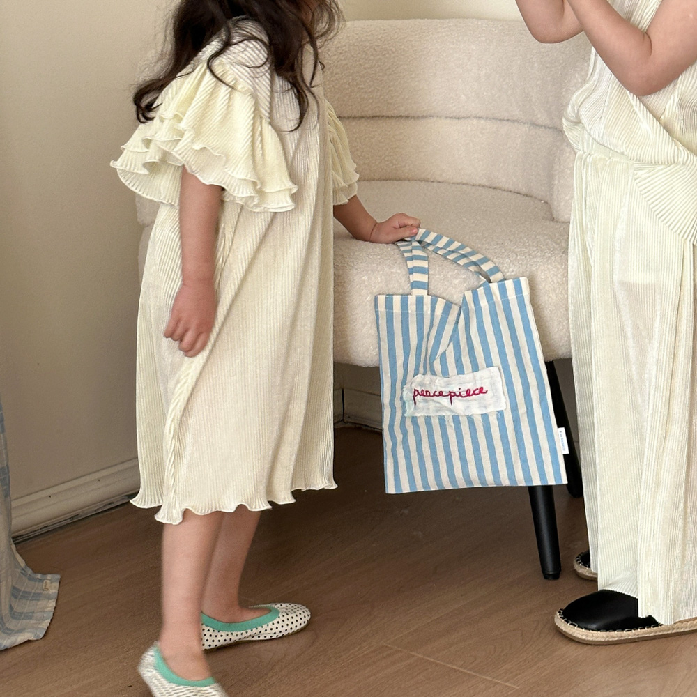 【BS124】韓版純色百褶兄妹短袖洋裝套裝(2色)