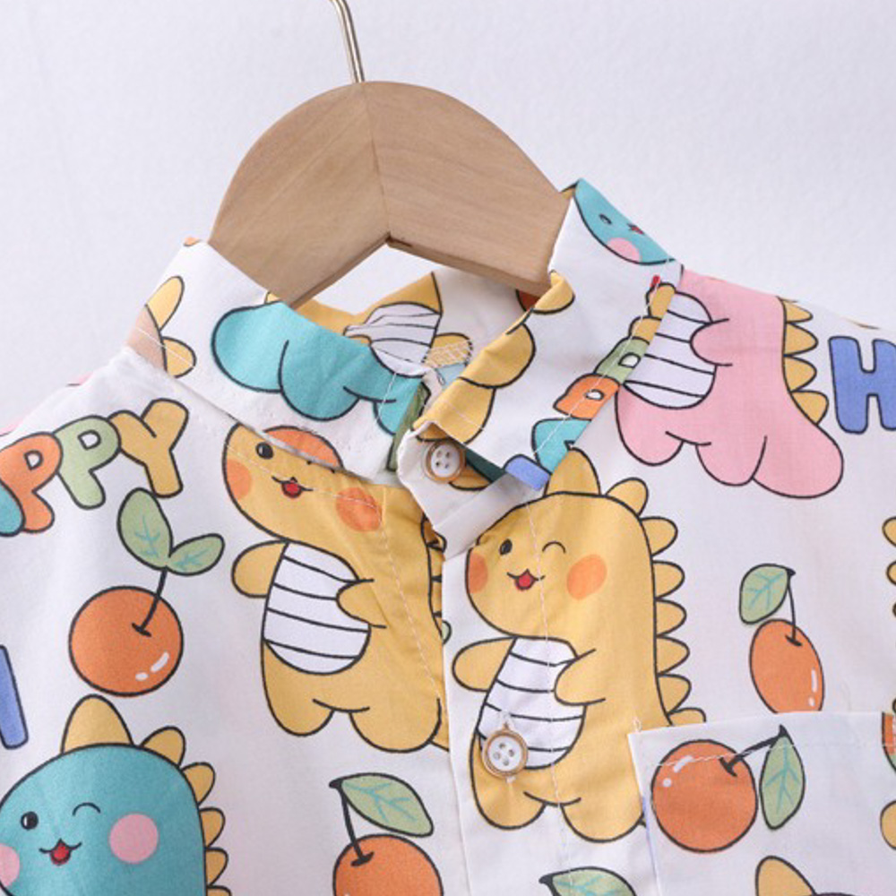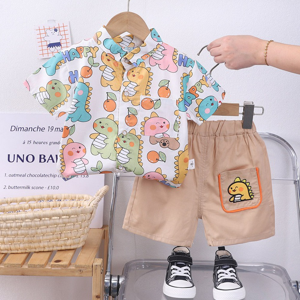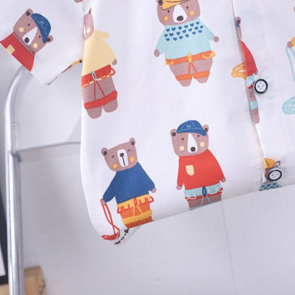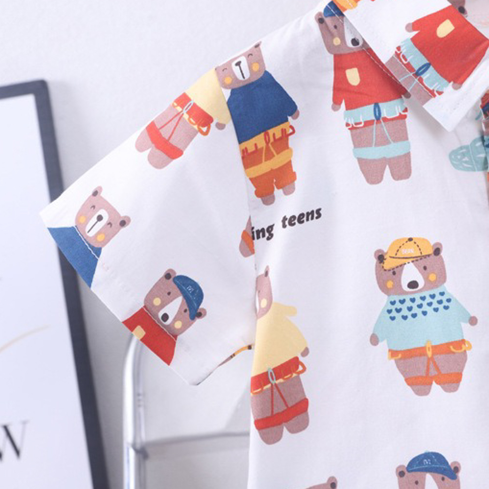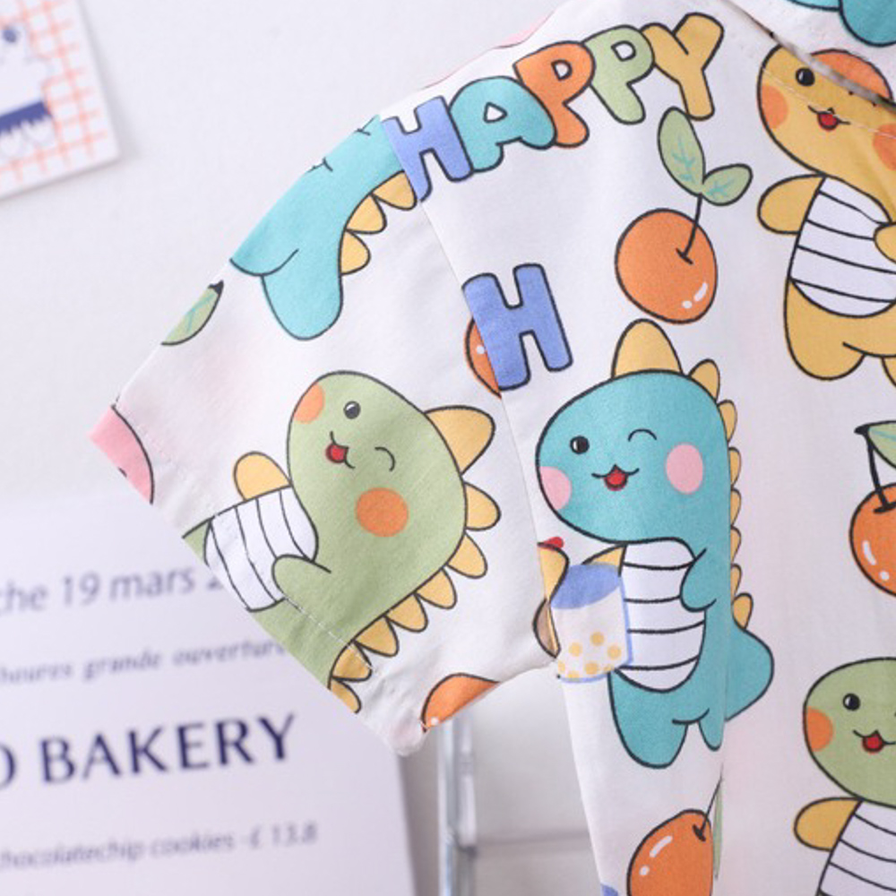 【BB357】韓版字母恐龍熊襯衫兩件式短袖短褲套裝(4色)