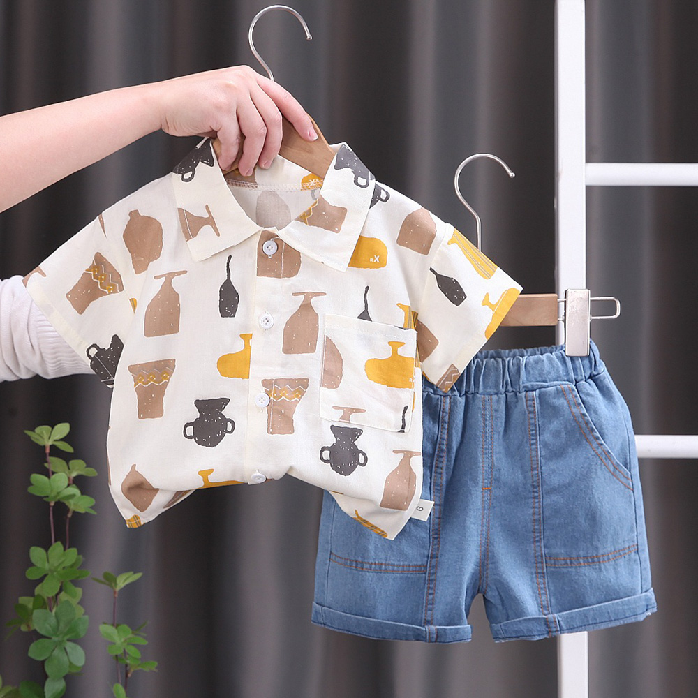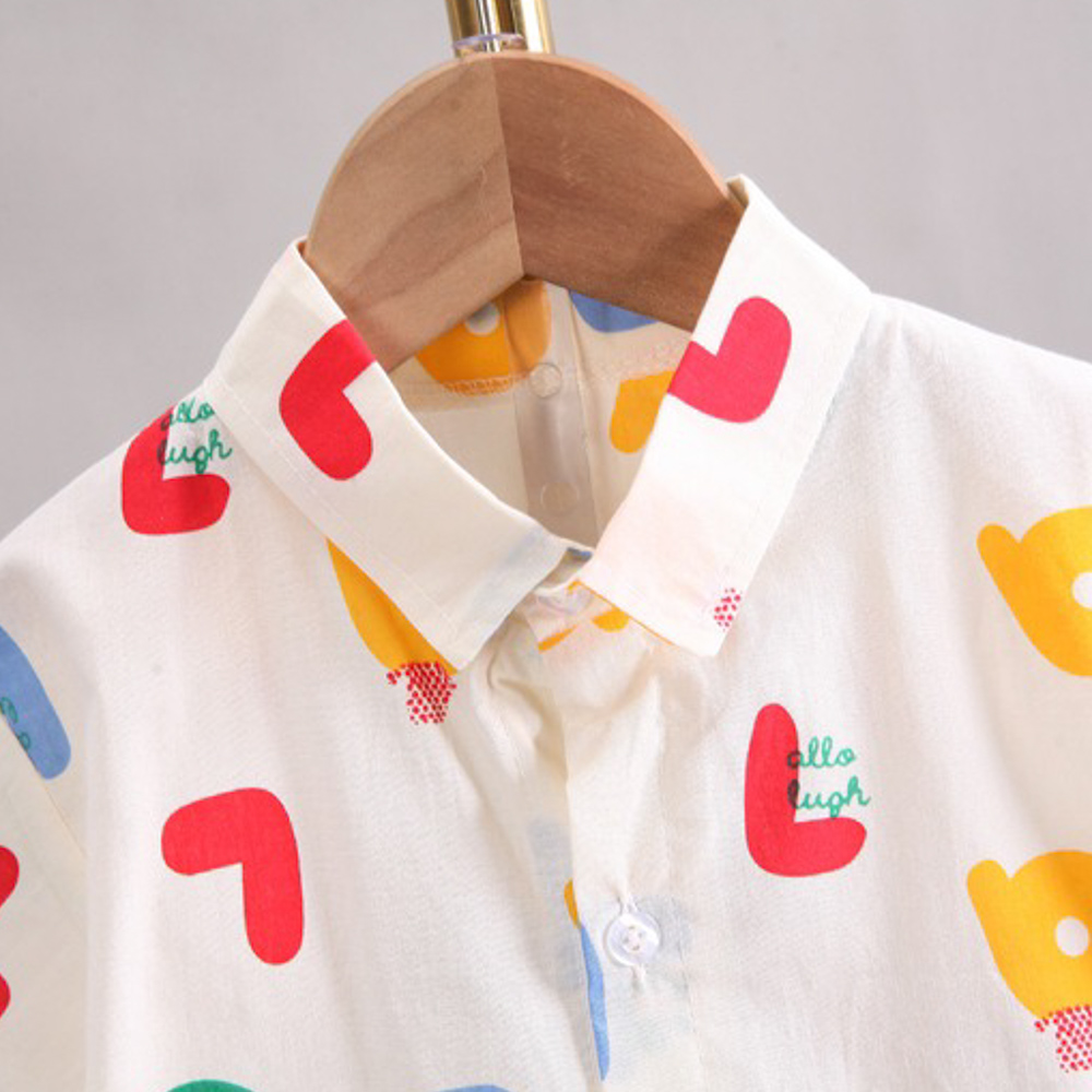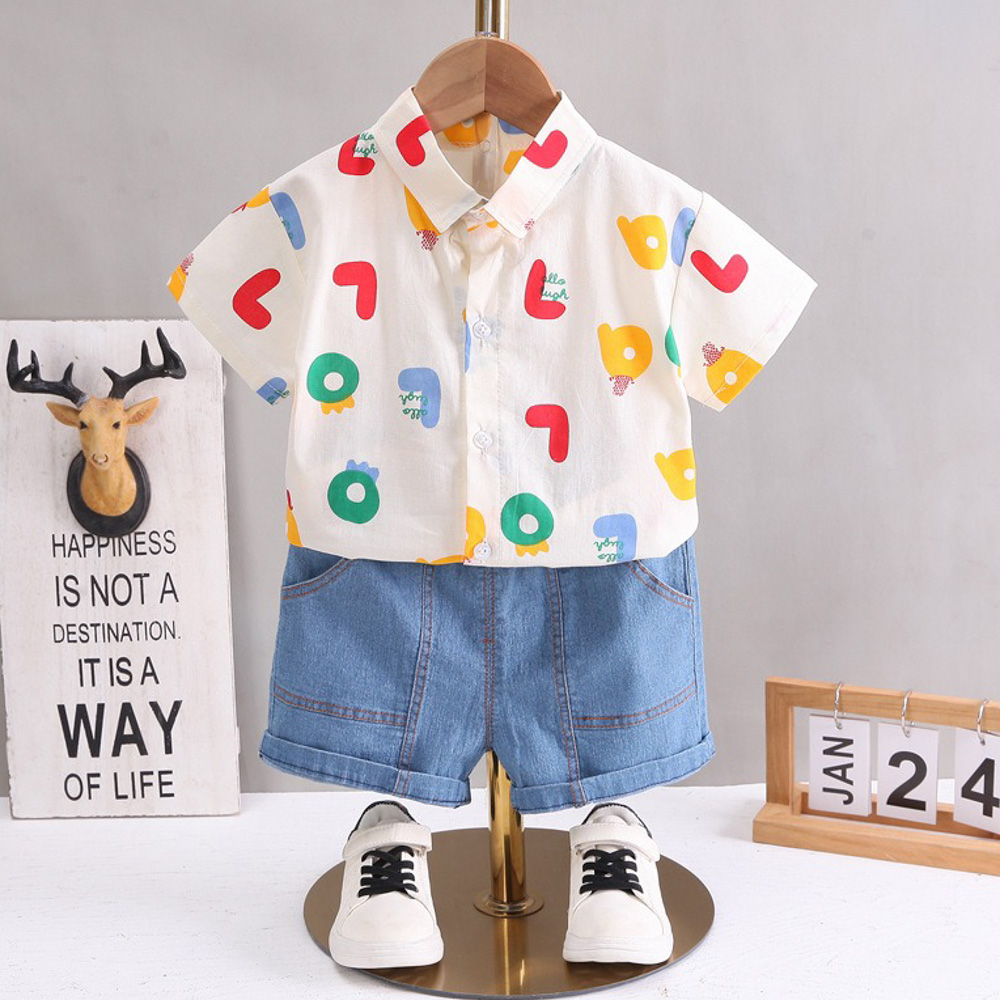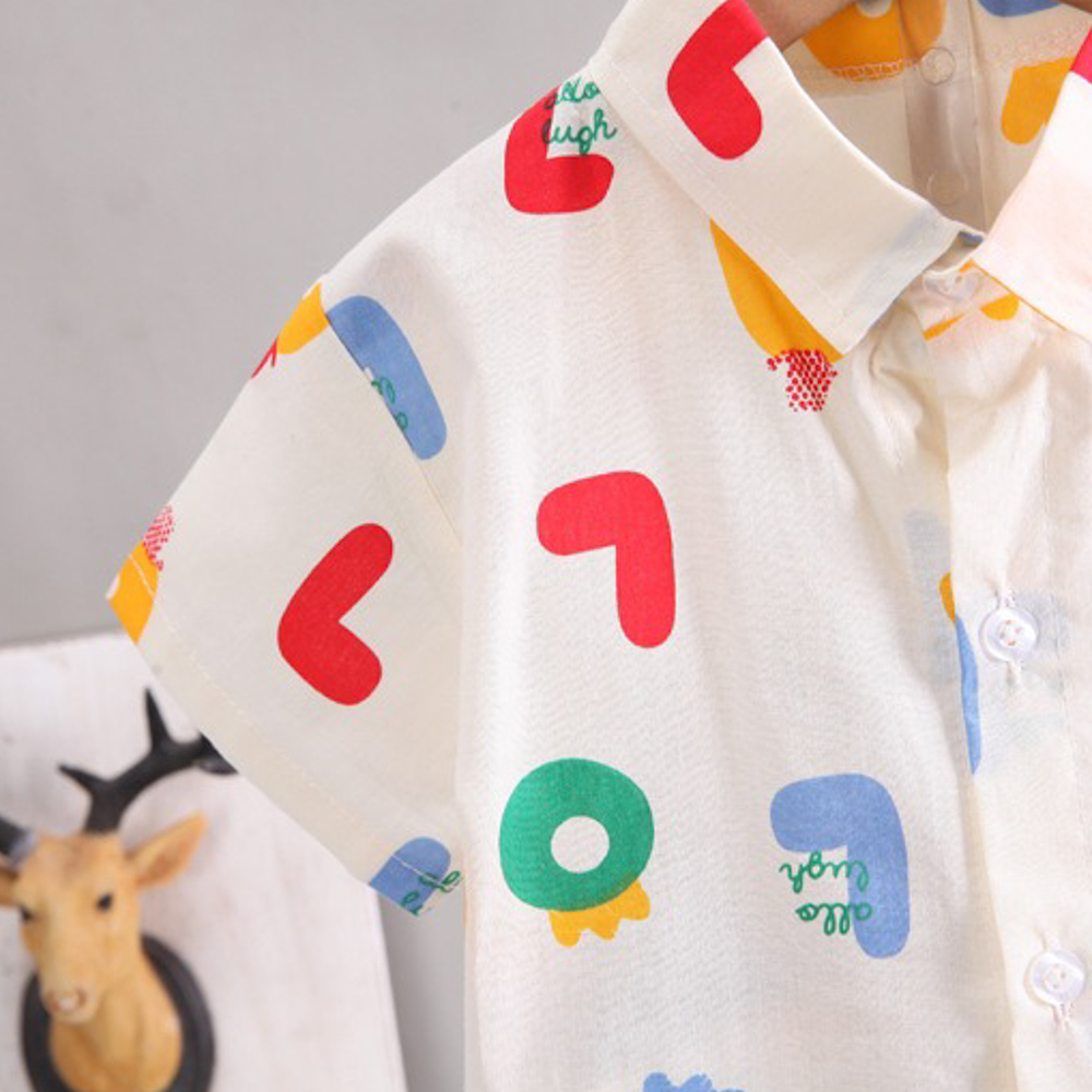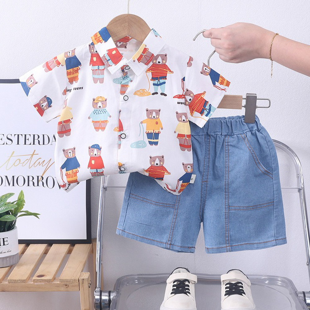 【BB357】韓版字母恐龍熊襯衫兩件式短袖短褲套裝(4色)