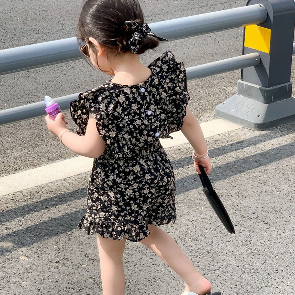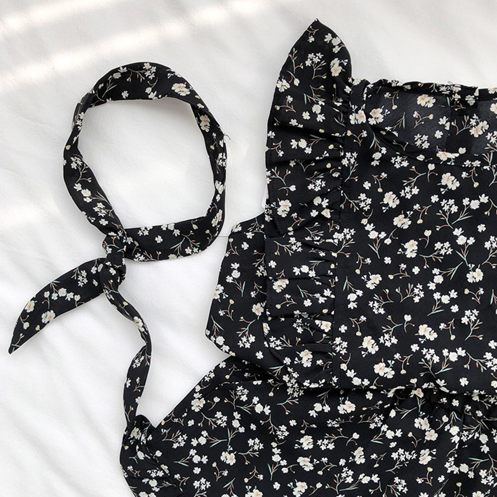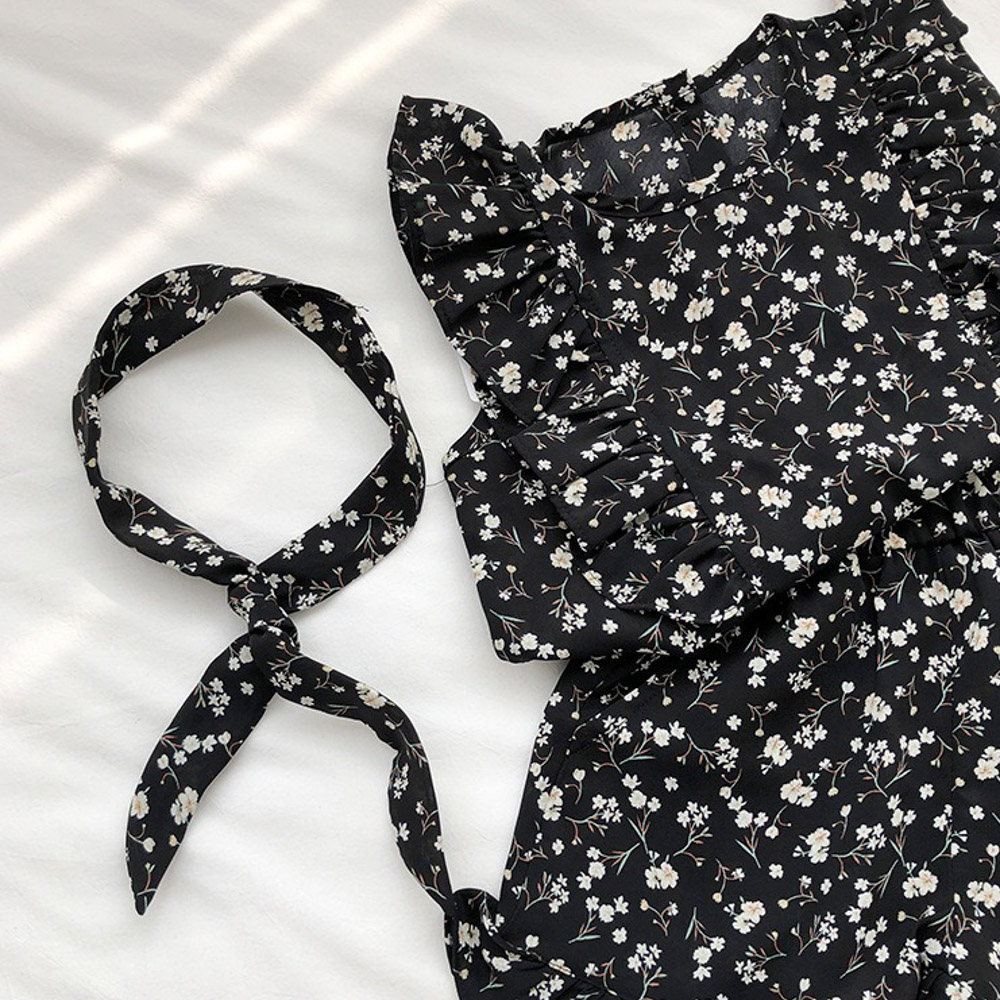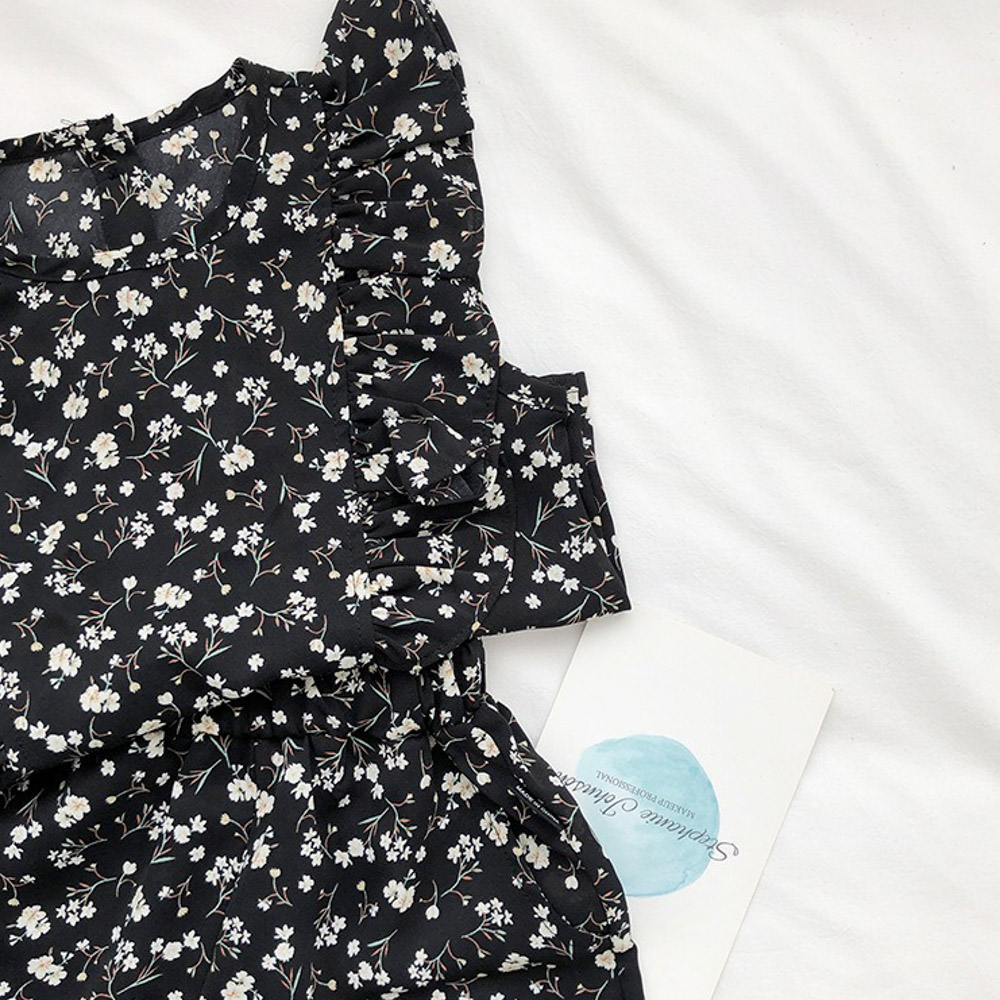 【BG762】日系黑白碎花兩件式無袖短褲套裝(送髮帶)(1色)