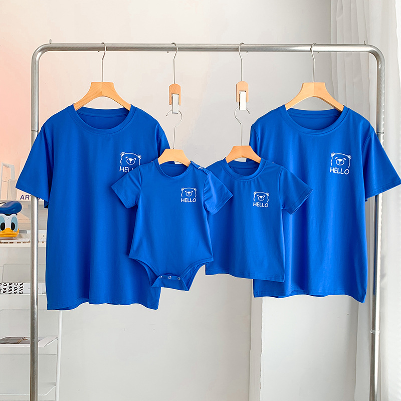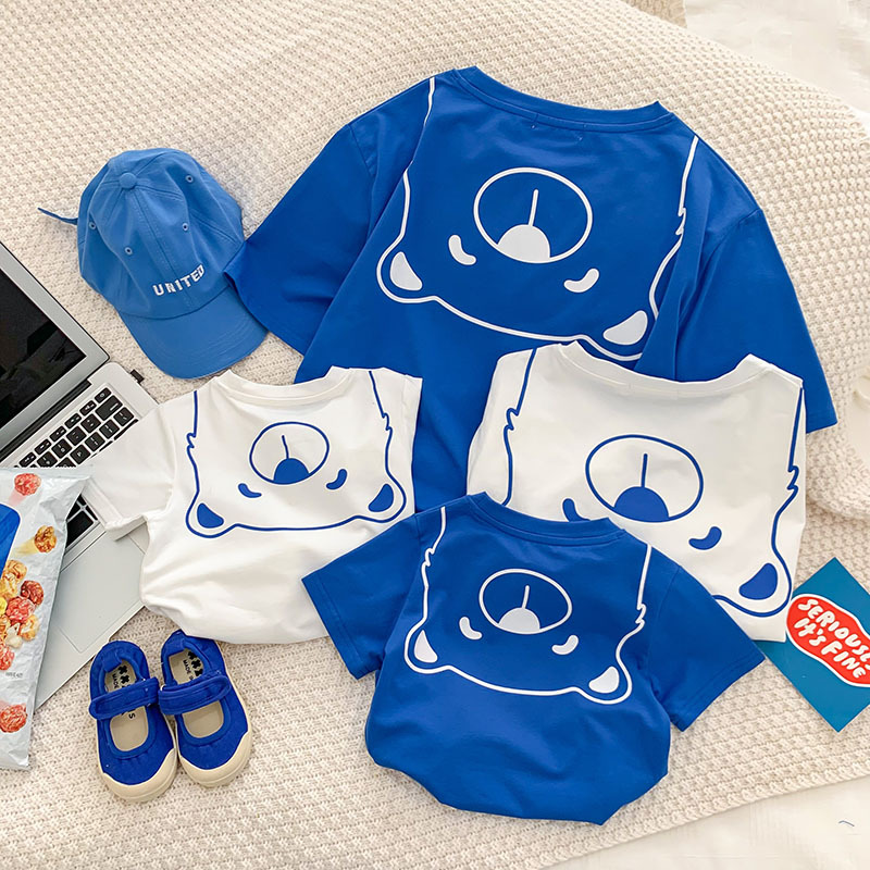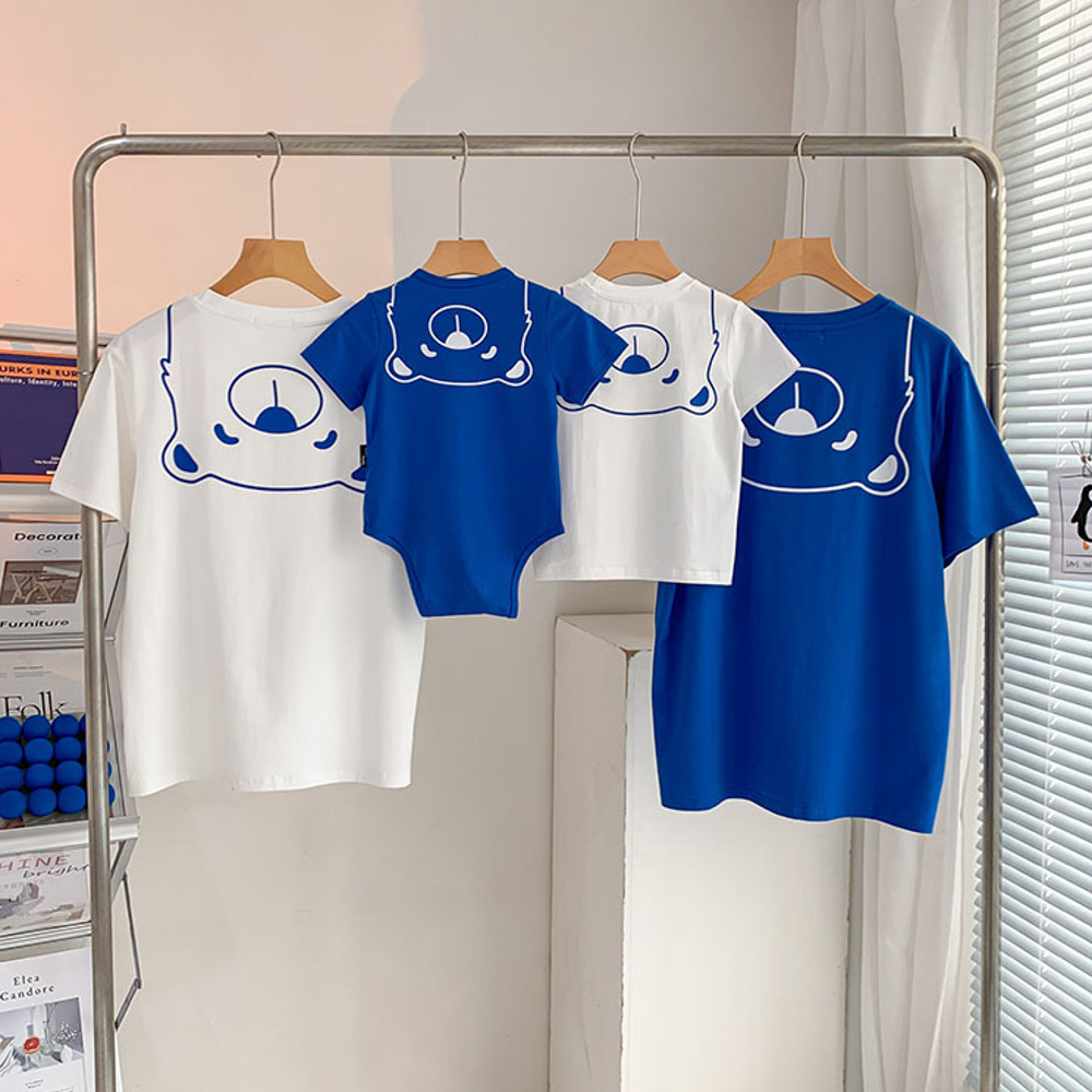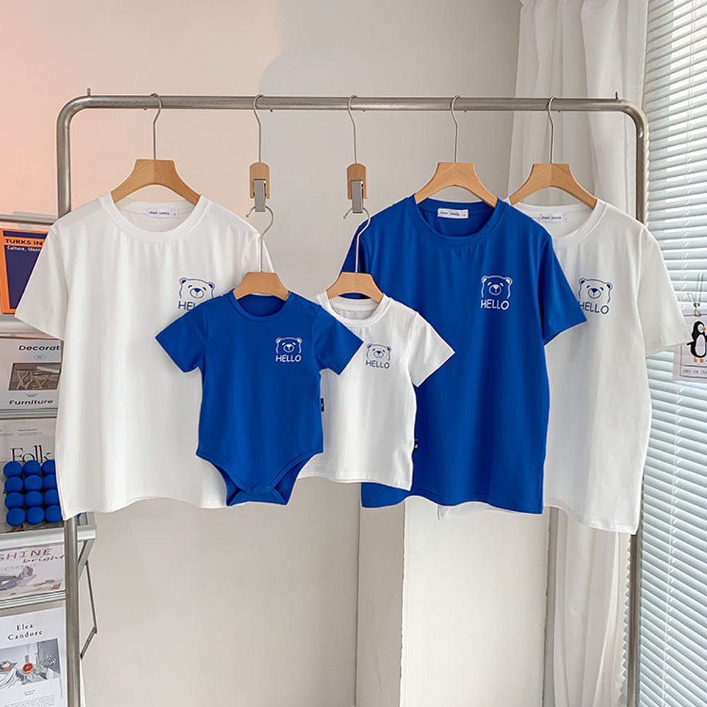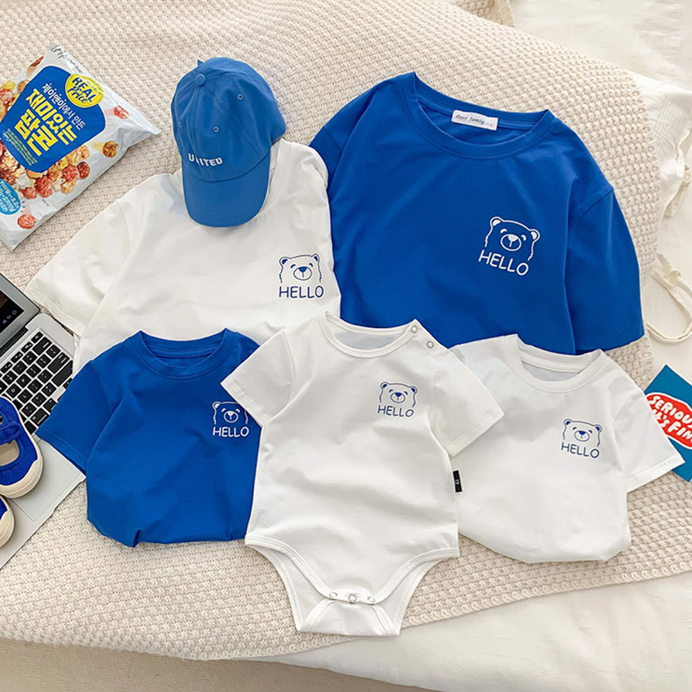 【F044】日系線條字母熊全家福親子短袖上衣(2色)