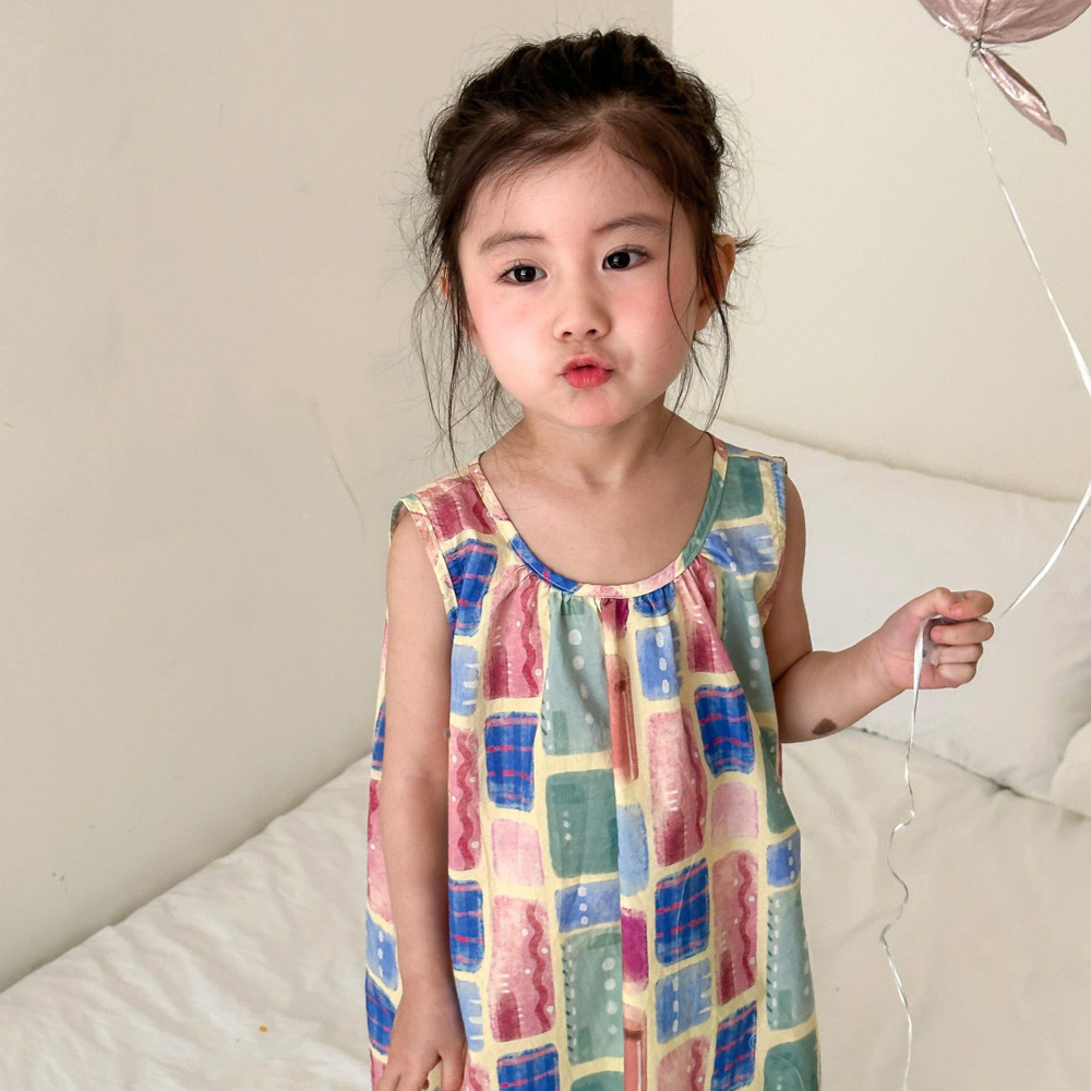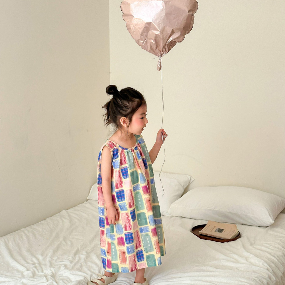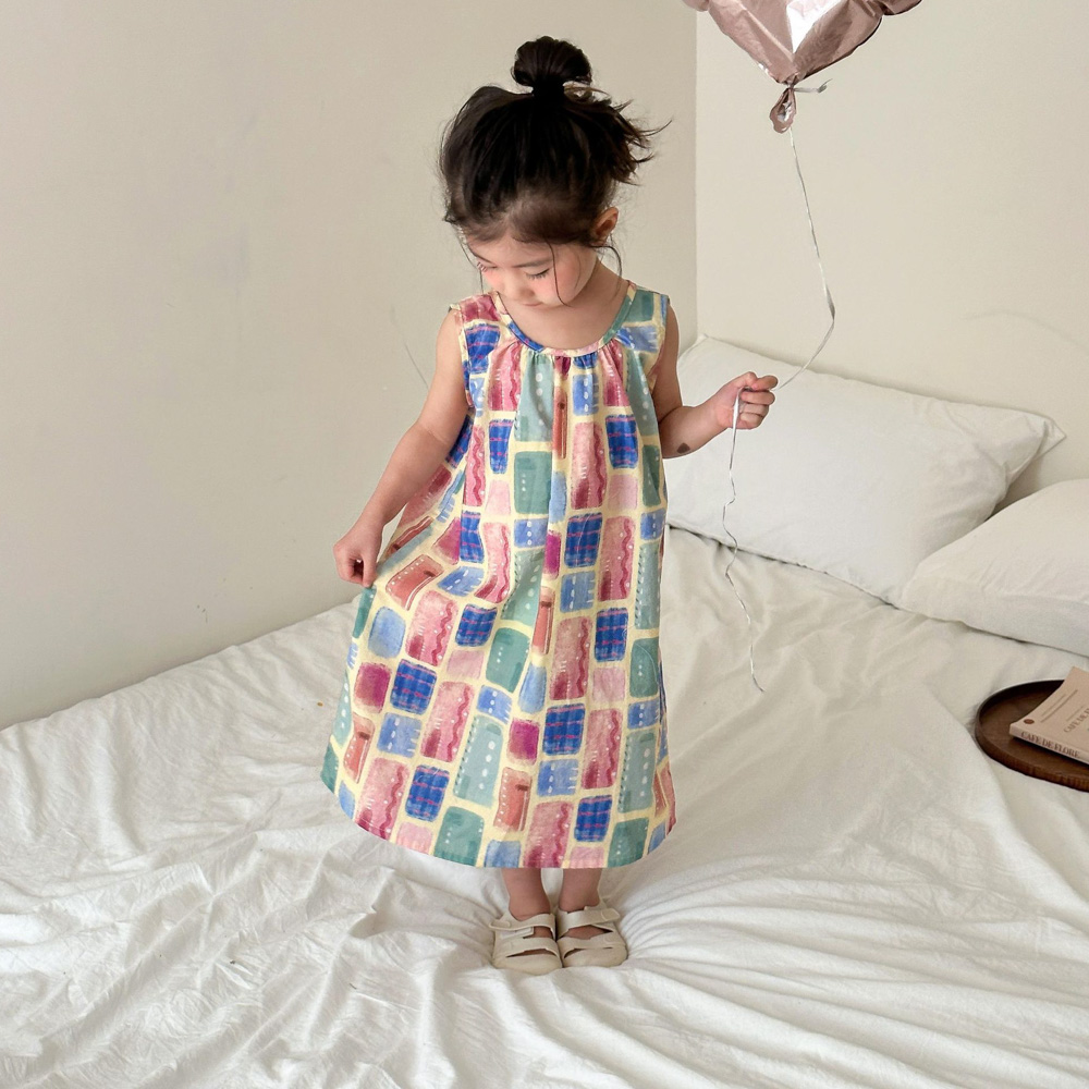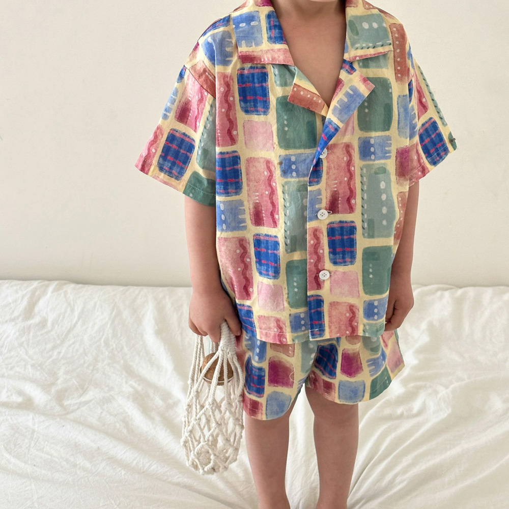 【BS132】韓版彩色方塊兄妹短袖洋裝套裝(1色)