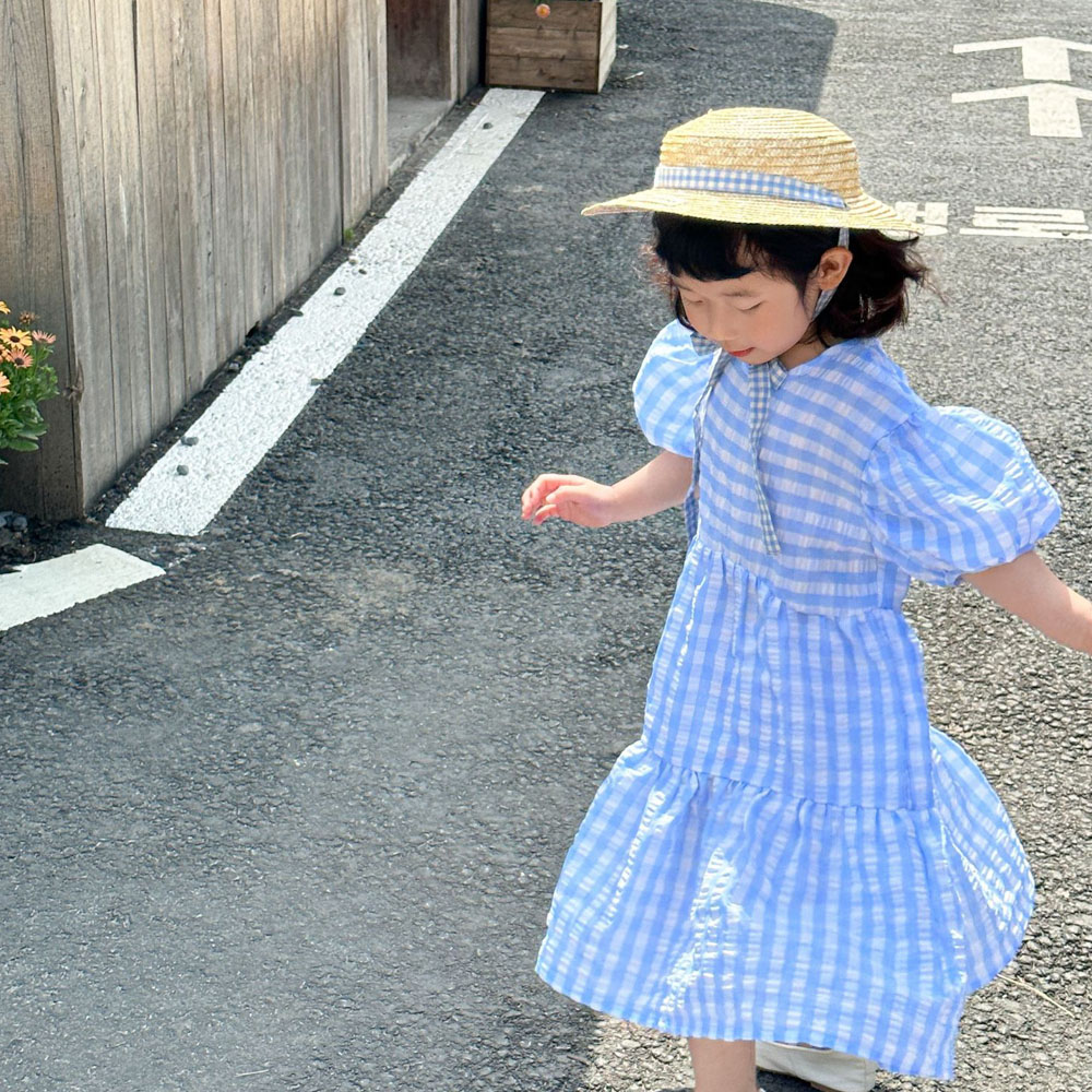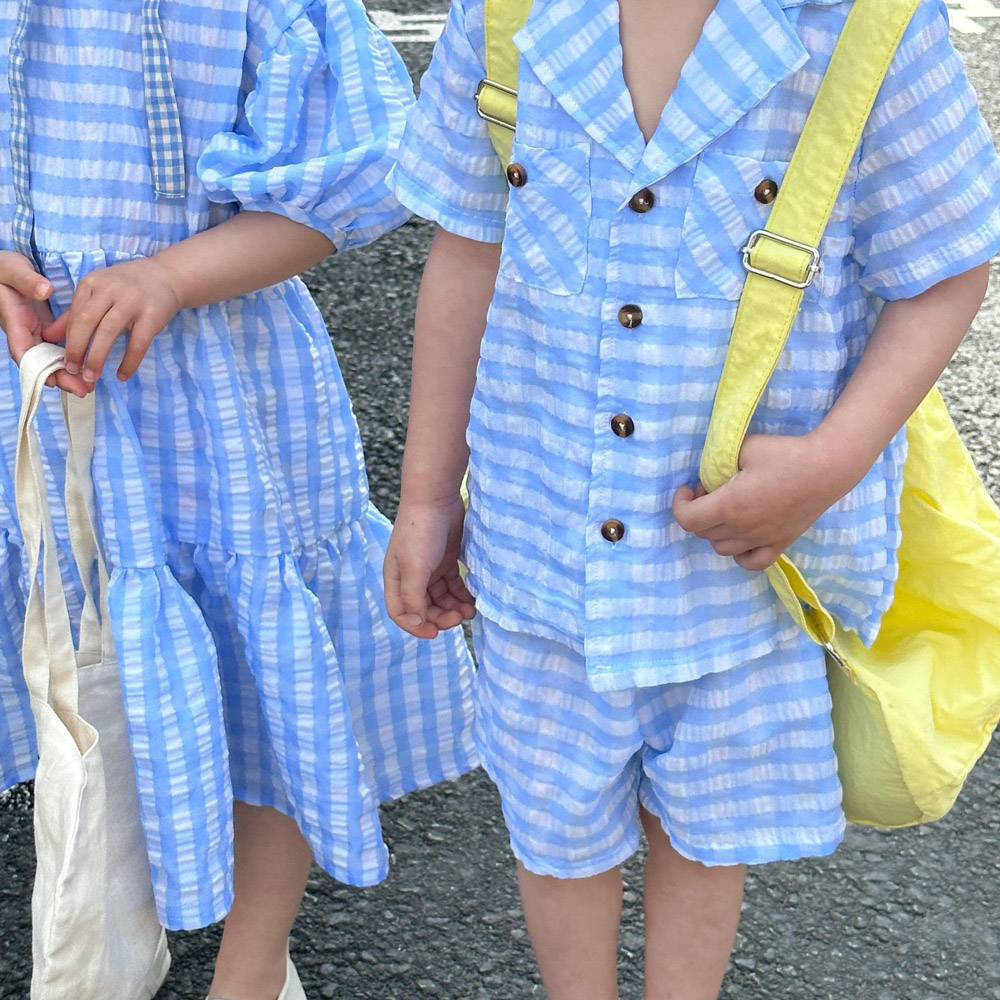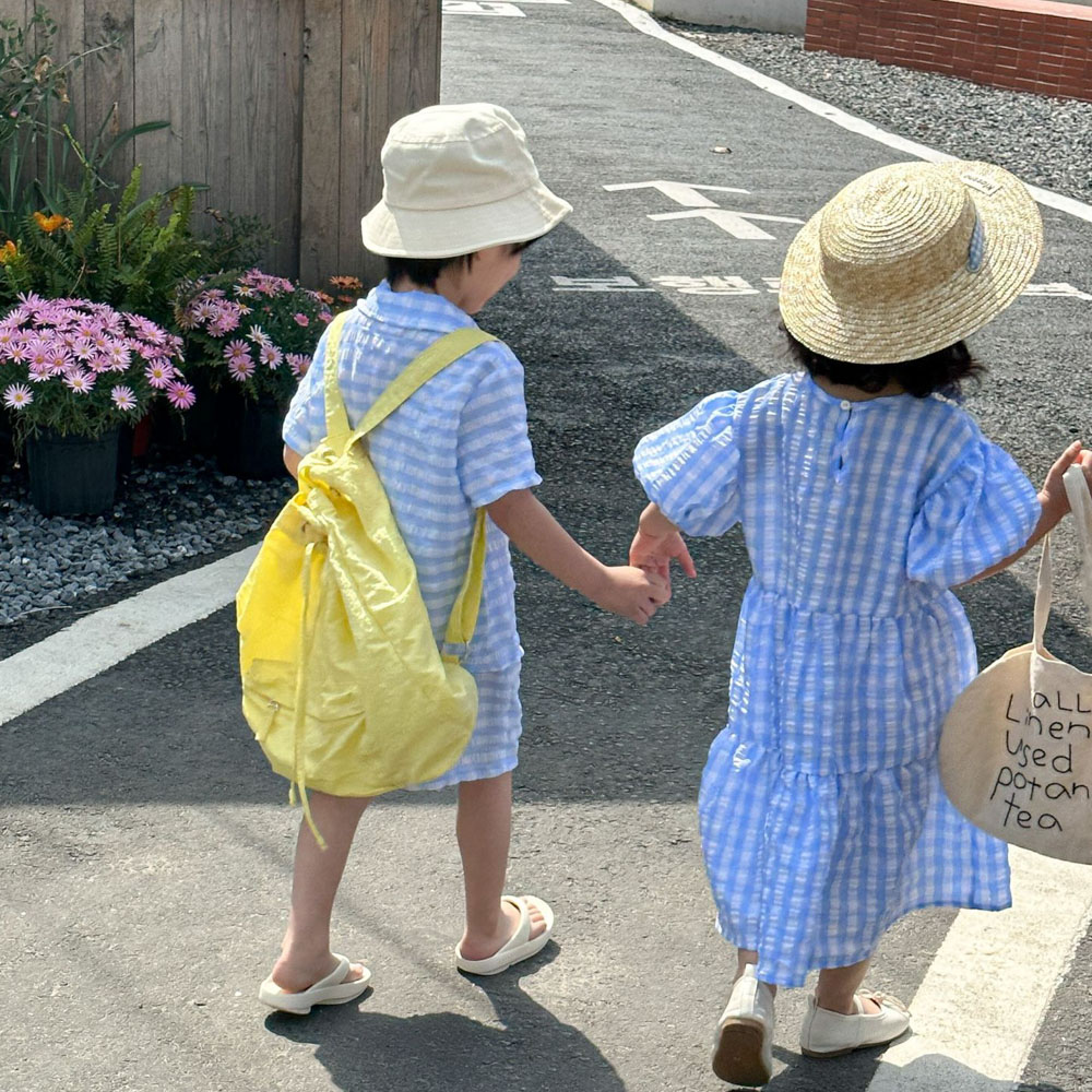 【BS133】韓版清新格紋兄妹短袖洋裝套裝(1色)