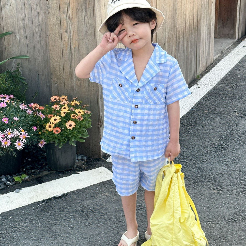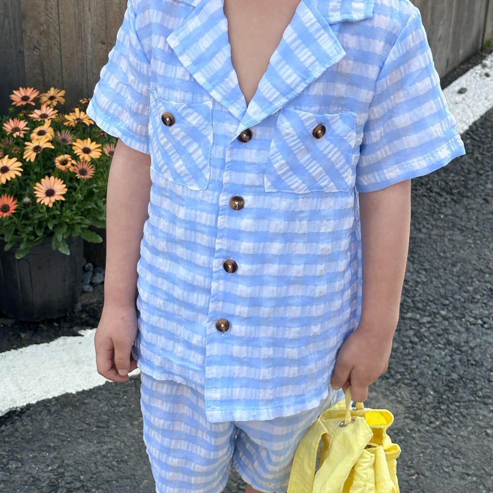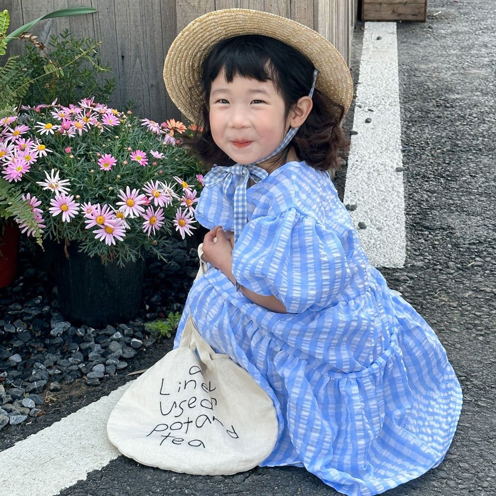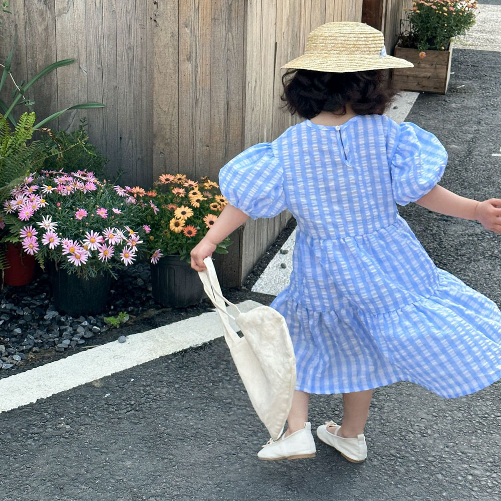 【BS133】韓版清新格紋兄妹短袖洋裝套裝(1色)