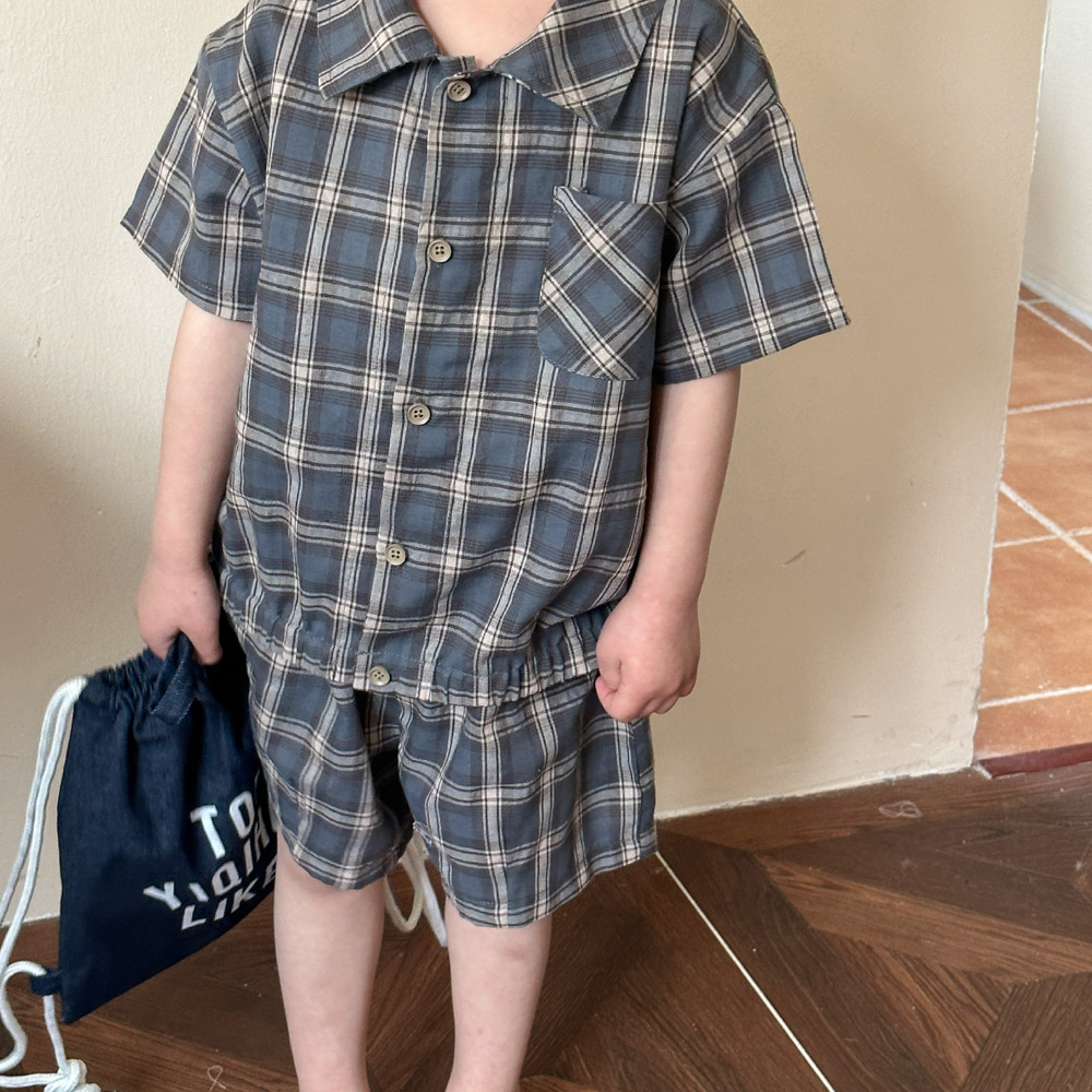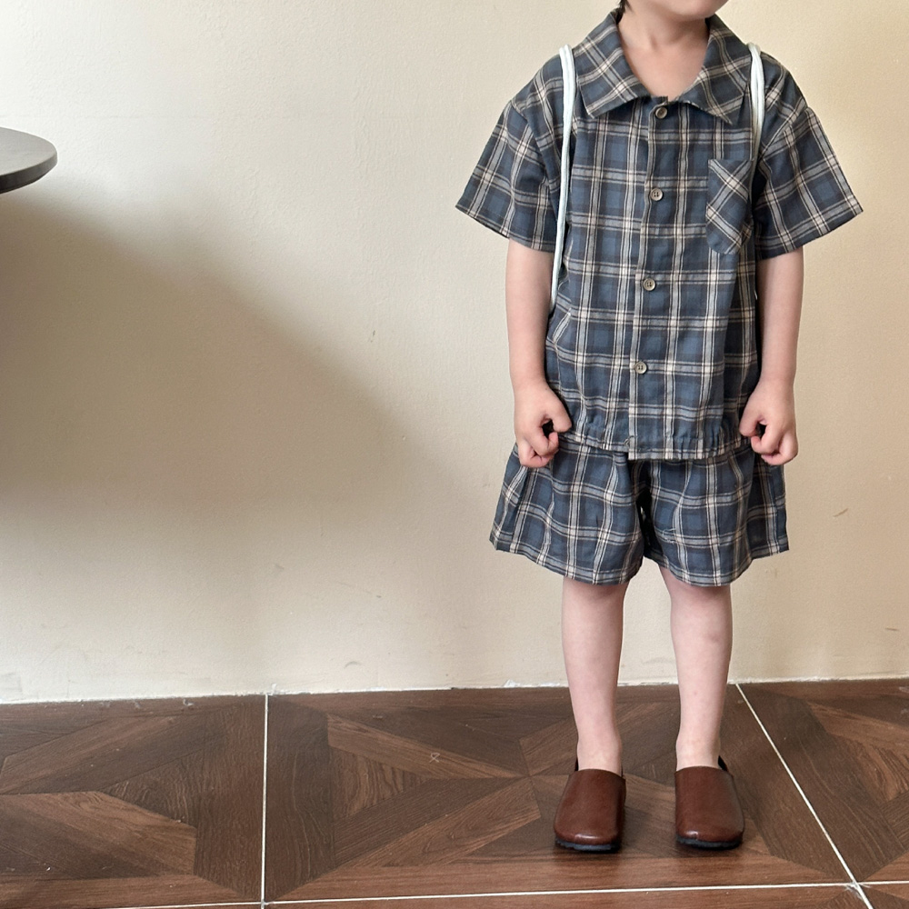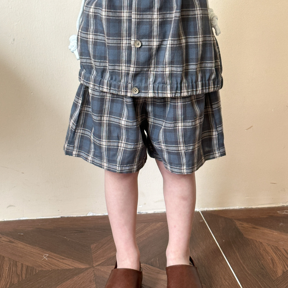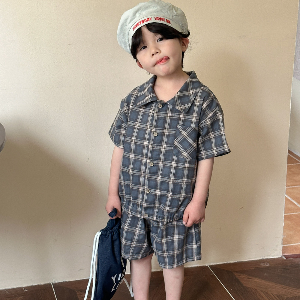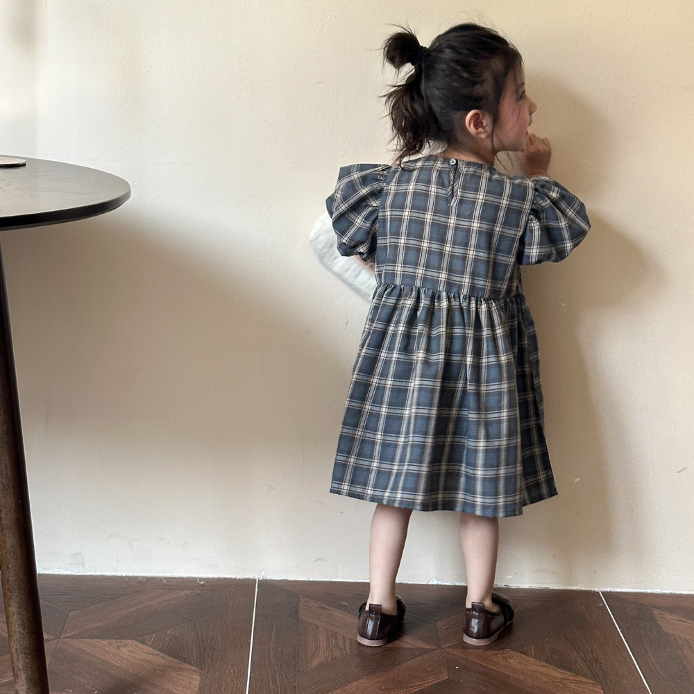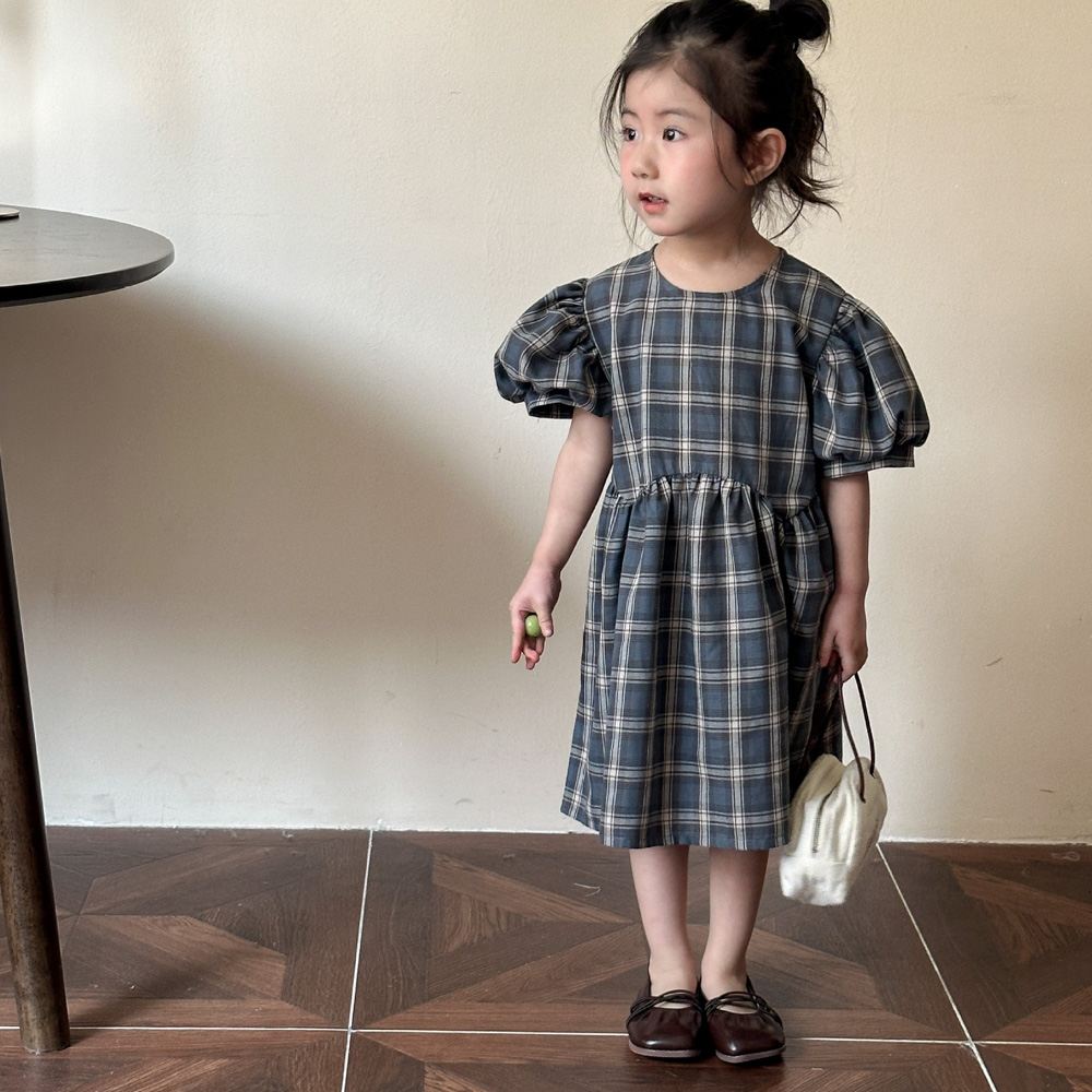 【BS135】韓版復古格紋兄妹短袖洋裝套裝(1色)