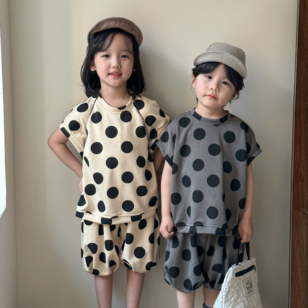 【BS139】韓版大點點兄妹短袖套裝(2色)