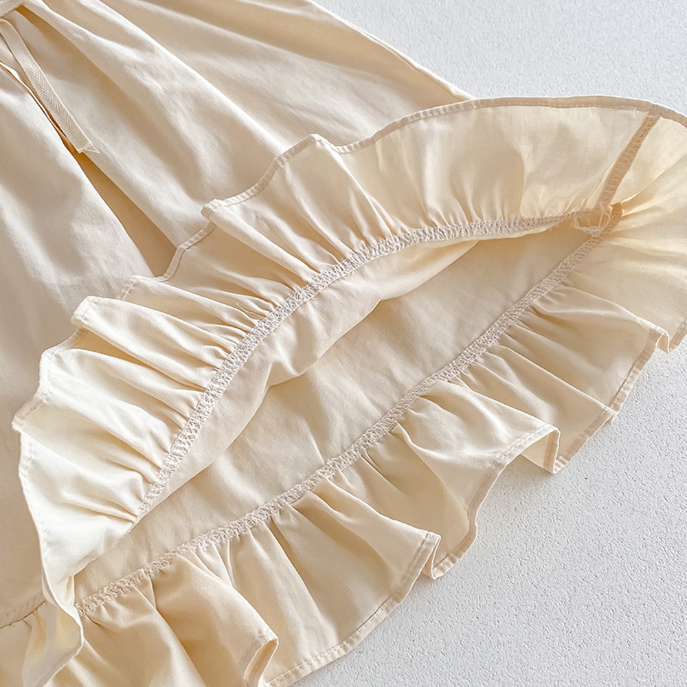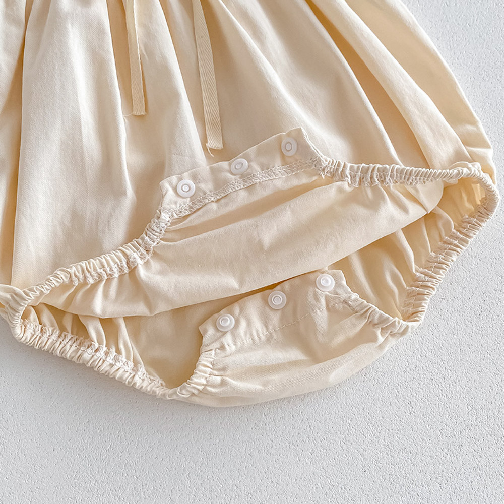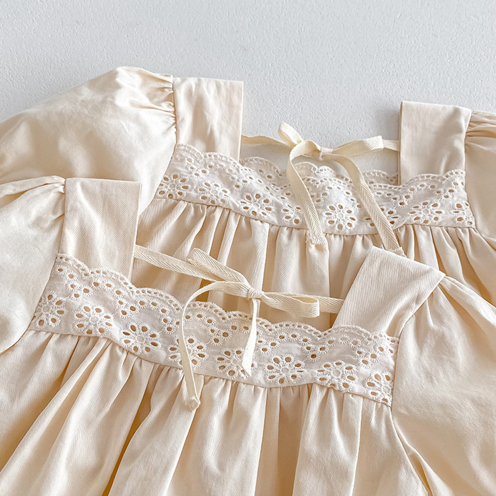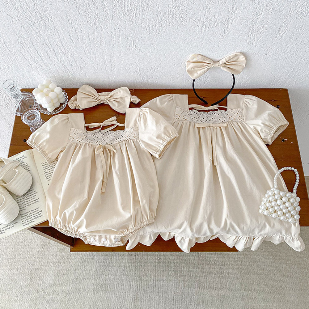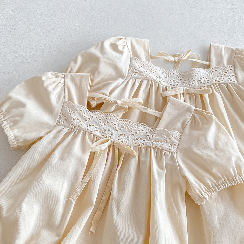 【BS157】韓版奶茶色鏤空蕾絲短袖包屁衣小洋裝(送髮箍)(1色)