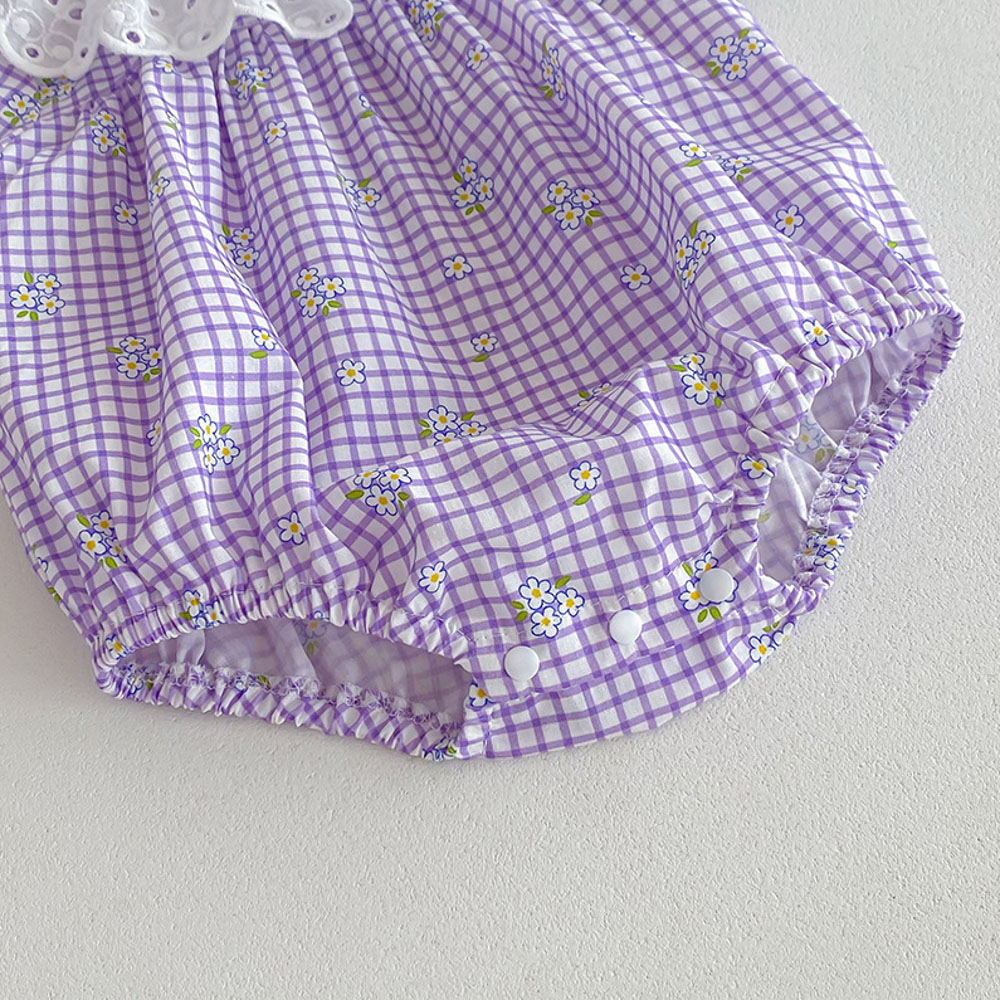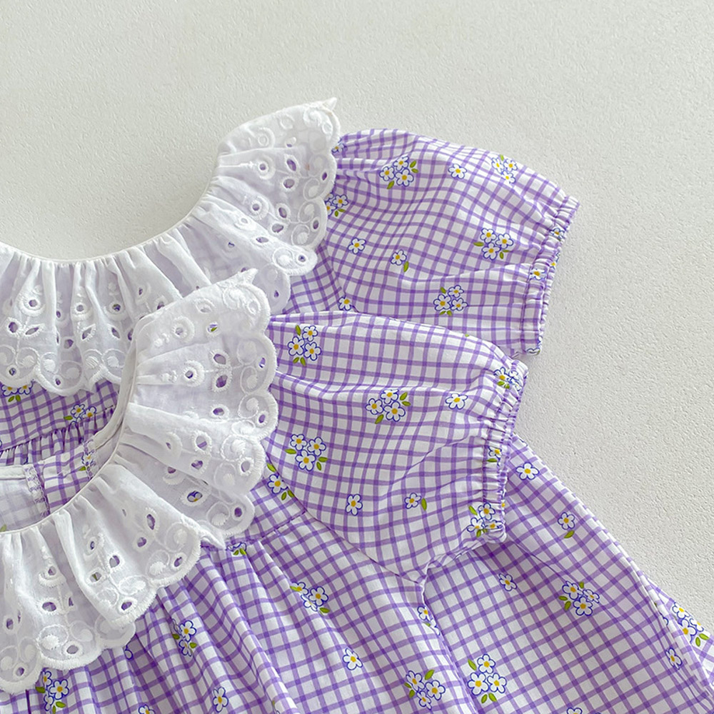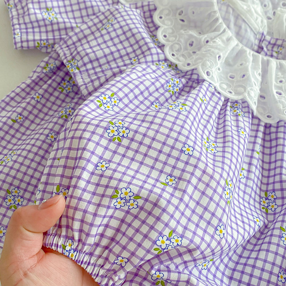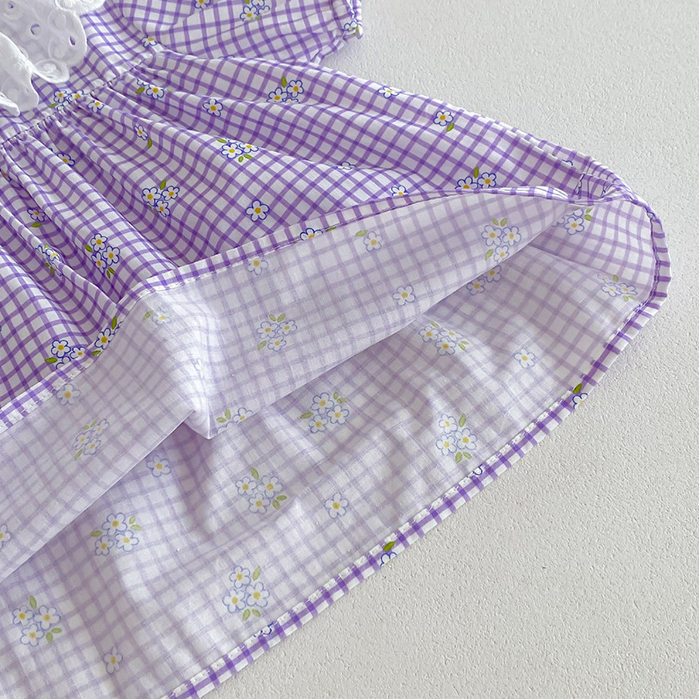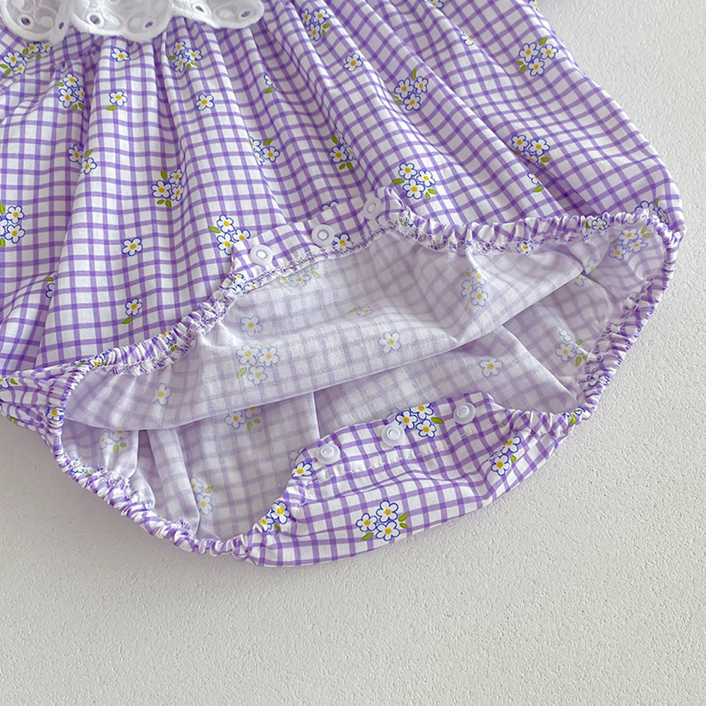 【BS164】韓版蕾絲圓領紫羅蘭格紋短袖包屁衣套裝(送髮箍)(1色)