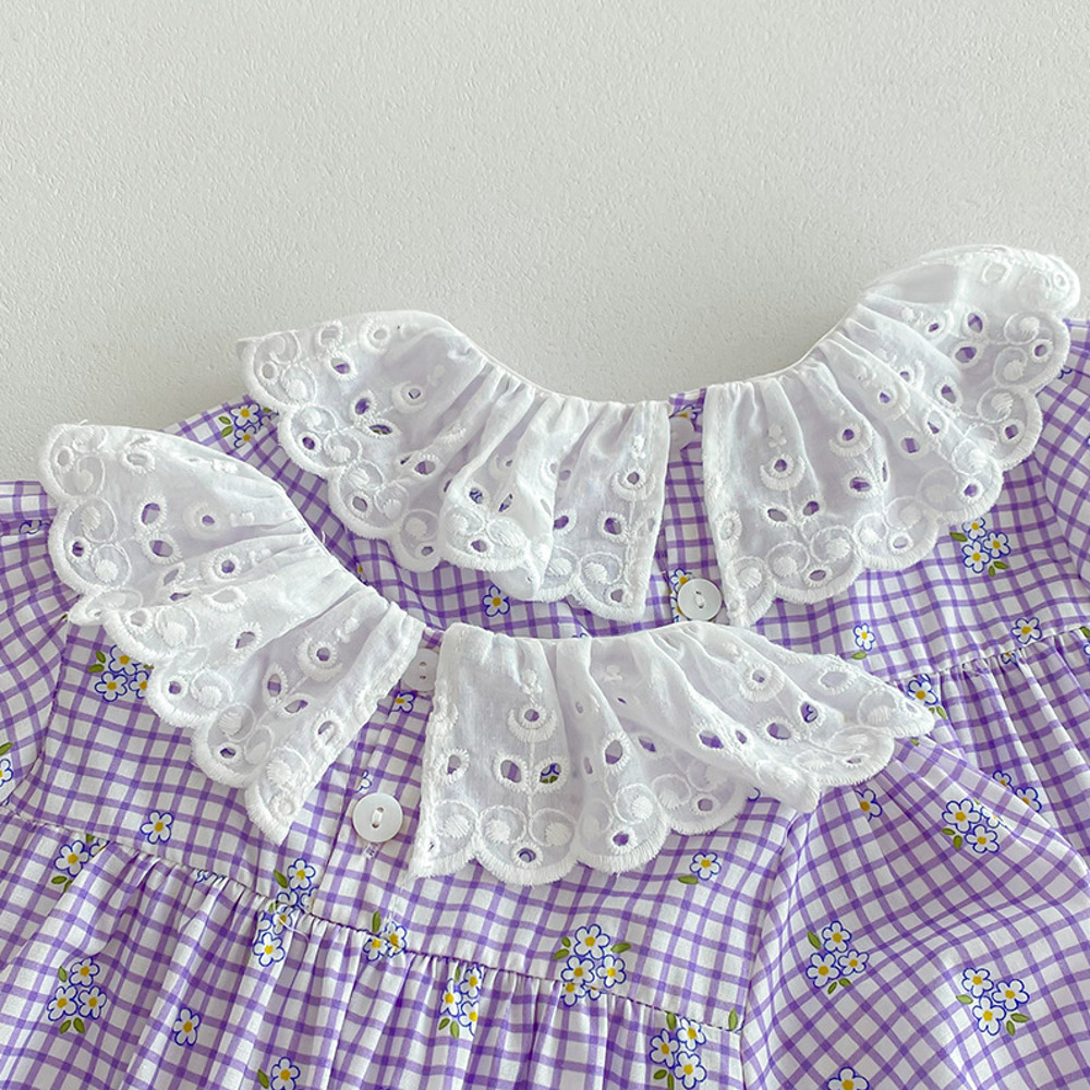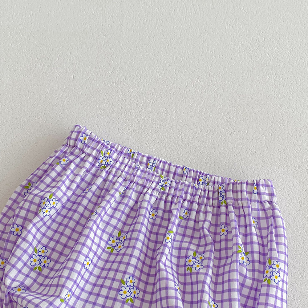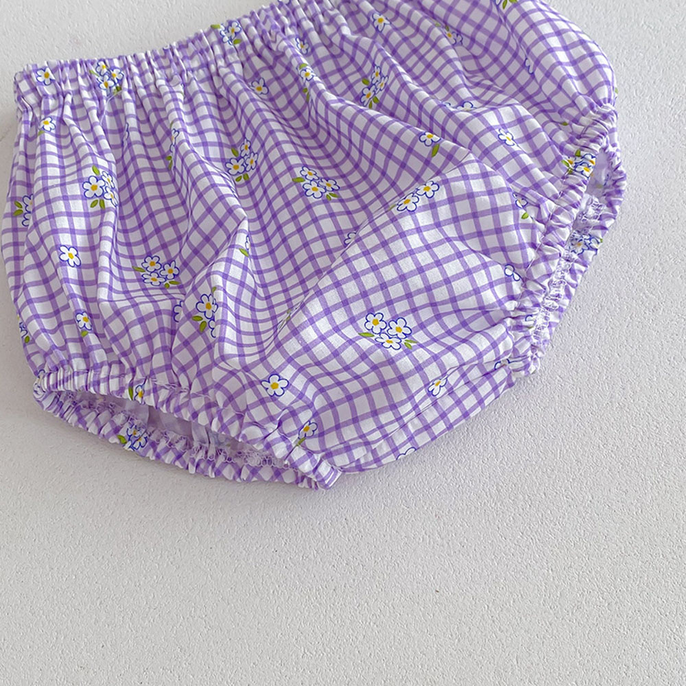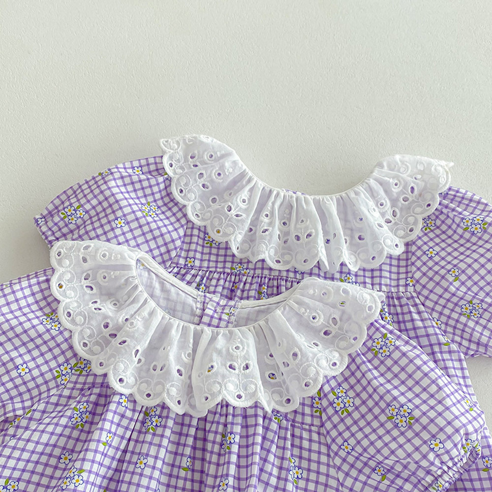 【BS164】韓版蕾絲圓領紫羅蘭格紋短袖包屁衣套裝(送髮箍)(1色)