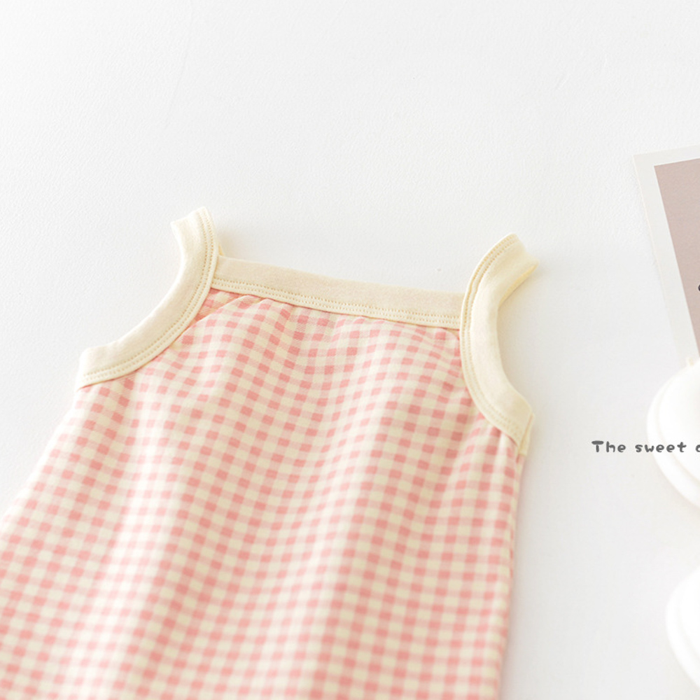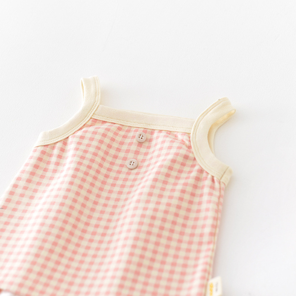 【BE005】日系小方格兩件式無袖短褲套裝(2色)