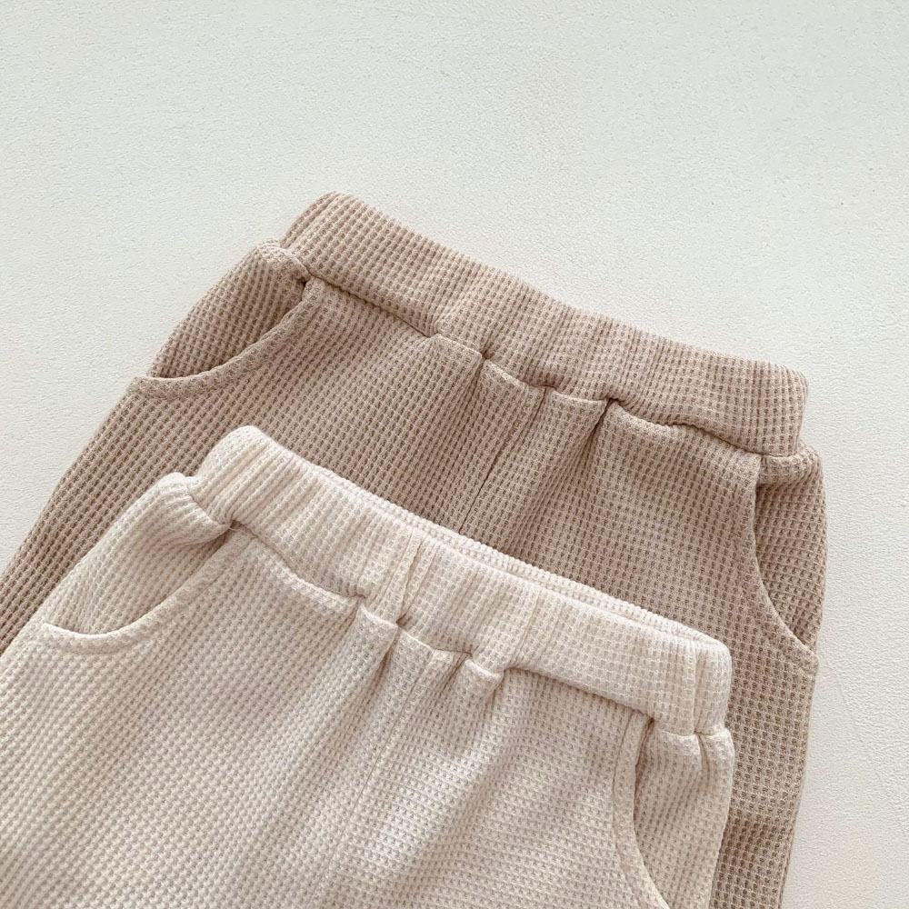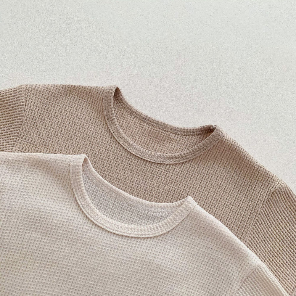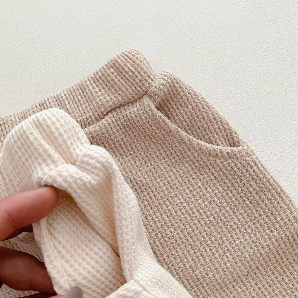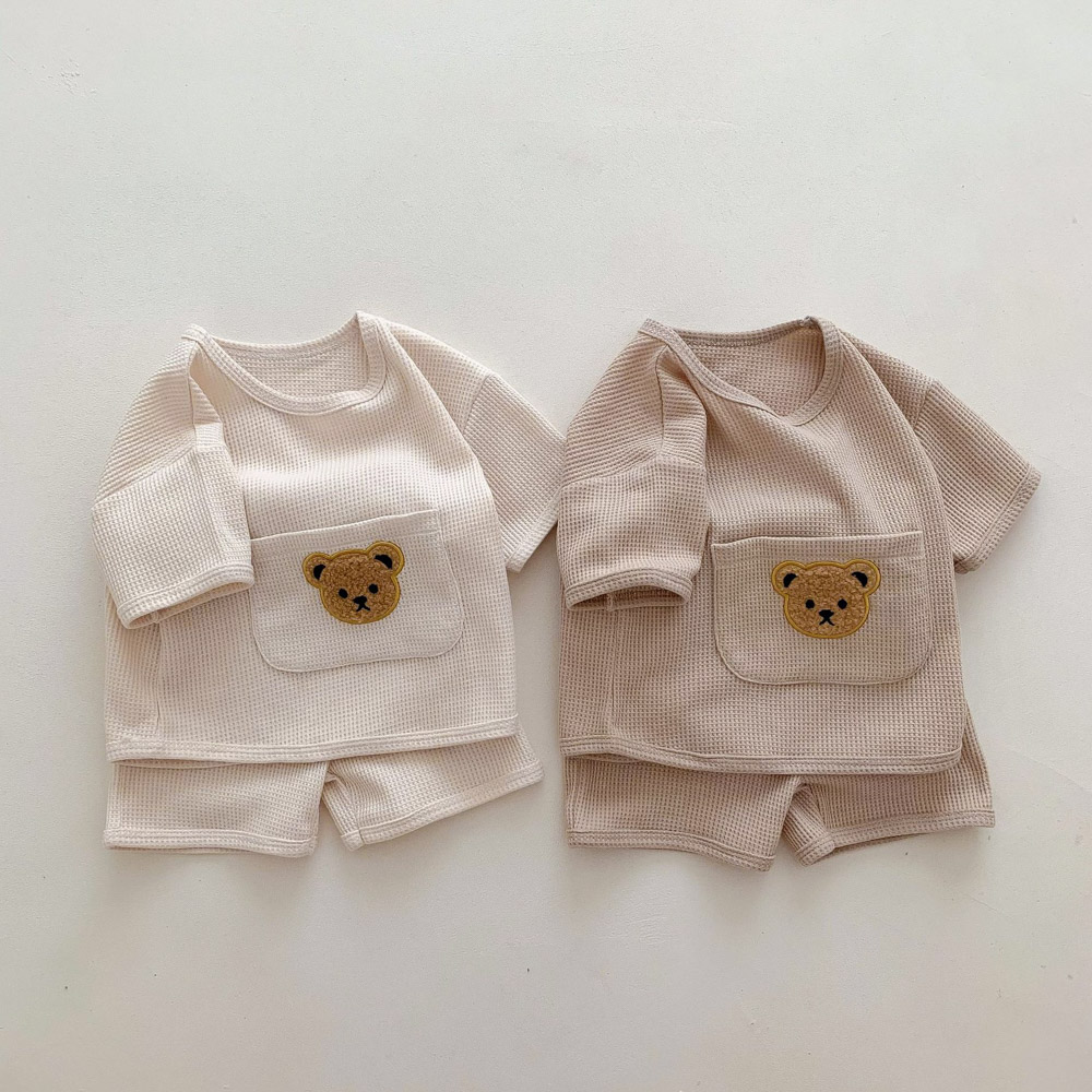 【BE011】日系口袋熊華夫格紋兩件式短袖短褲套裝(2色)