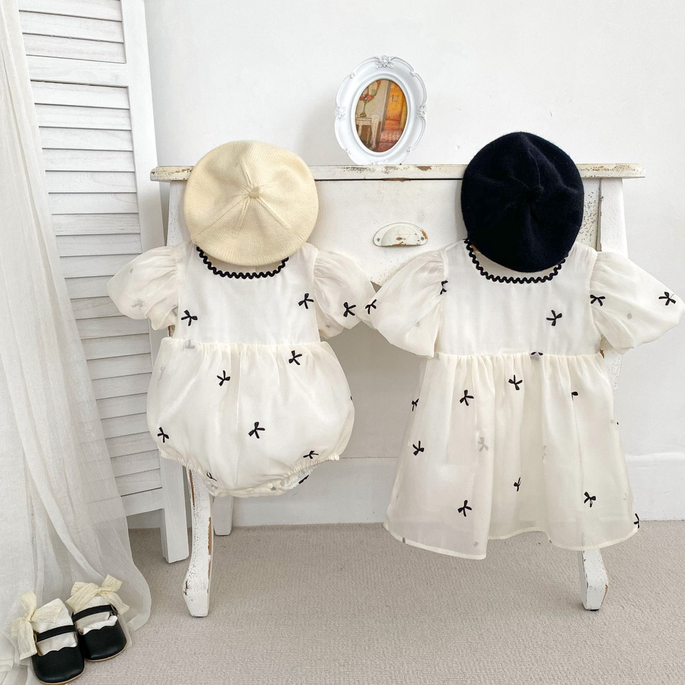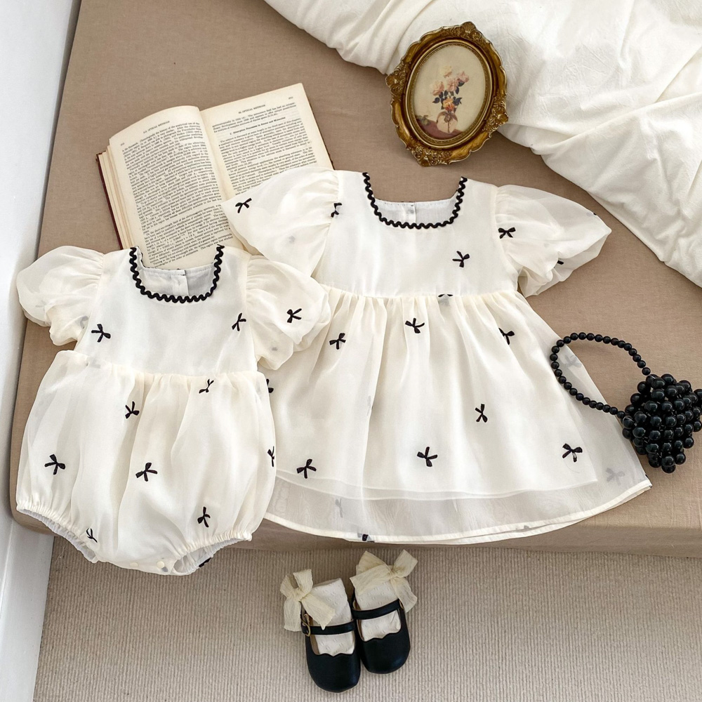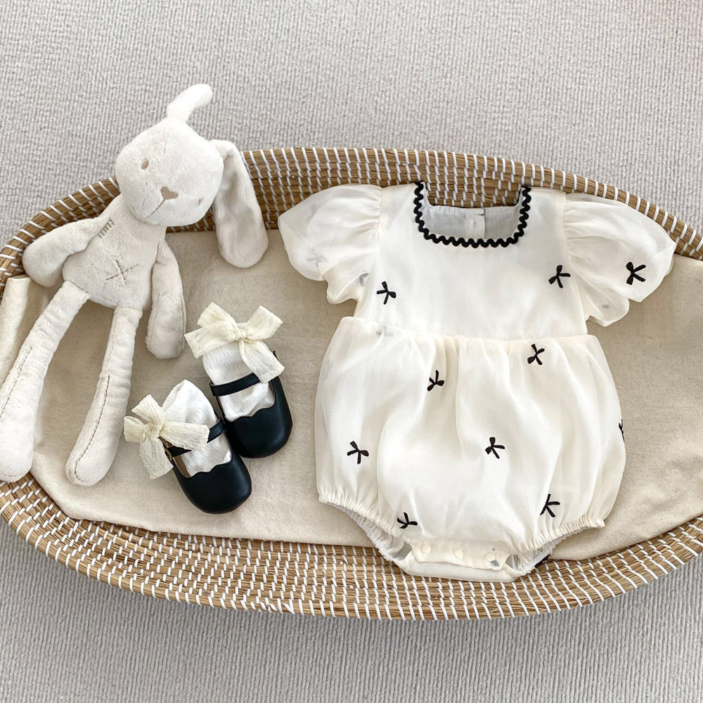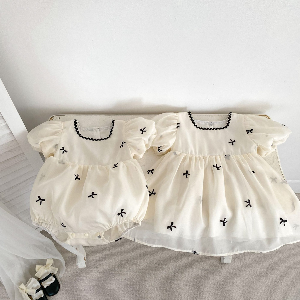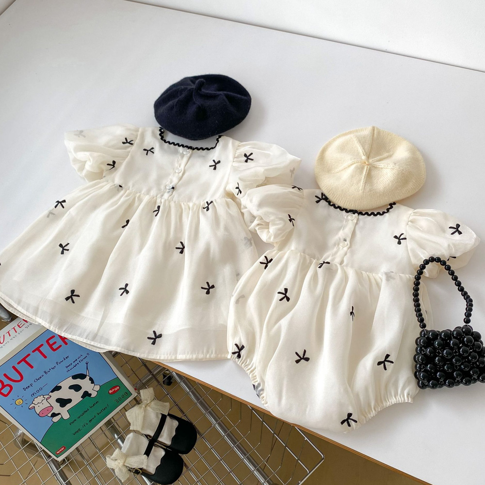 【BS176】韓版刺繡小蝴蝶結短袖包屁衣小洋裝(1色)