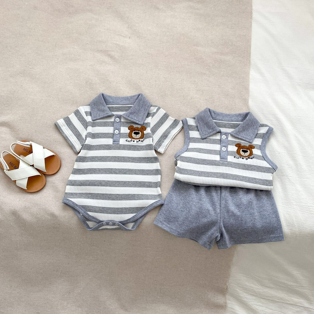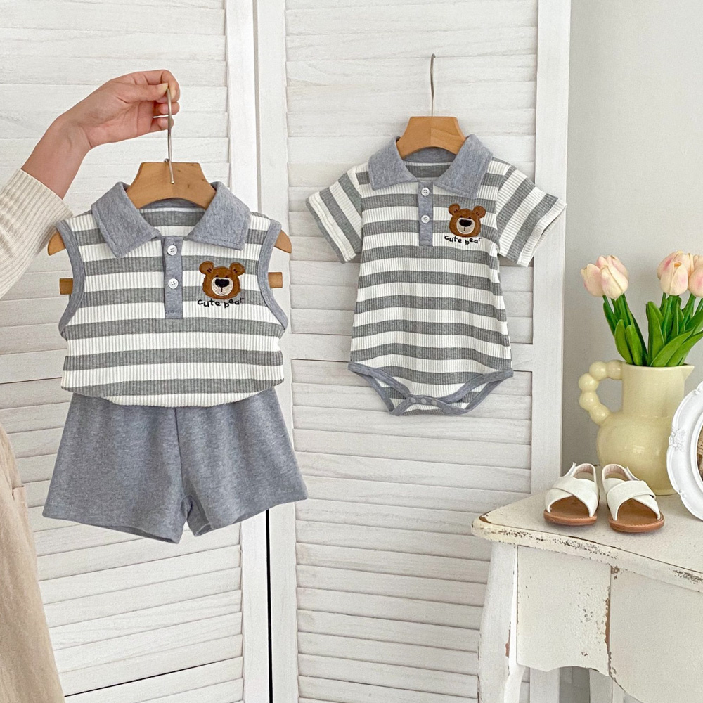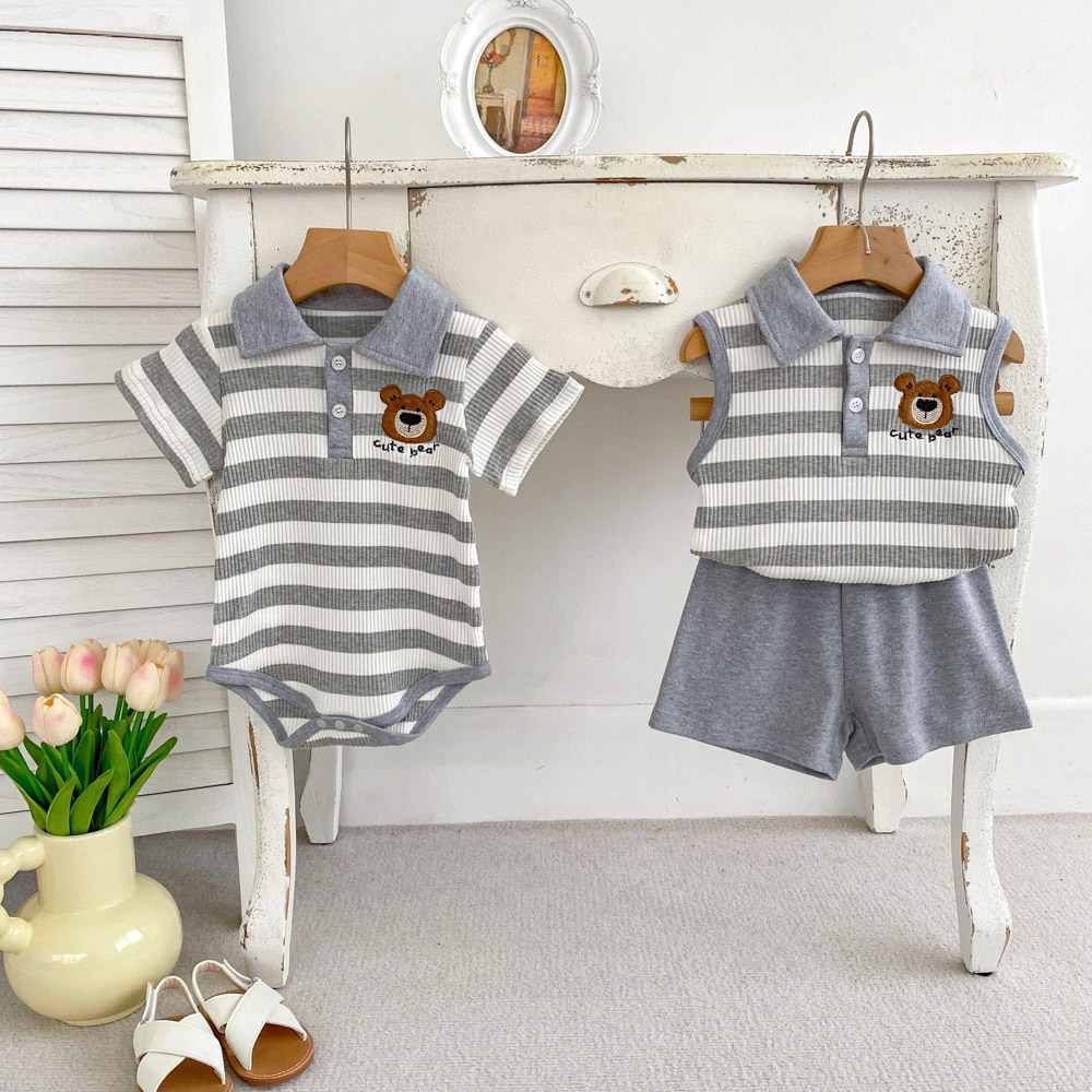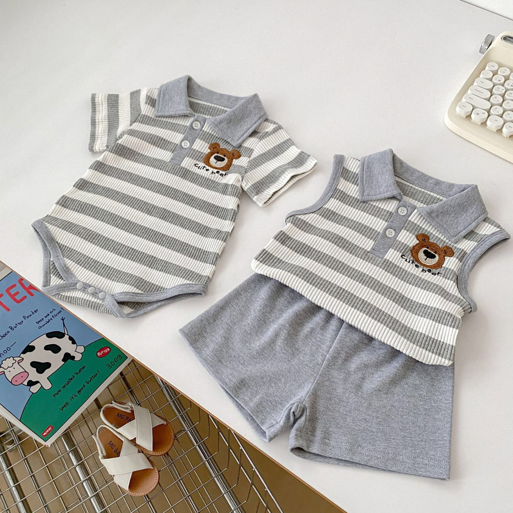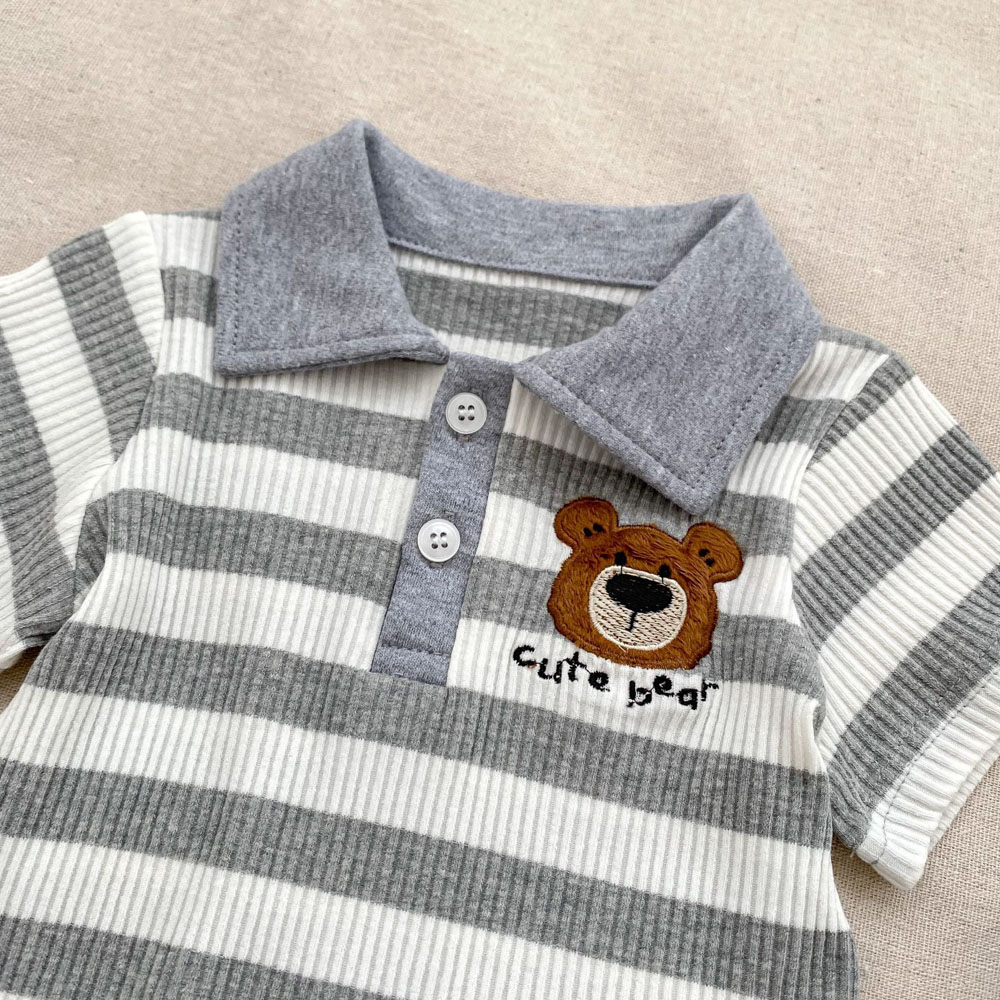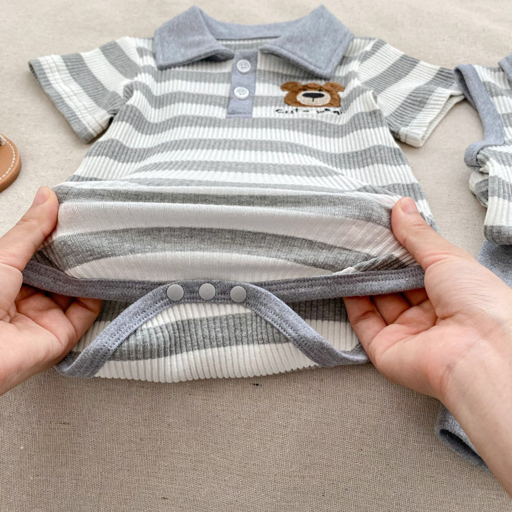 【BS179】韓版POLO條紋熊兄妹短袖包屁套裝(1色)
