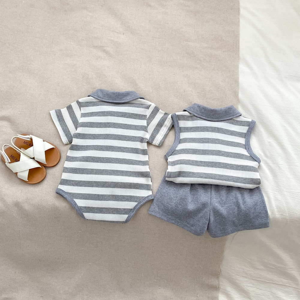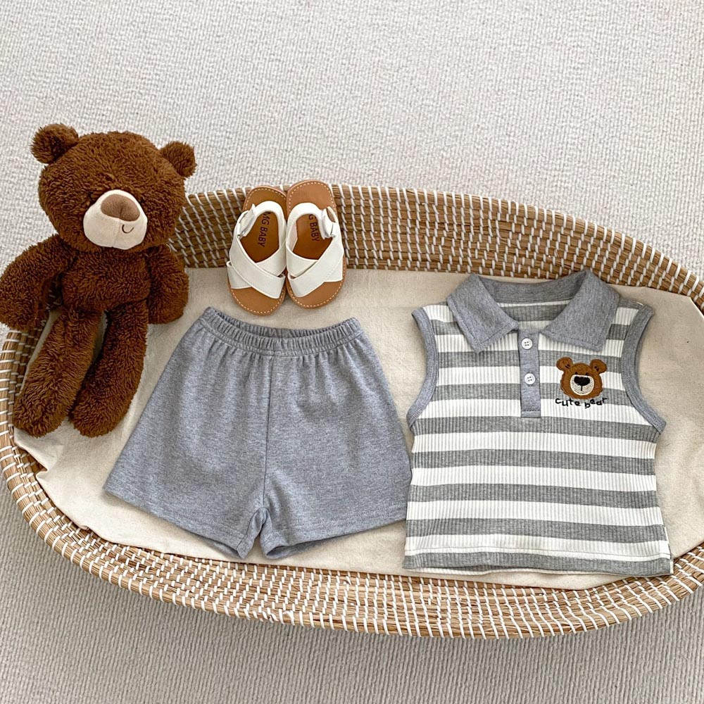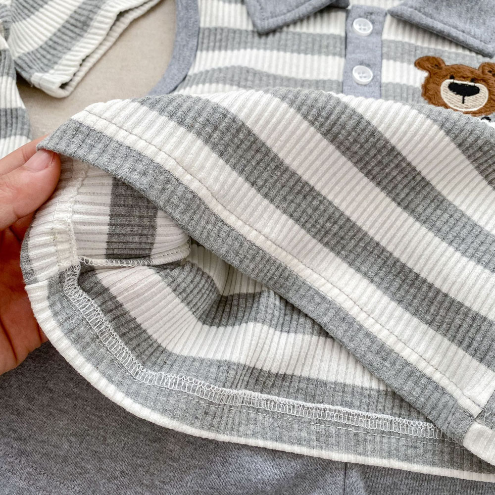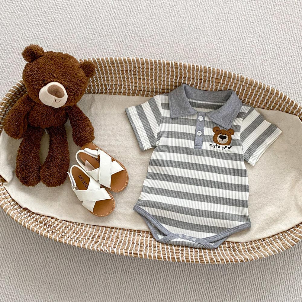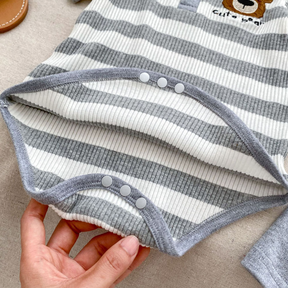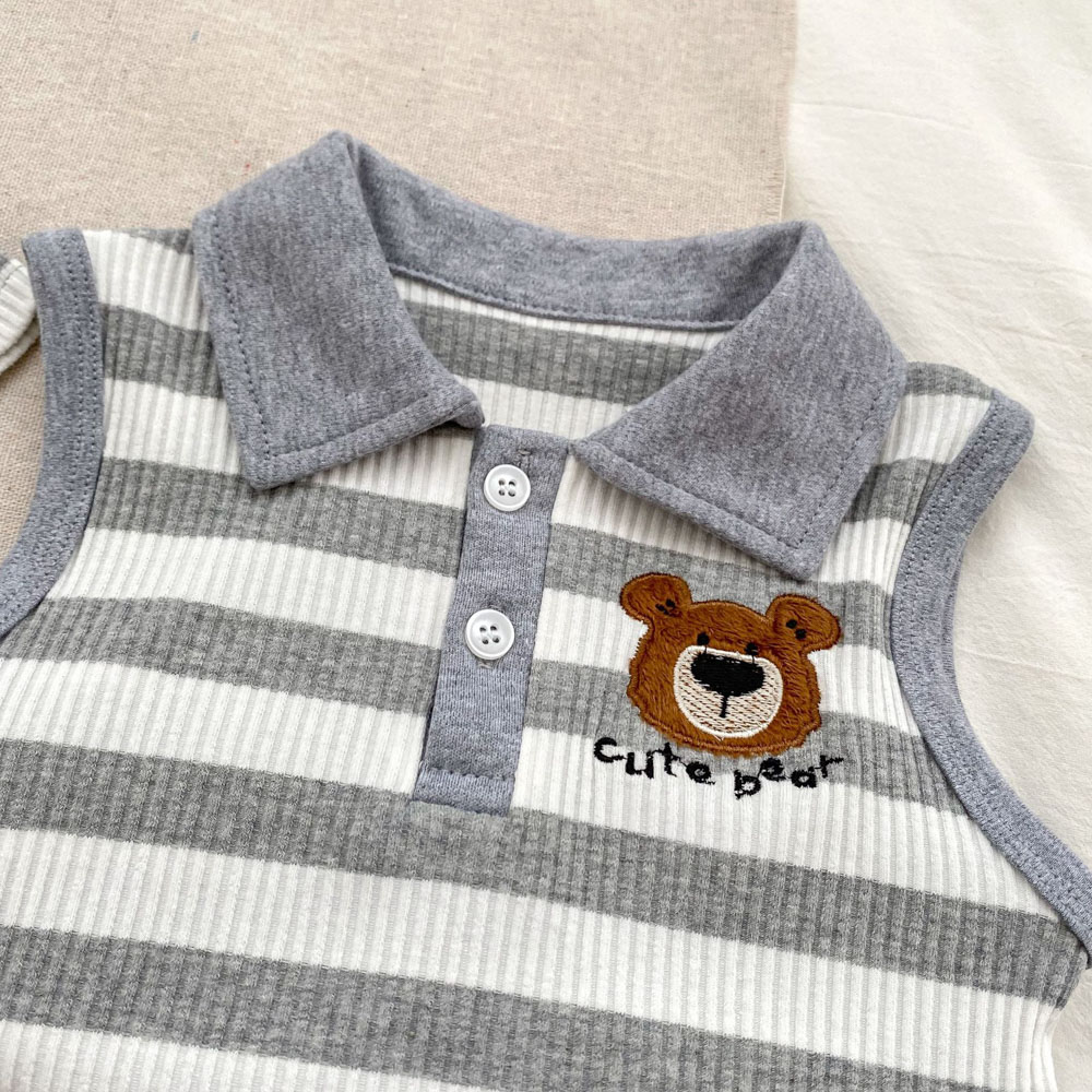 【BS179】韓版POLO條紋熊兄妹短袖包屁套裝(1色)