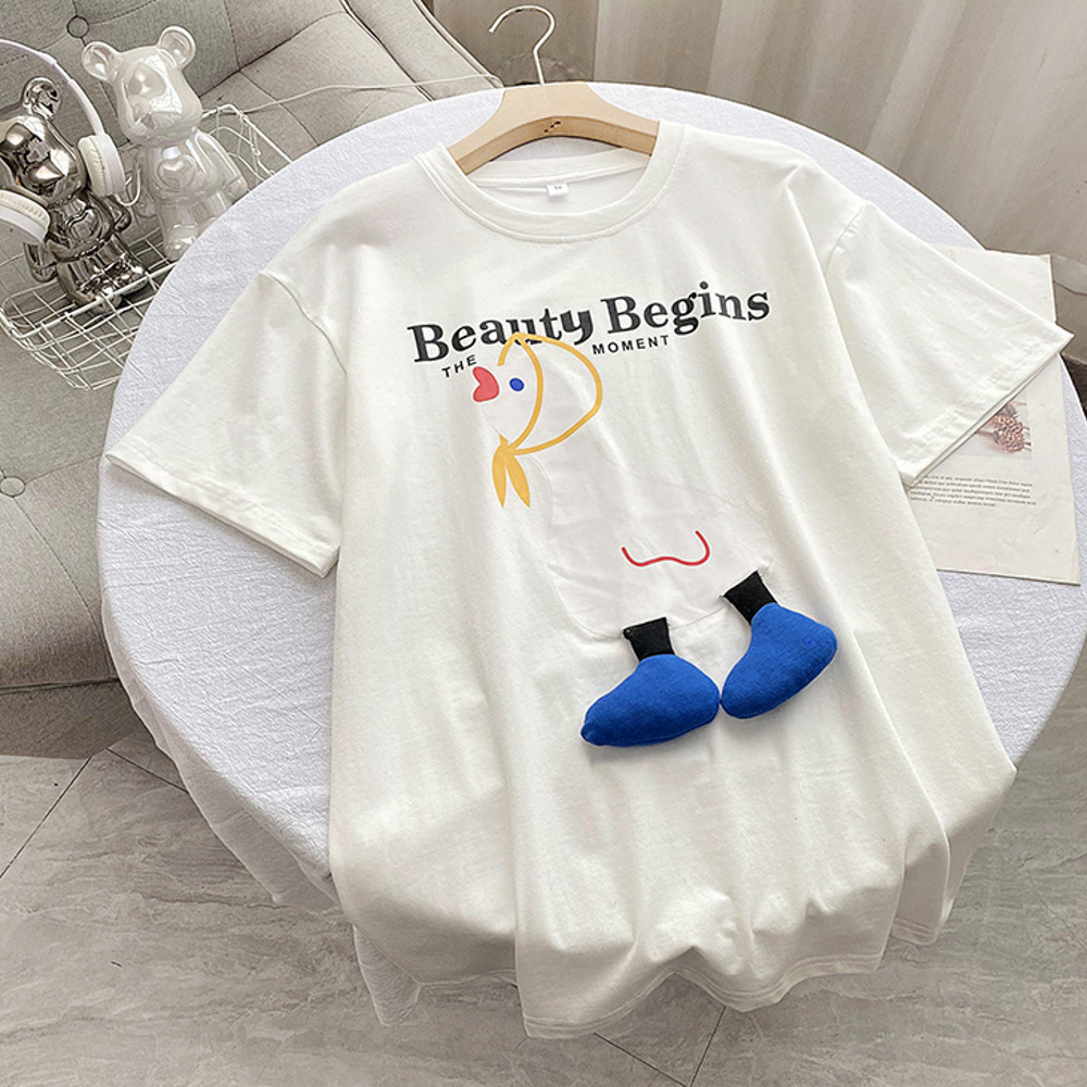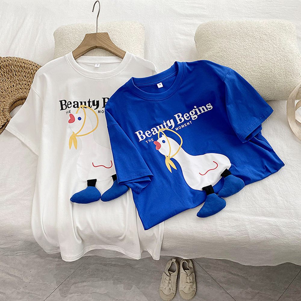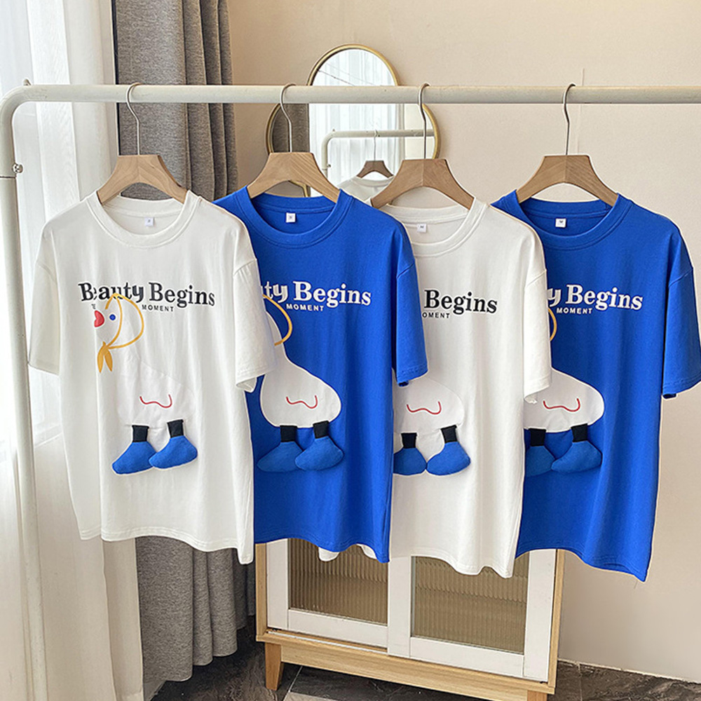 【F055】日系立體小鴨全家福親子短袖上衣(2色)