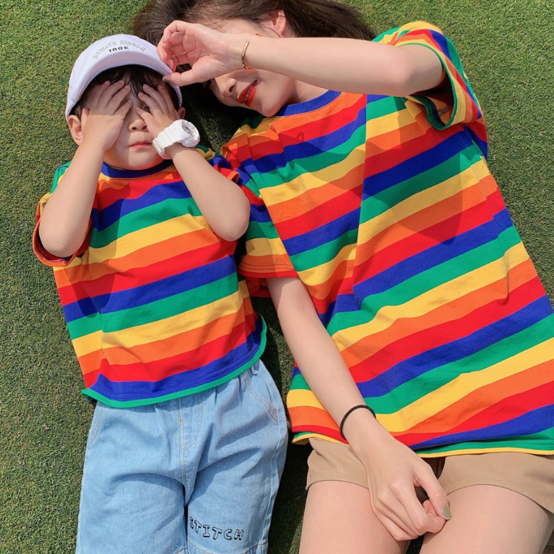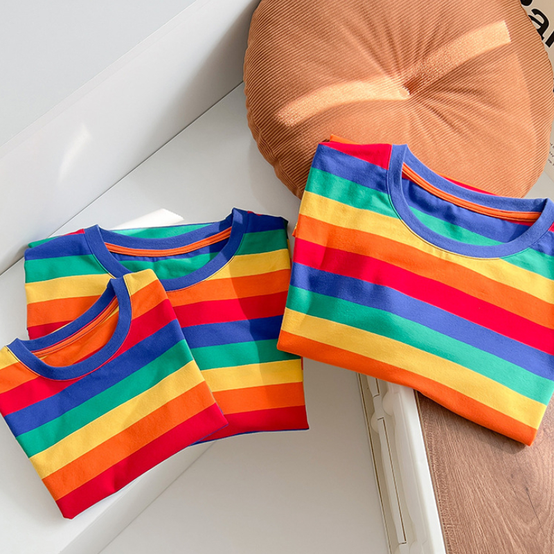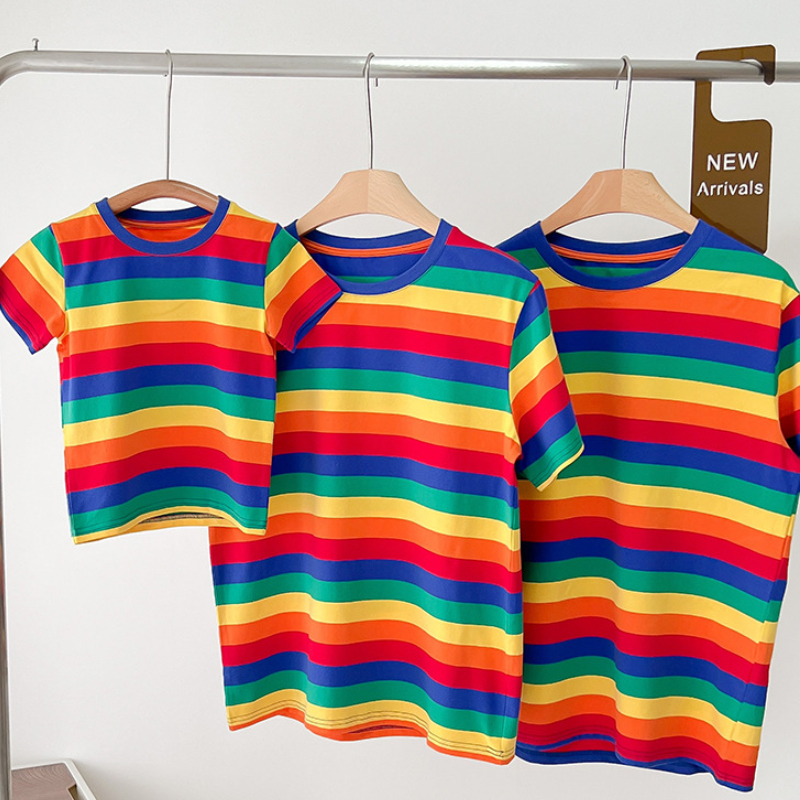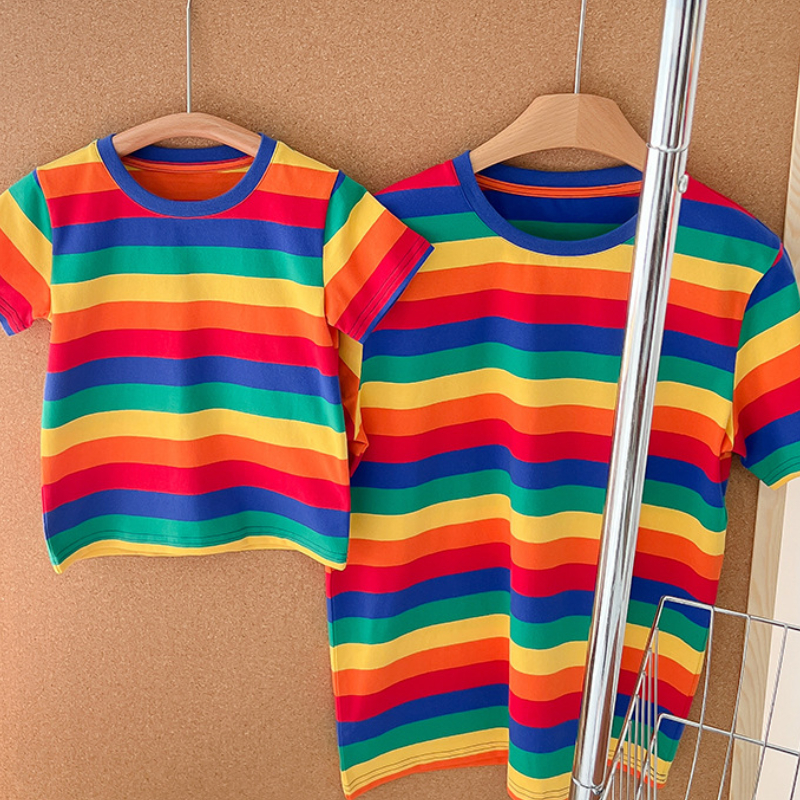 【F060】日系繽紛彩虹全家福親子短袖上衣(1色)
