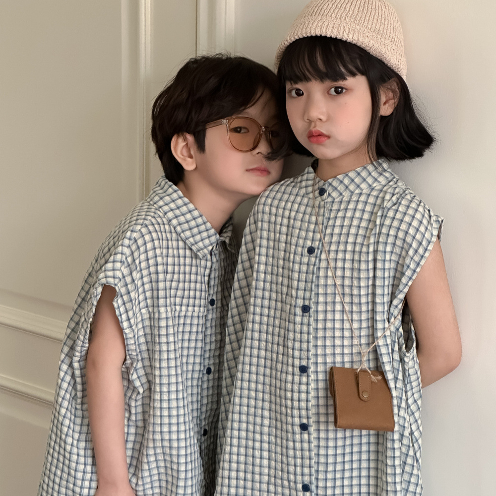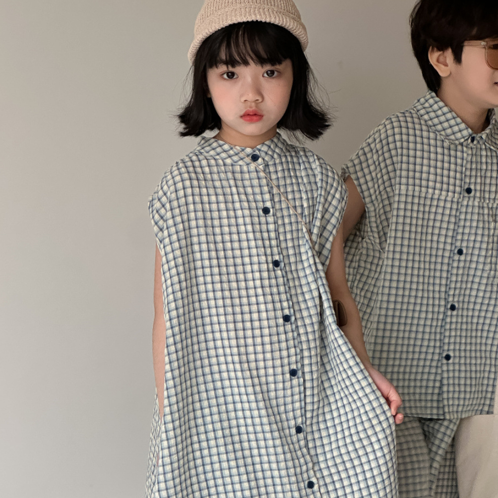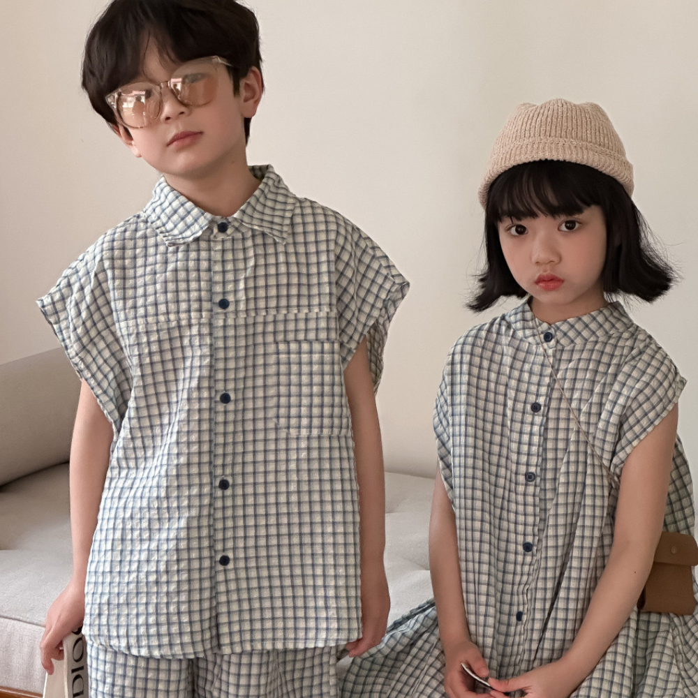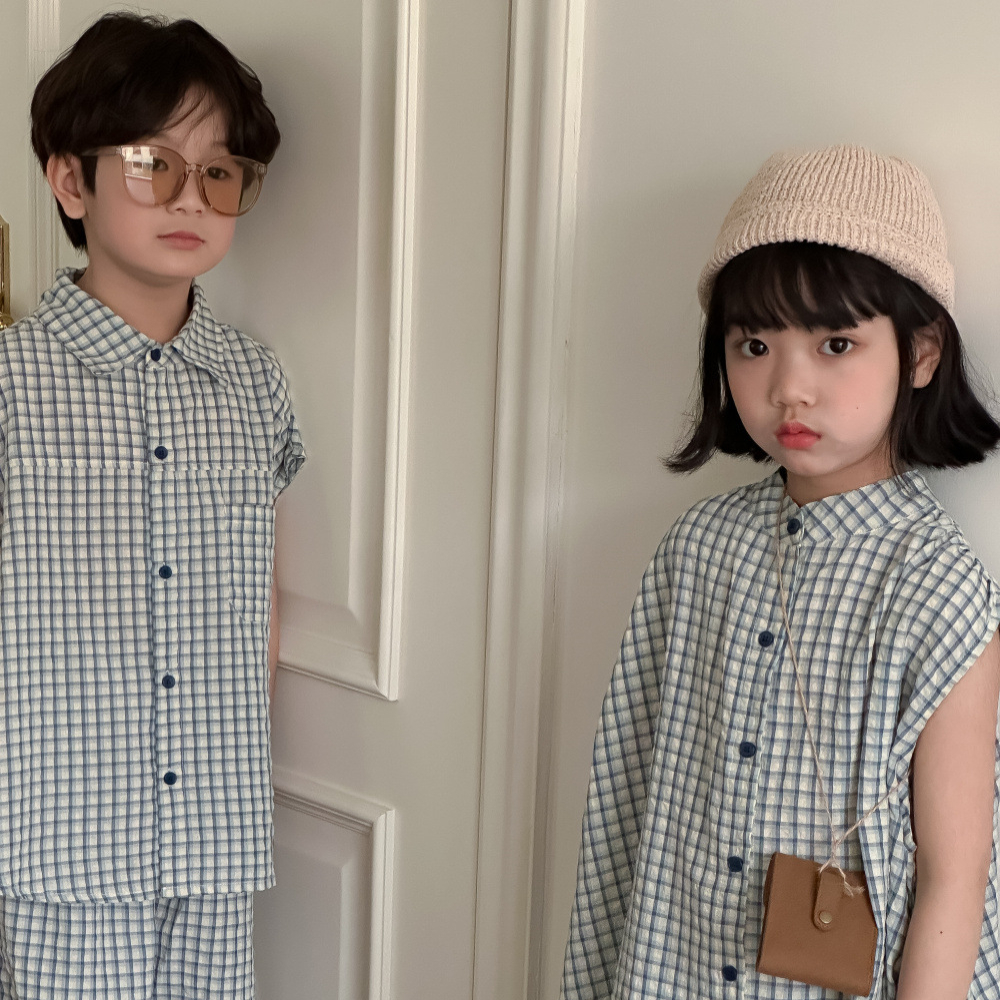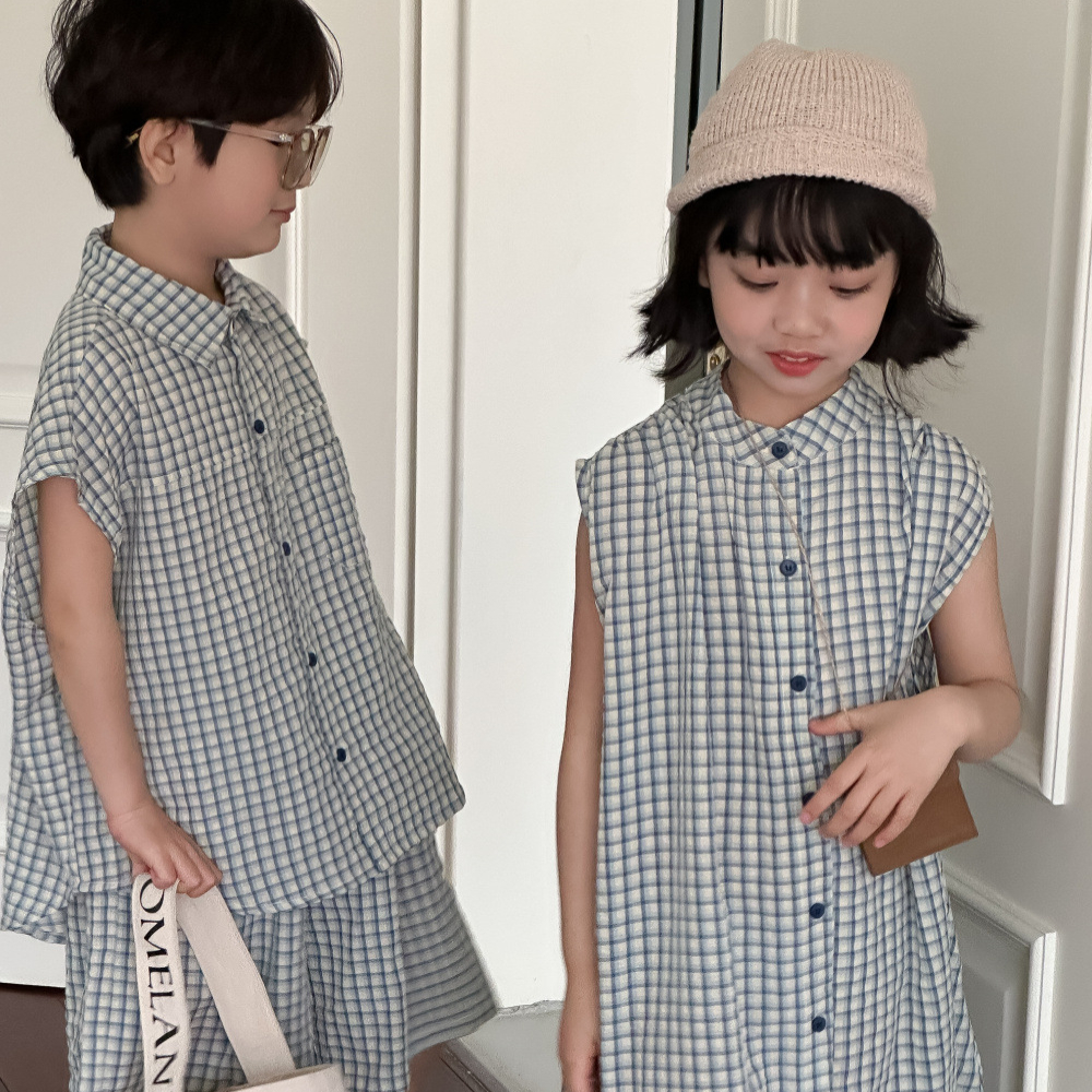 (缺貨)【BS201】韓版小方格兄妹短袖套裝(1色)