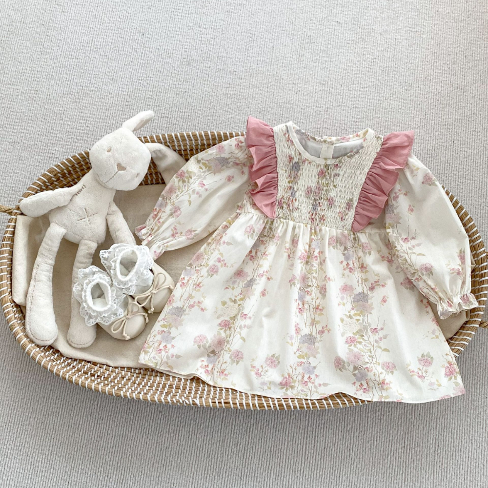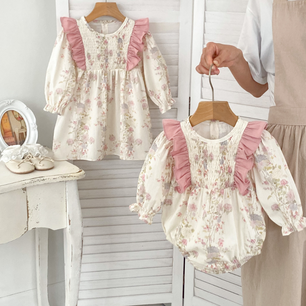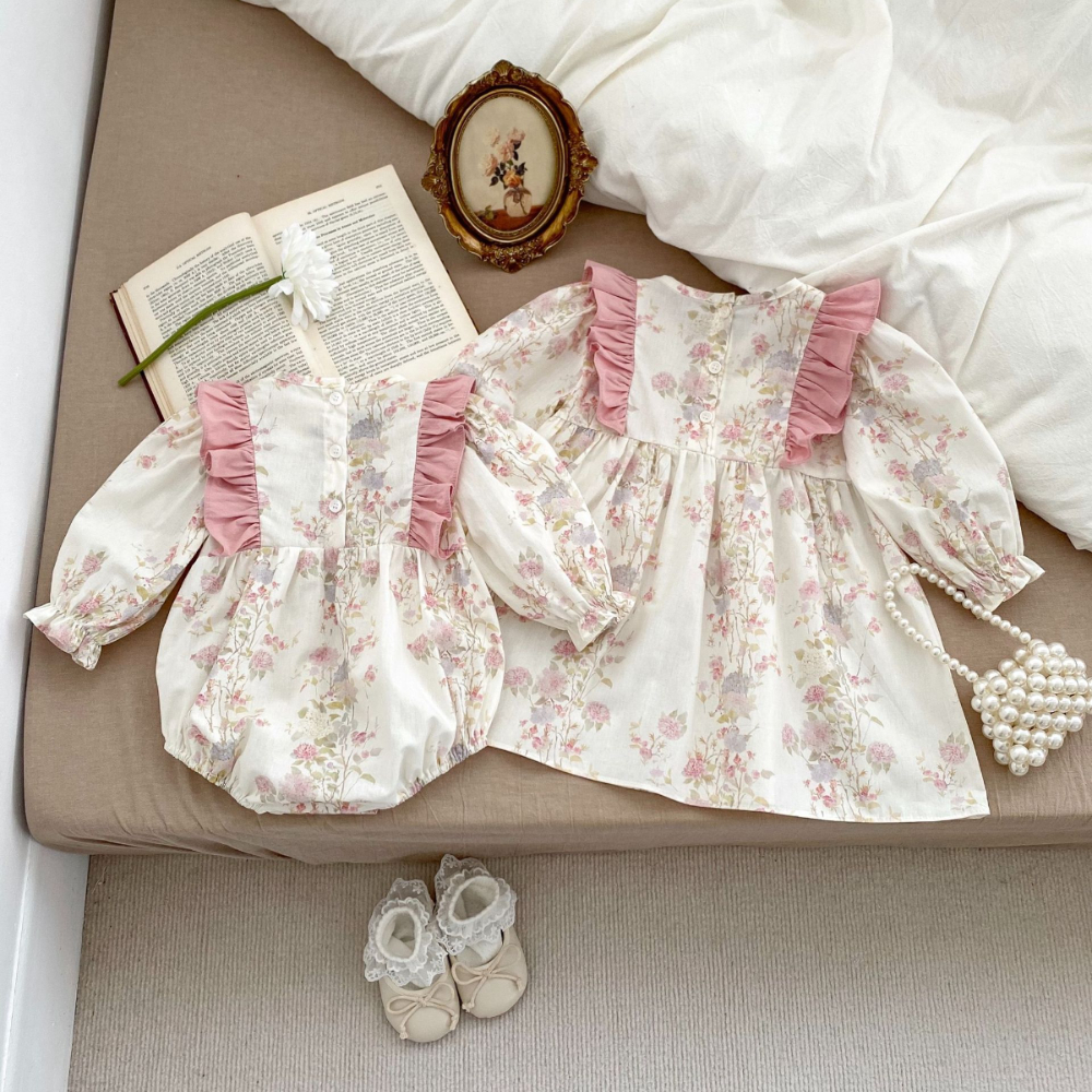 【BS214】韓版小碎花長袖包屁衣小洋裝(1色)