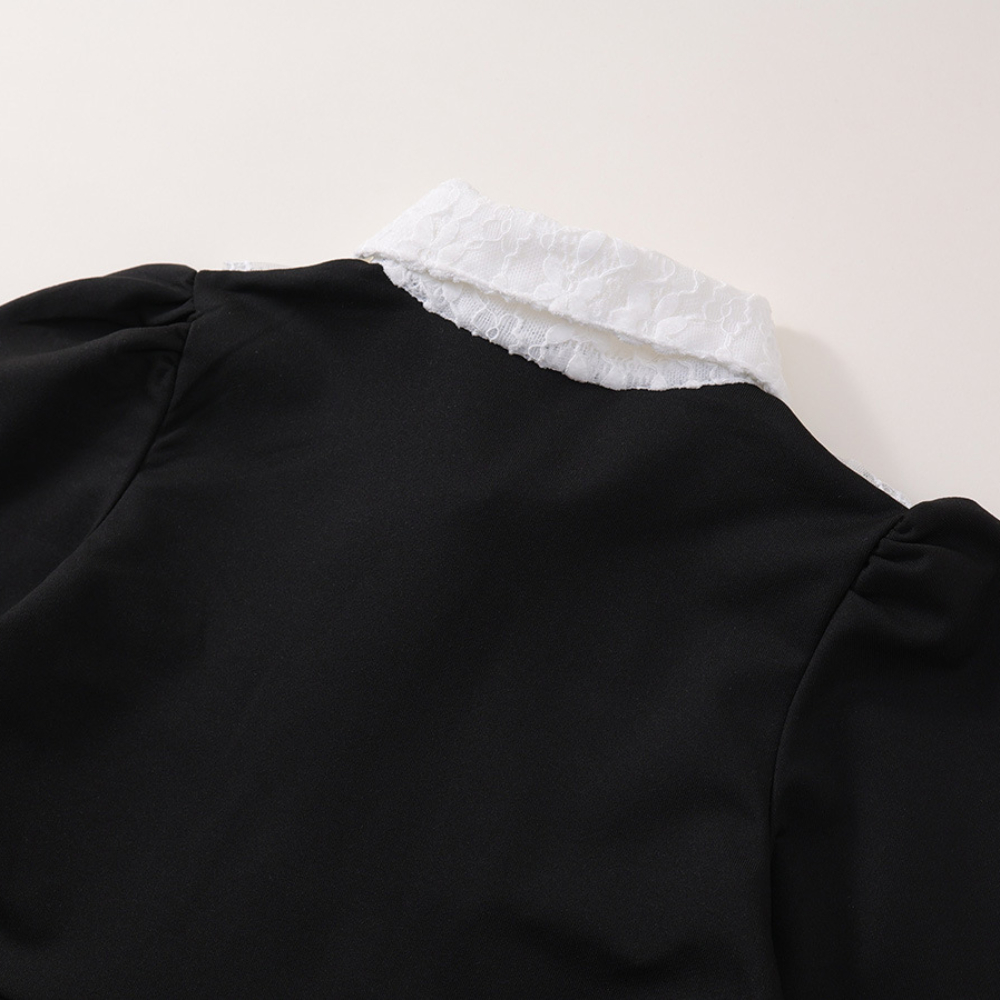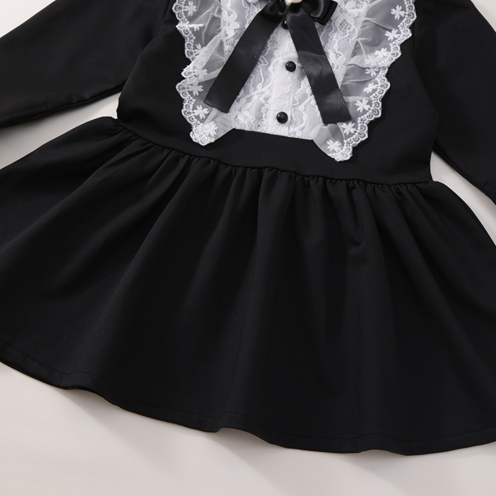 【BG874】日系復古赫本蕾絲花邊長袖洋裝(1色)