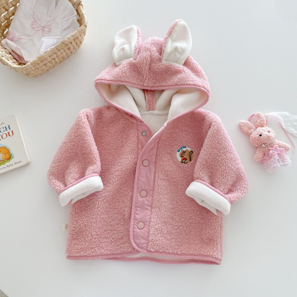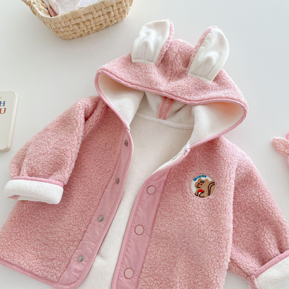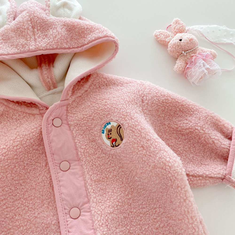 【BO060】日系刺繡松鼠立體兔耳加厚保暖連帽長袖外套(1色)