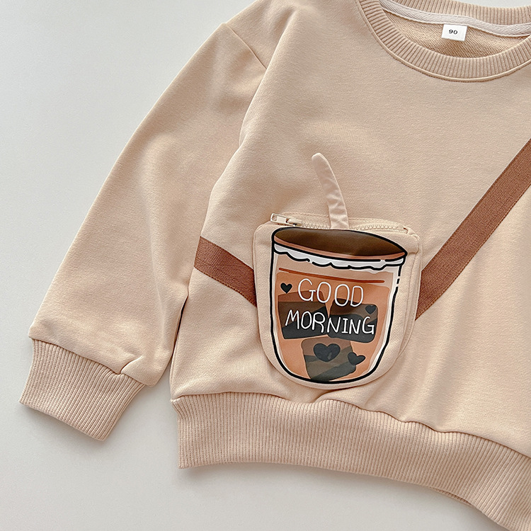 【F080】日系立體斜掛奶茶全家福親子長袖上衣(1色)