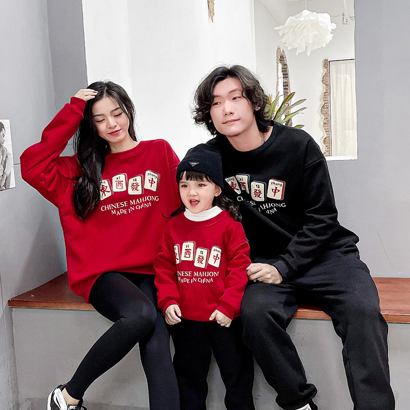 【F082】中國風麻將全家福親子長袖上衣(2色)
