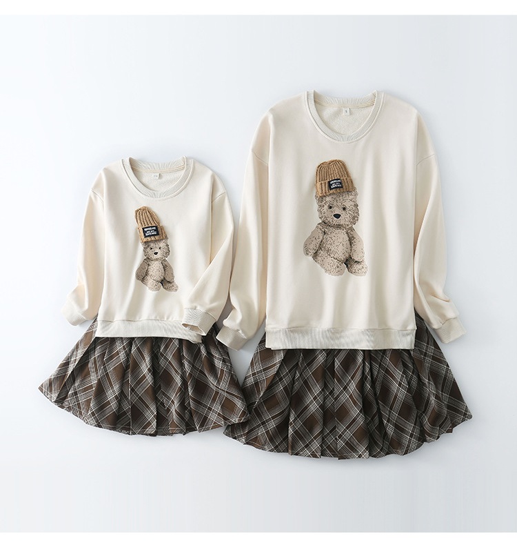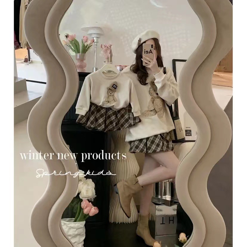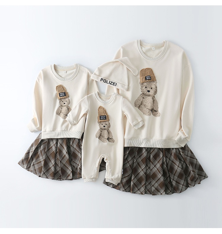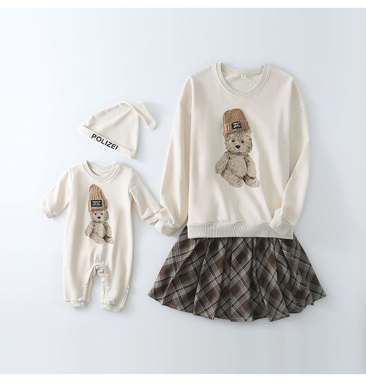 【F085】日系毛帽玩偶熊全家福親子長袖上衣(1色)