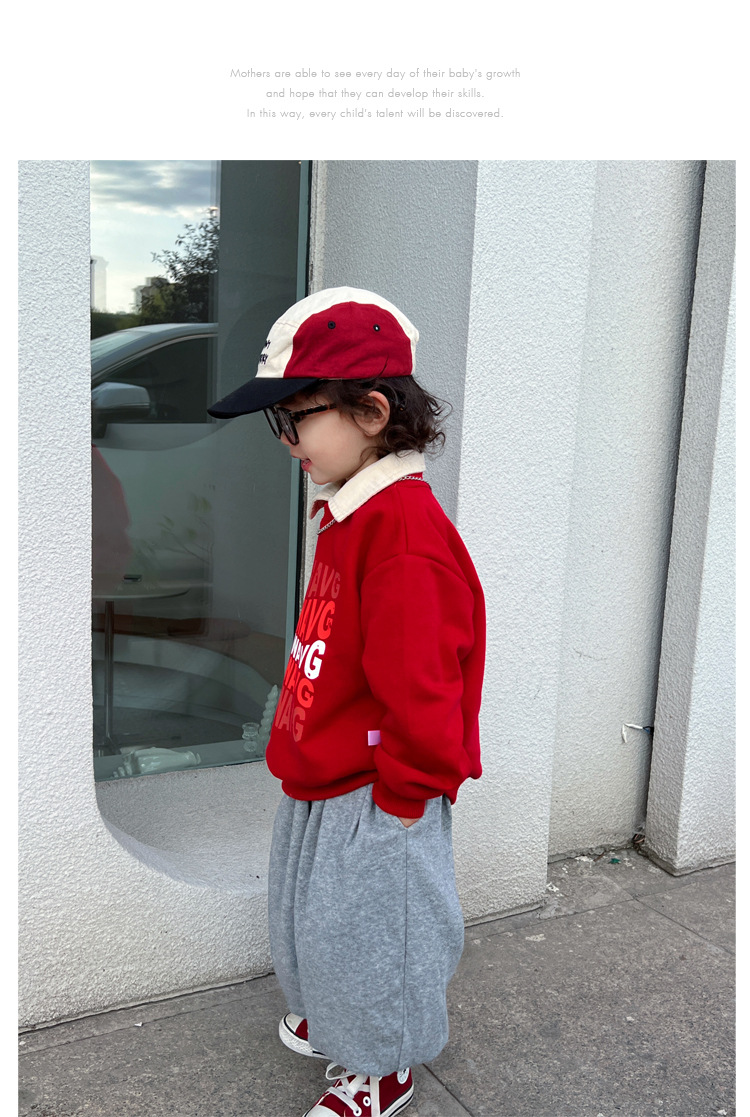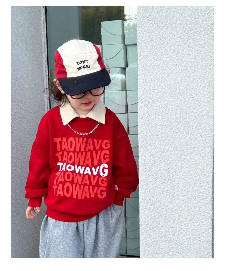 【F091】日系大紅字母全家福親子長袖上衣(1色)