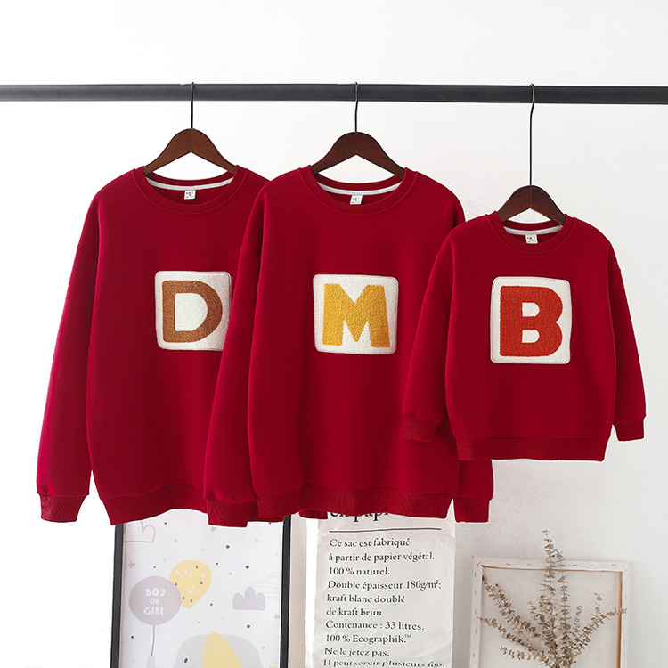 【F095】日系紅色大字母全家福親子長袖上衣(1色)