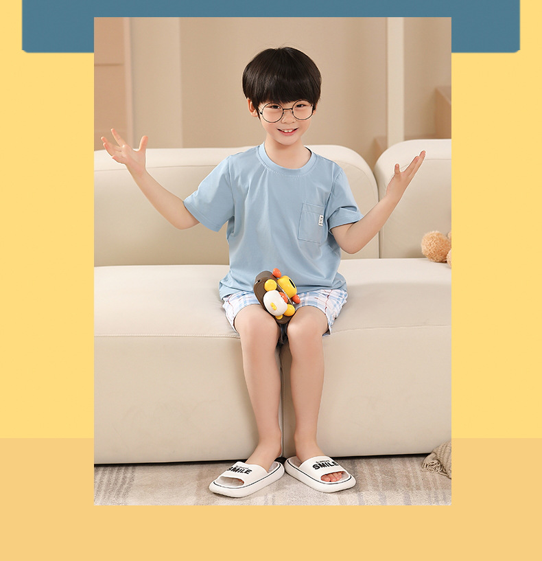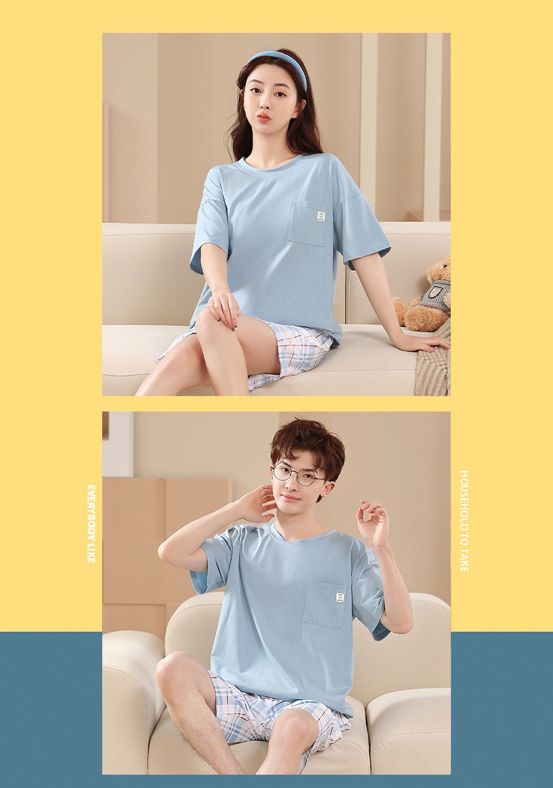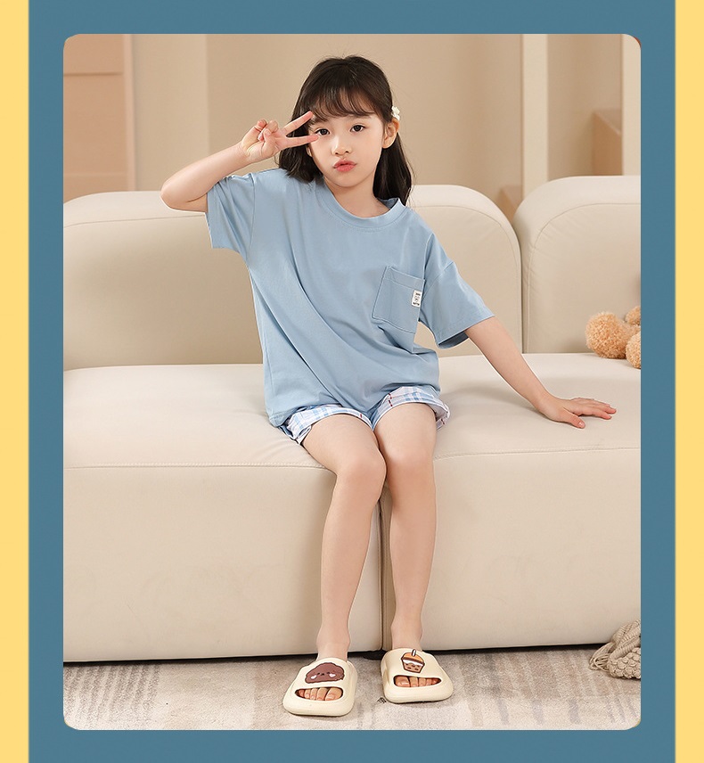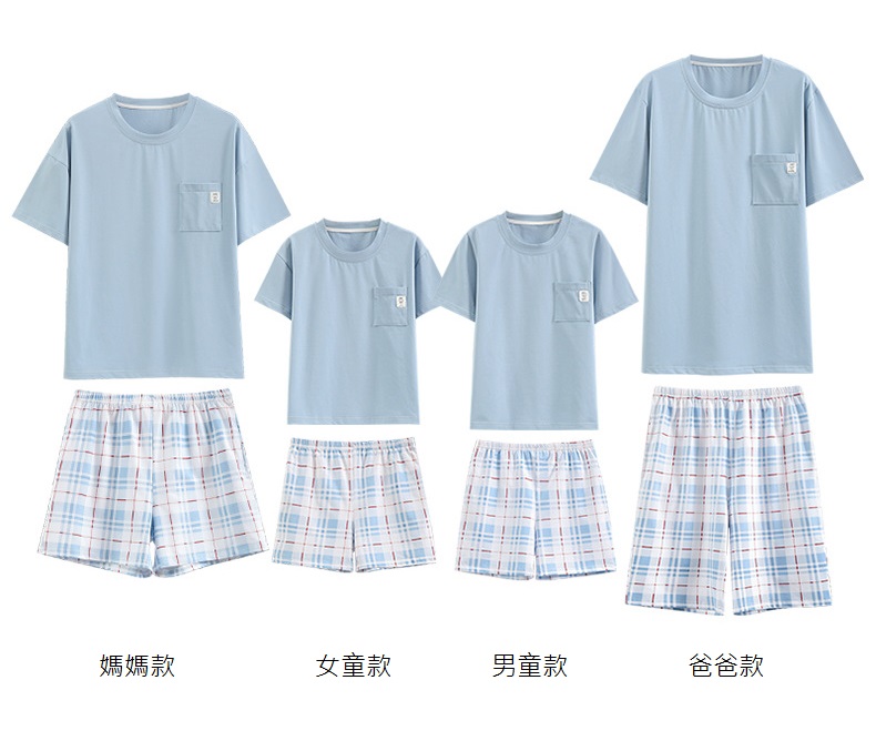 【F134】日系藍格口袋全家福親子短袖短褲套裝(1色)
