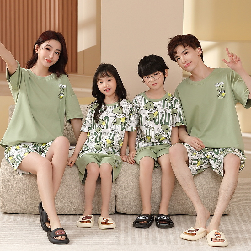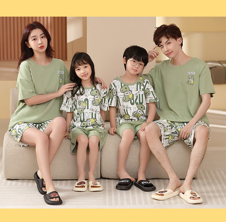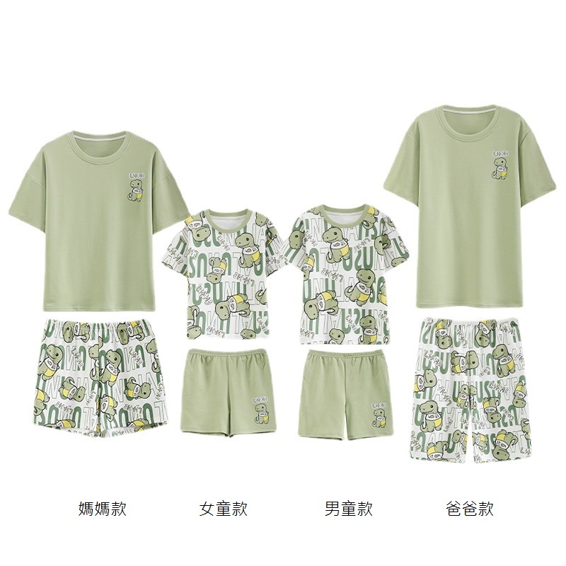 【F135】日系恐龍字母全家福親子短袖短褲套裝(1色)