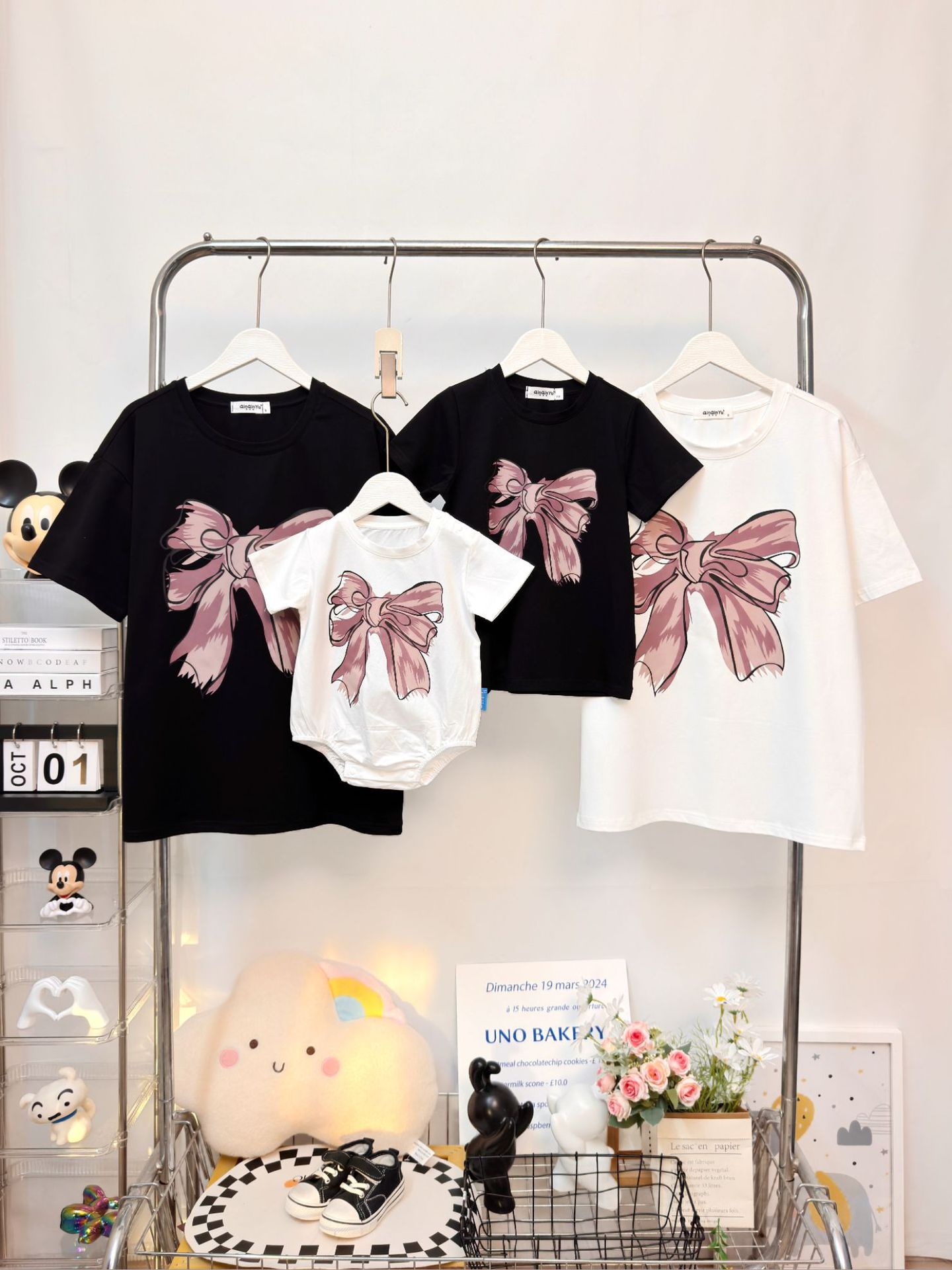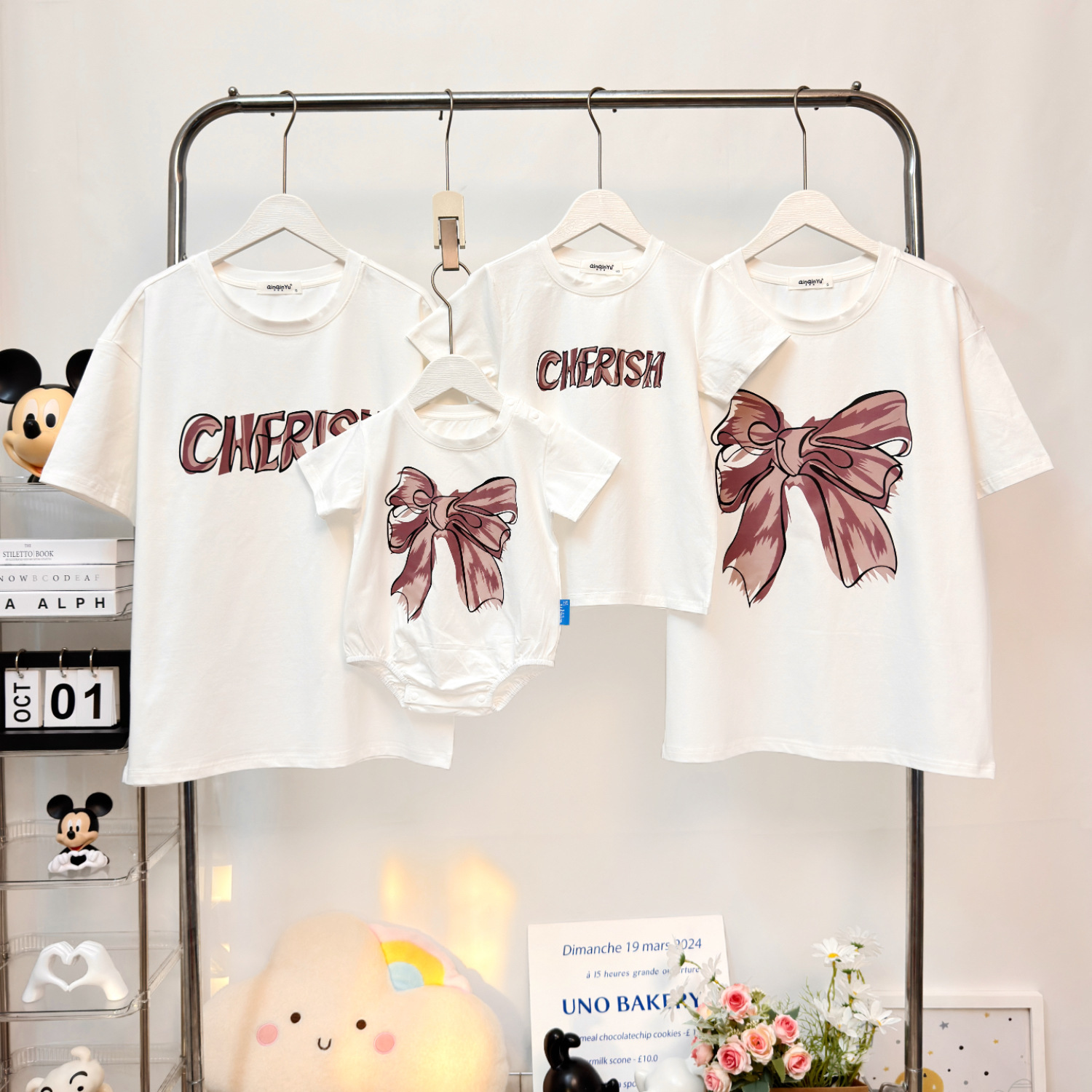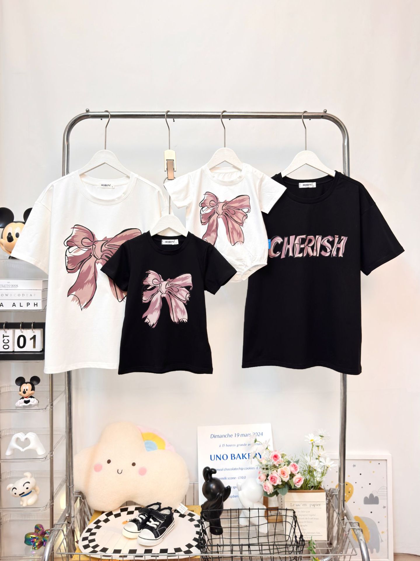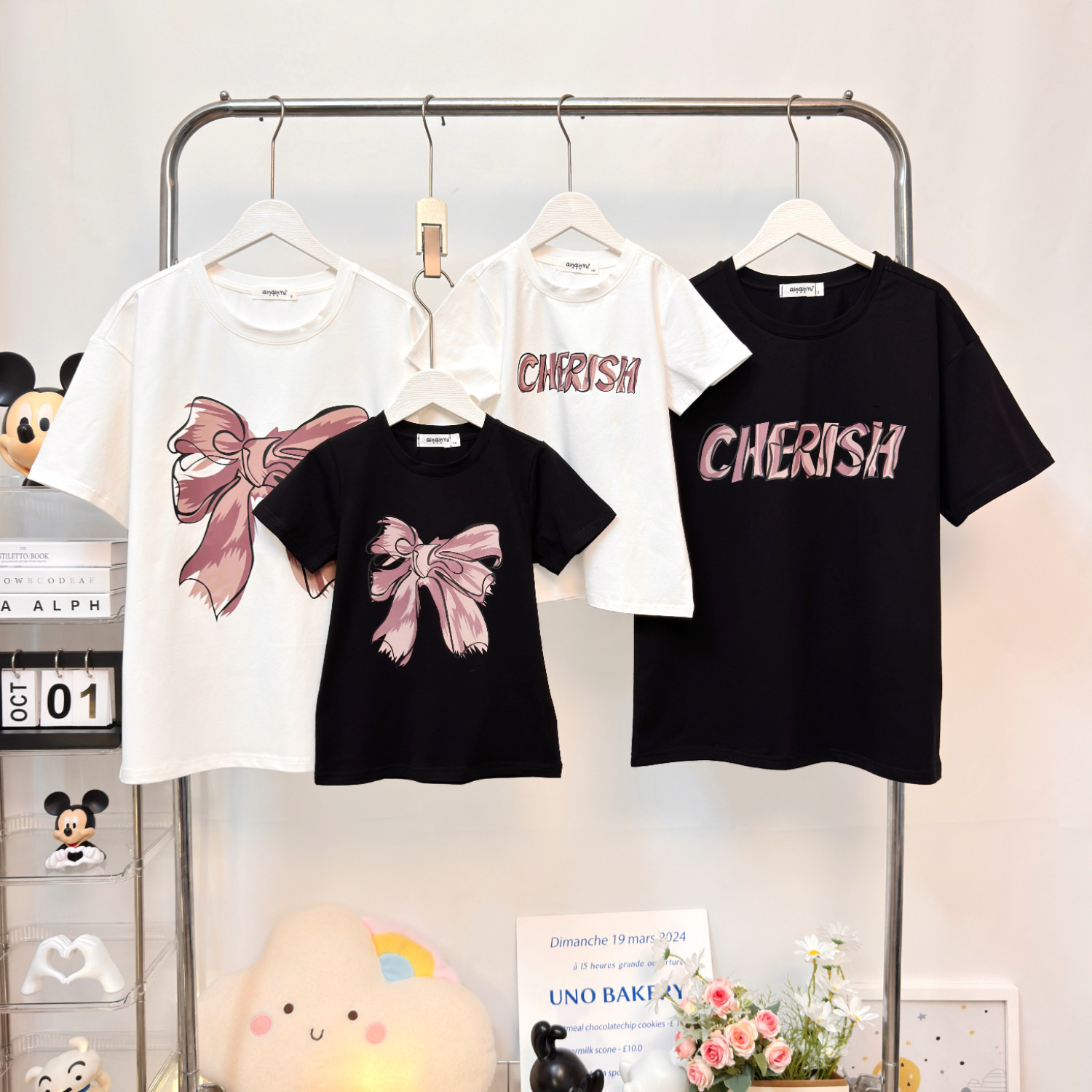 【F142】日系字母大蝴蝶結全家福親子短袖上衣(2色)