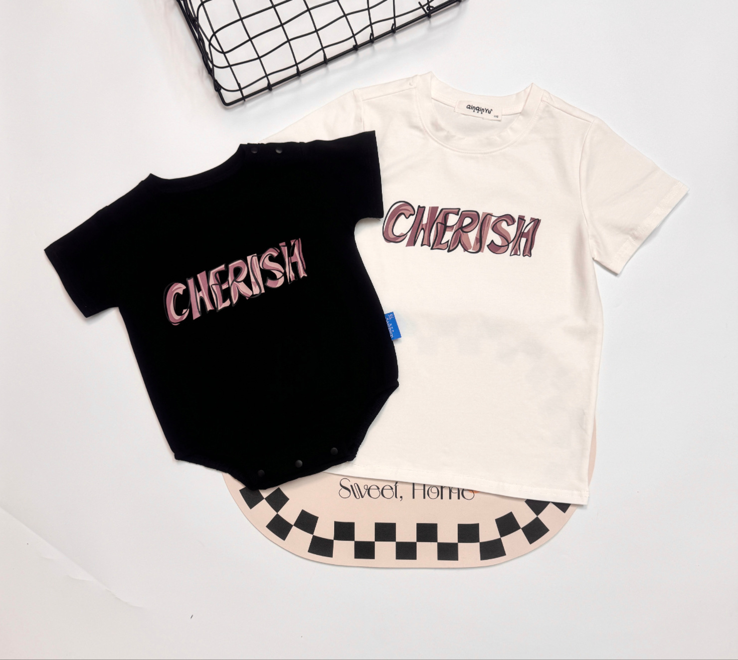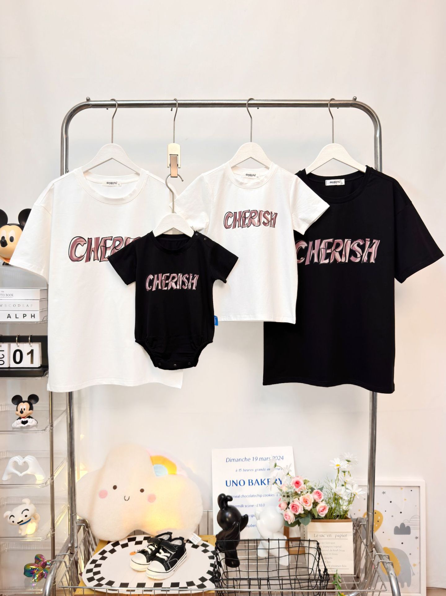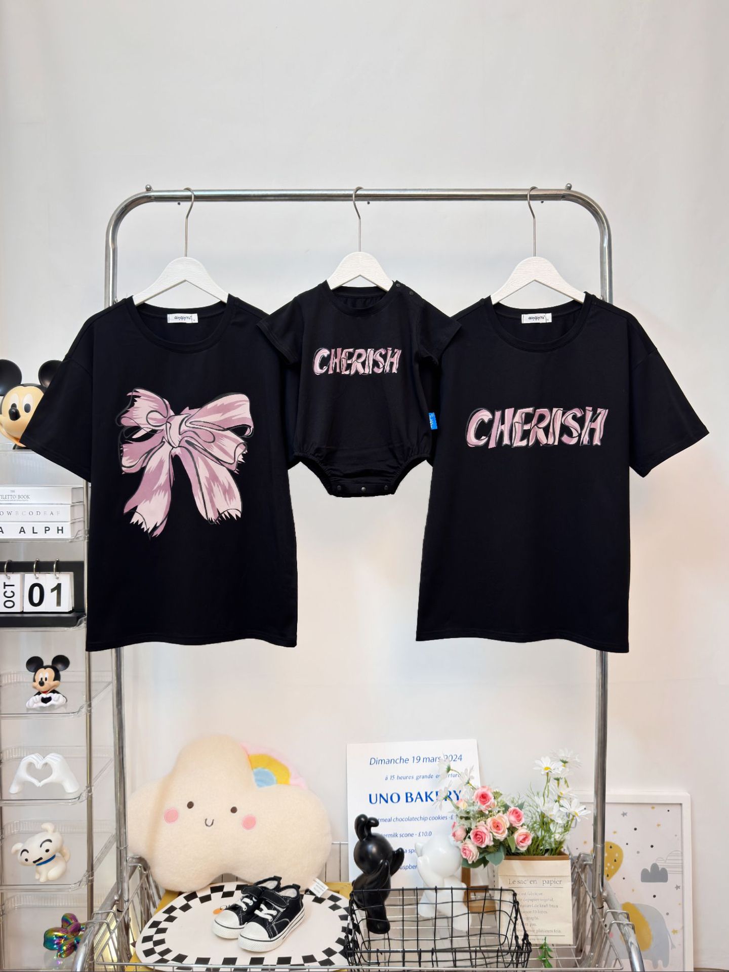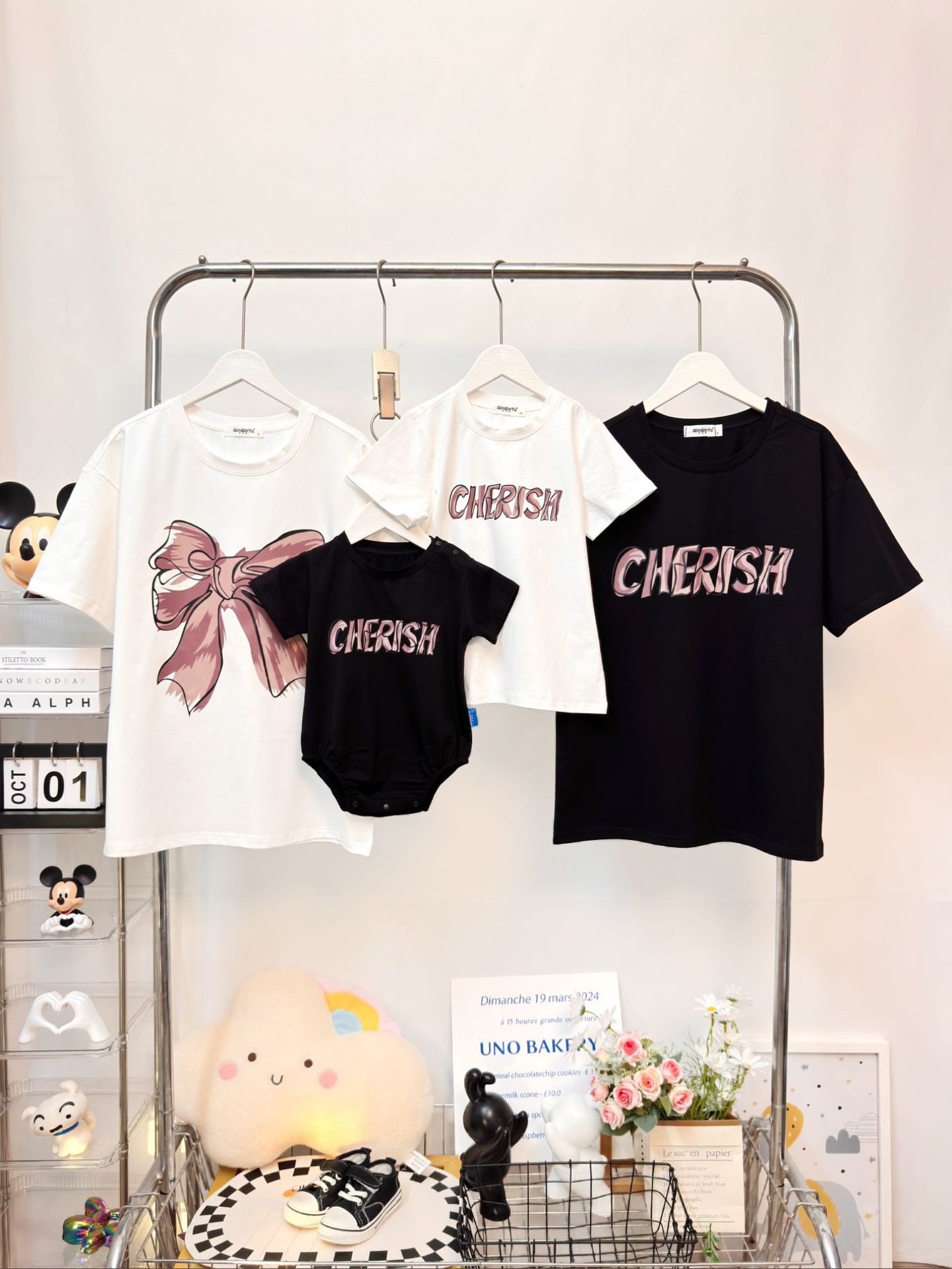 【F142】日系字母大蝴蝶結全家福親子短袖上衣(2色)
